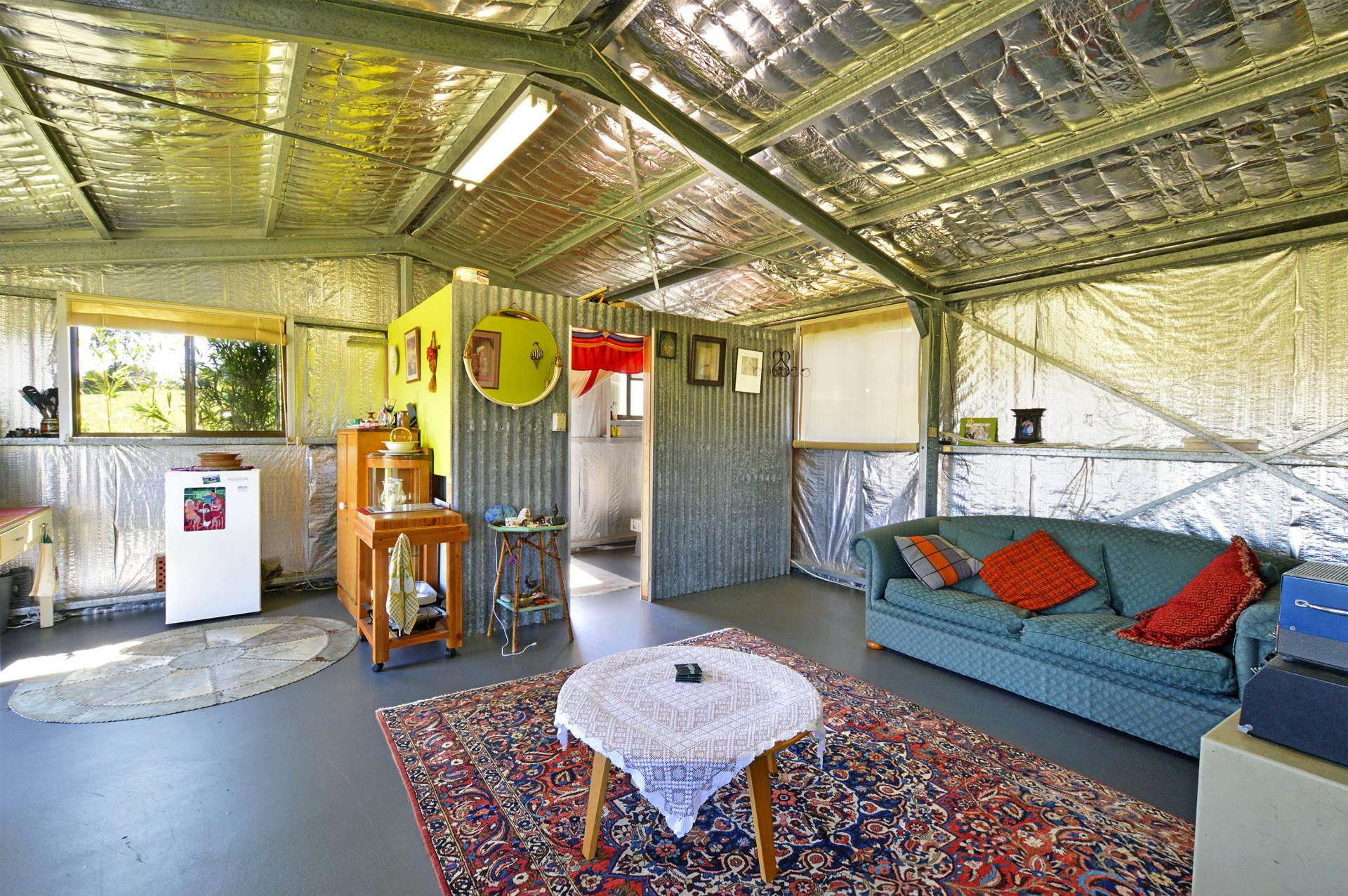 The Shed: Temporary accommodation, slow combustion fire, shower and comfortable living area.