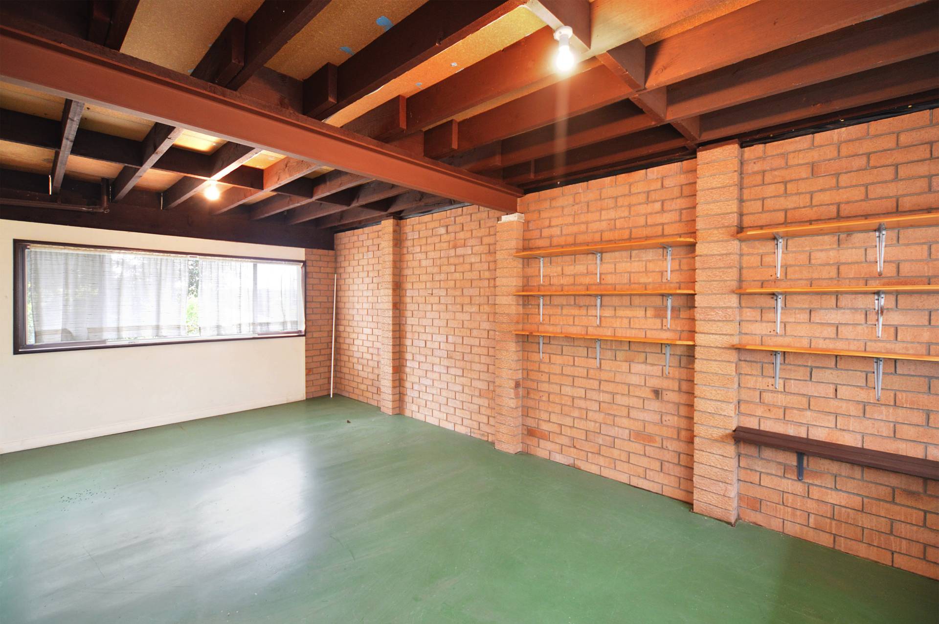 Downstairs: Single garage with workshop space and an open plan rumpus room.