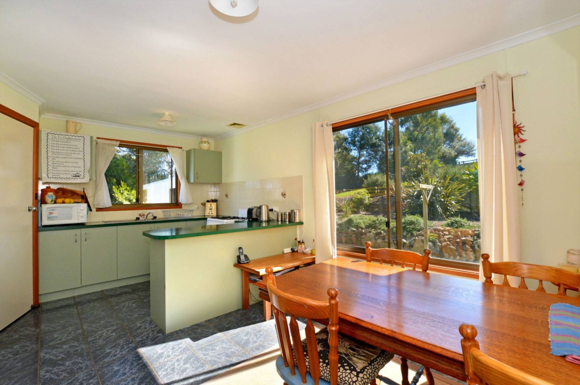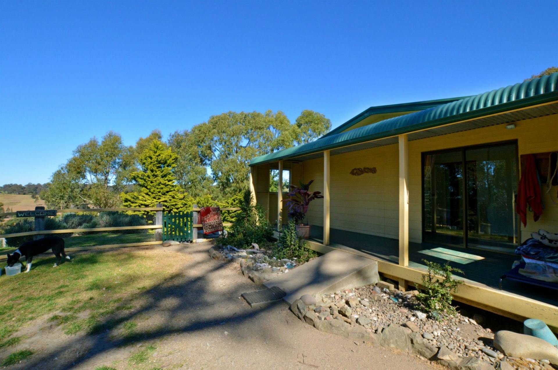Single Level, three bedrooms, central bathroom, open plan kitchen/dining & living area, solar hot water, slow combustion wood heater, deck on two sides with views over the rolling hills. Only a few minutes drive into the historic Central Tilba village, 5 minutes to Mystery Bay with its pristine beaches and only 15 minutes to Narooma or Bermagui.