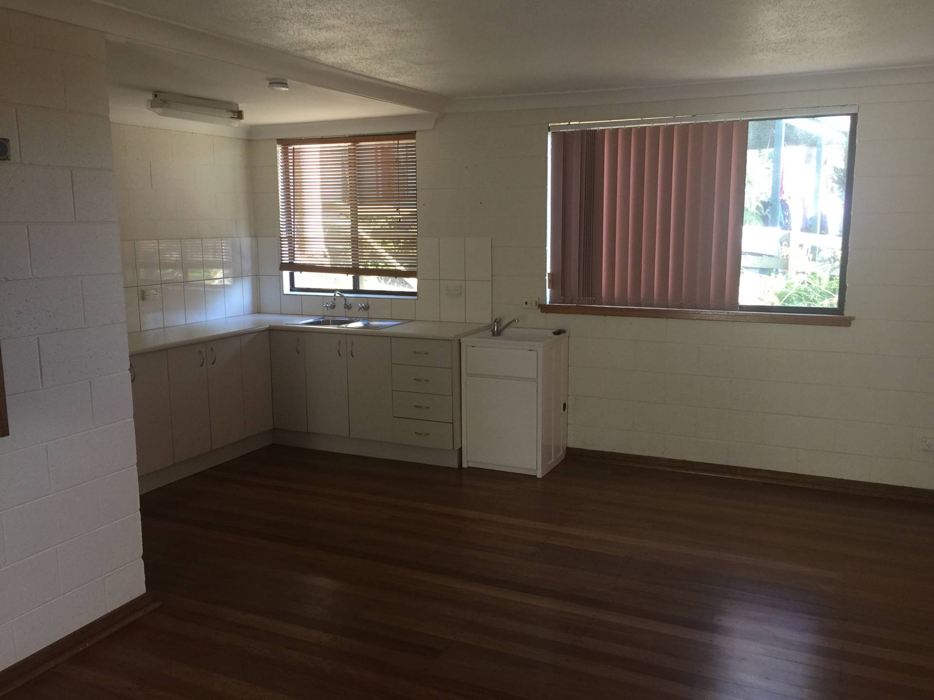 FOR RENT - Two bedroom unit with shared back yard. The unit is open plan with combined kitchen/laundry. Nice sunny rear patio overlooking the fenced yard. Would suit a professional working couple or quiet person/persons due to the shared nature of the property. Definitely NO pets. NOTE: this is a shared property so quietness and respect of neighbours is essential.