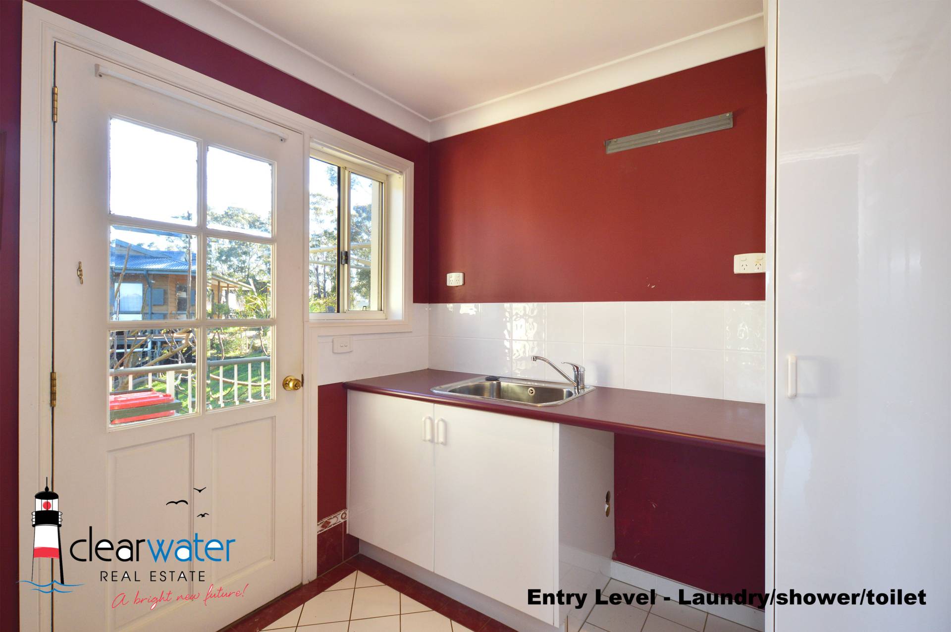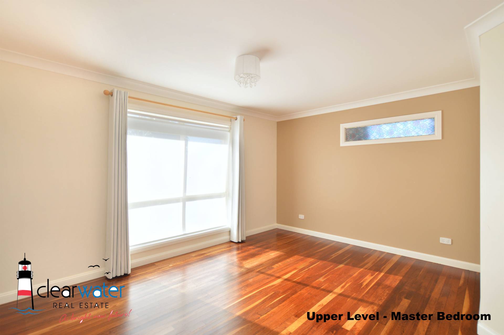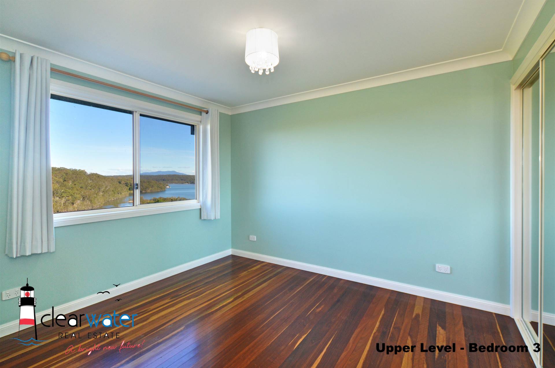 Upper Level: The views are amazing - at the top of the stairs is a practical sitting area with storage, north facing balcony with Coila Lake and hinterland views, three spacious bedrooms and two bathrooms. Bedroom one has a large walk in robe, modern bathroom with spa and extensive water views south over the reserve to the Tuross River and hinterland. The other two bedrooms have built in robes.