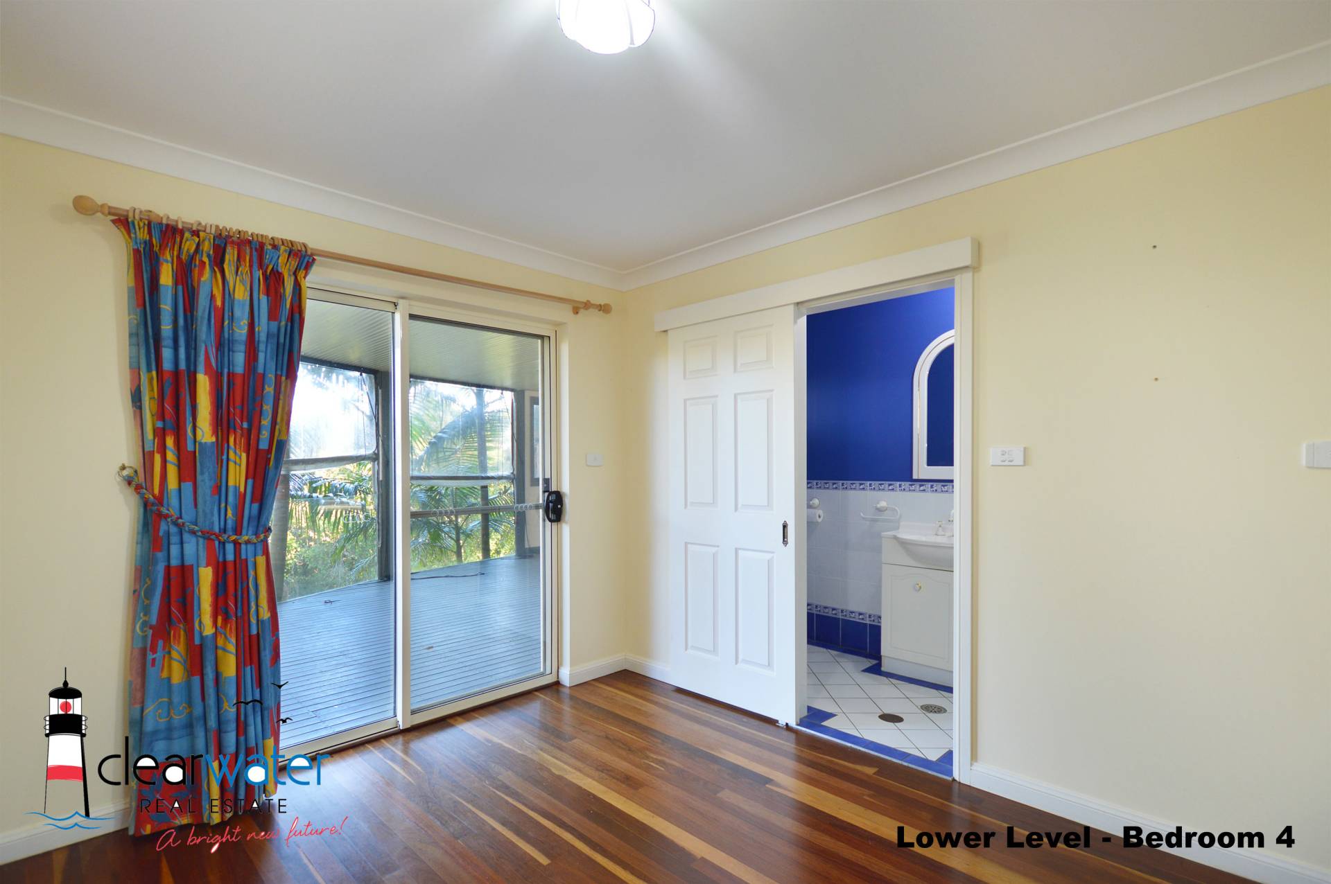 Lower Level: A double garage, workshop area and plenty of room to reverse the car out to drive up the driveway. On this level is also a suite for your guests featuring a bedroom with its own bathroom, lounge room and a massive (approximately 53m2) partially covered deck. There is also a kitchenette to make a cuppa without disturbing the rest of the household. Suggestion: This level could be sealed off from the rest of the house and used as "paid accommodation" (subject to council approval).  Visitors would love the privacy and the huge deck.