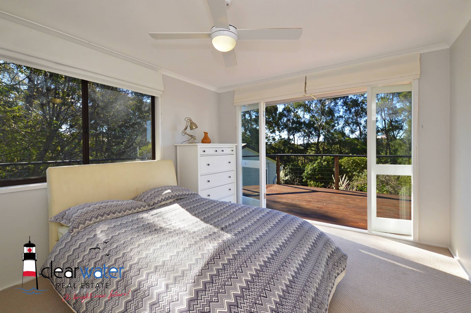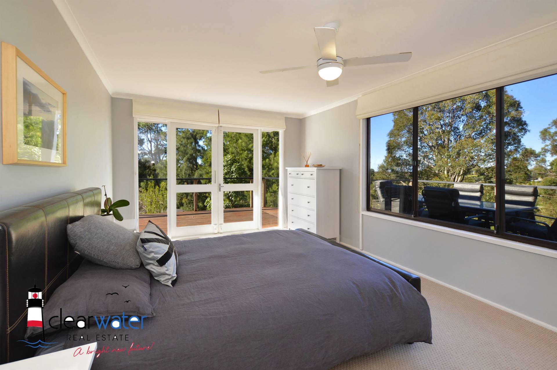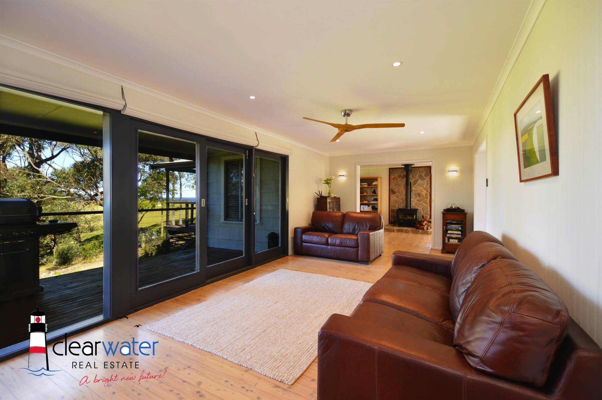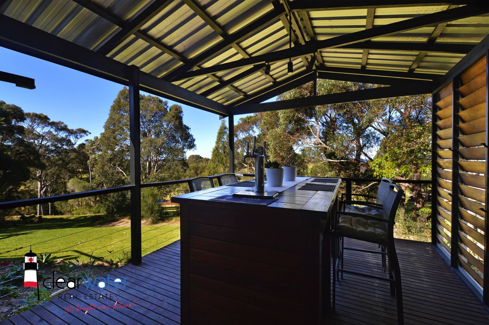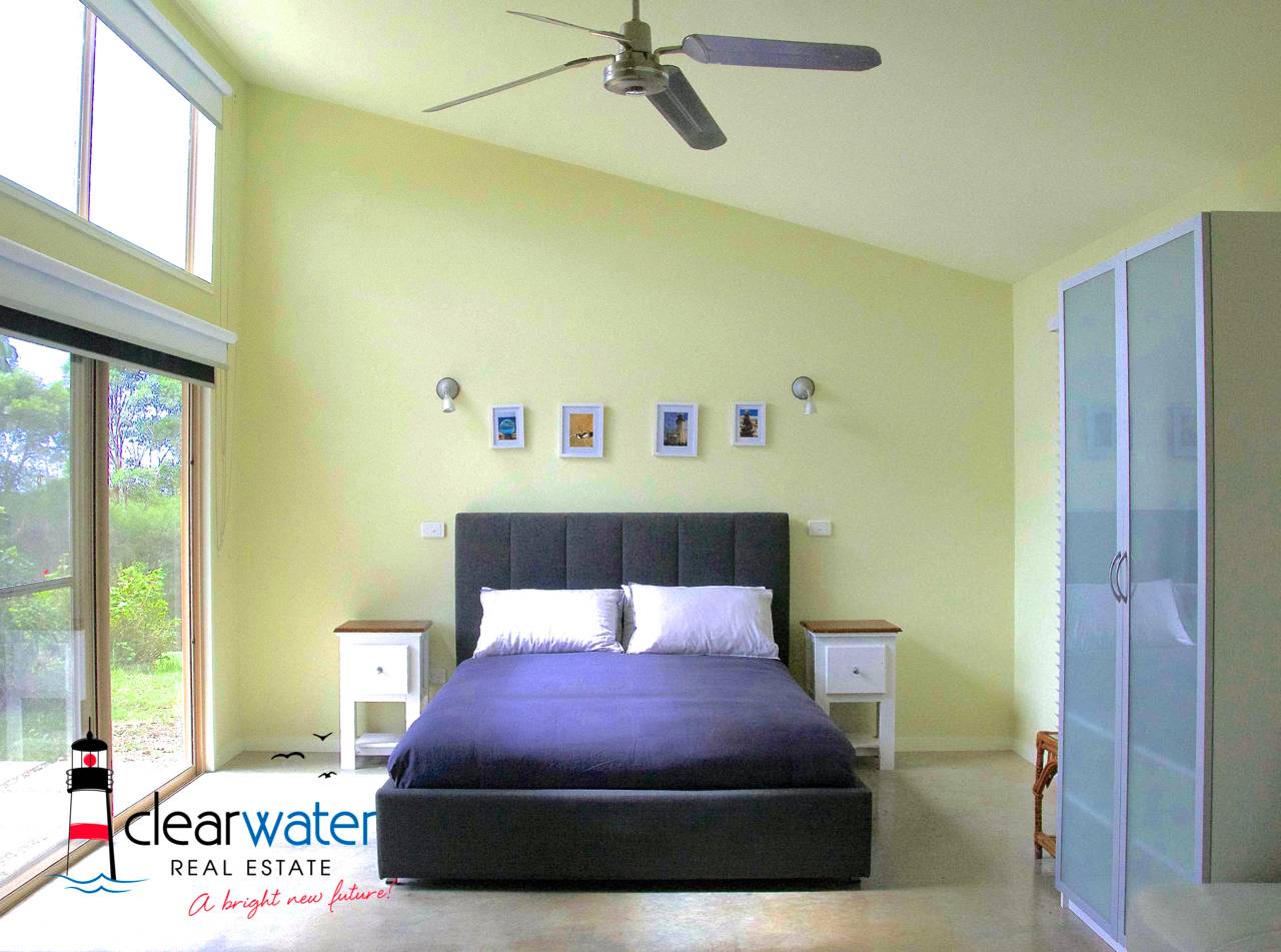 Main House: Two good sized bedrooms with professionally fitted robes, central bathroom plus an extra shower and vanity. The main bedroom has stunning lake and ocean views. Both bedrooms open onto the wrap around deck which is ideal to sit and relax to enjoy your first morning coffee/tea. The spacious lounge also opens onto the deck and has extensive views over the farmland and ocean. The chef's kitchen is a real delight with its huge gas/electric cooker, walk in pantry, commercial grade stainless steel and marble bench tops. The dining area opens onto the covered alfresco entertaining area with the louvres (for controlled airflow).