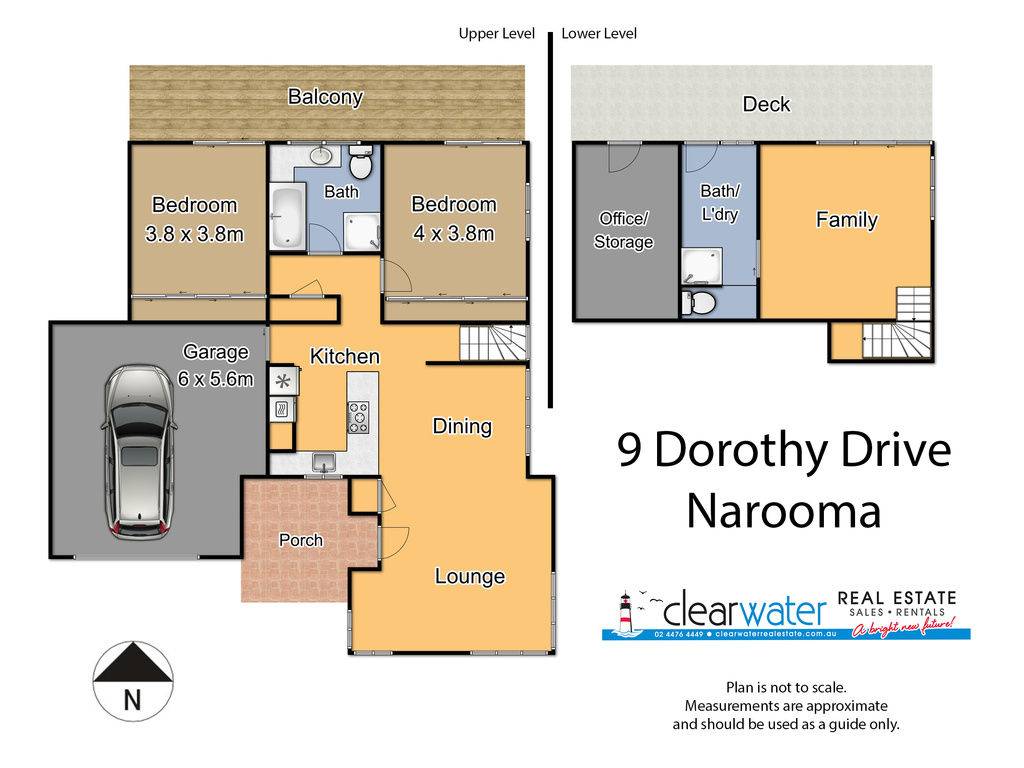 Upper level: Two good sized bedrooms with built in robes, family bathroom, open plan lounge/dining & kitchen, access to the deck with water and hinterland views. The large garage has a high ceiling and ample storage space.