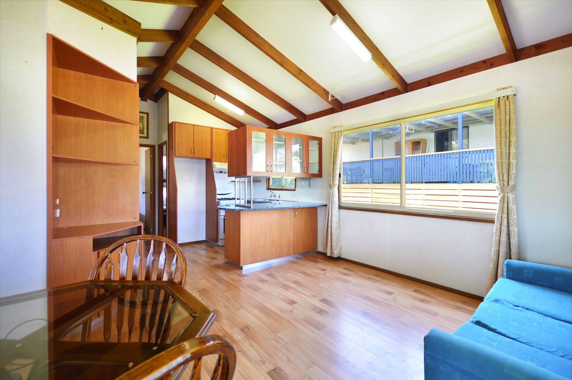 Features: two bedrooms, central bathroom, separate toilet, open plan kitchen and living area. There is a large covered veranda on two sides, single lock up garage, under house storage and separate laundry with a toilet.