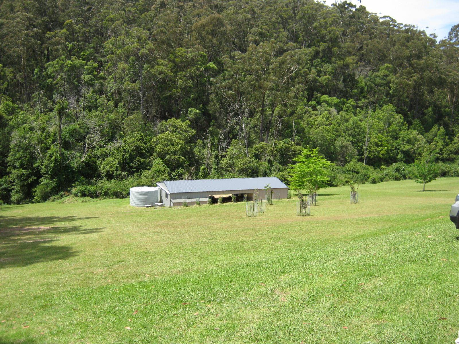 A private piece of paradise at the end of a country road, 87 acres (34 ha) with approximately 20 acres cleared and the rest natural bush with lush pockets of rainforest. There is also a natural creek running through the property from Gulaga Mountain to Corunna Lake.