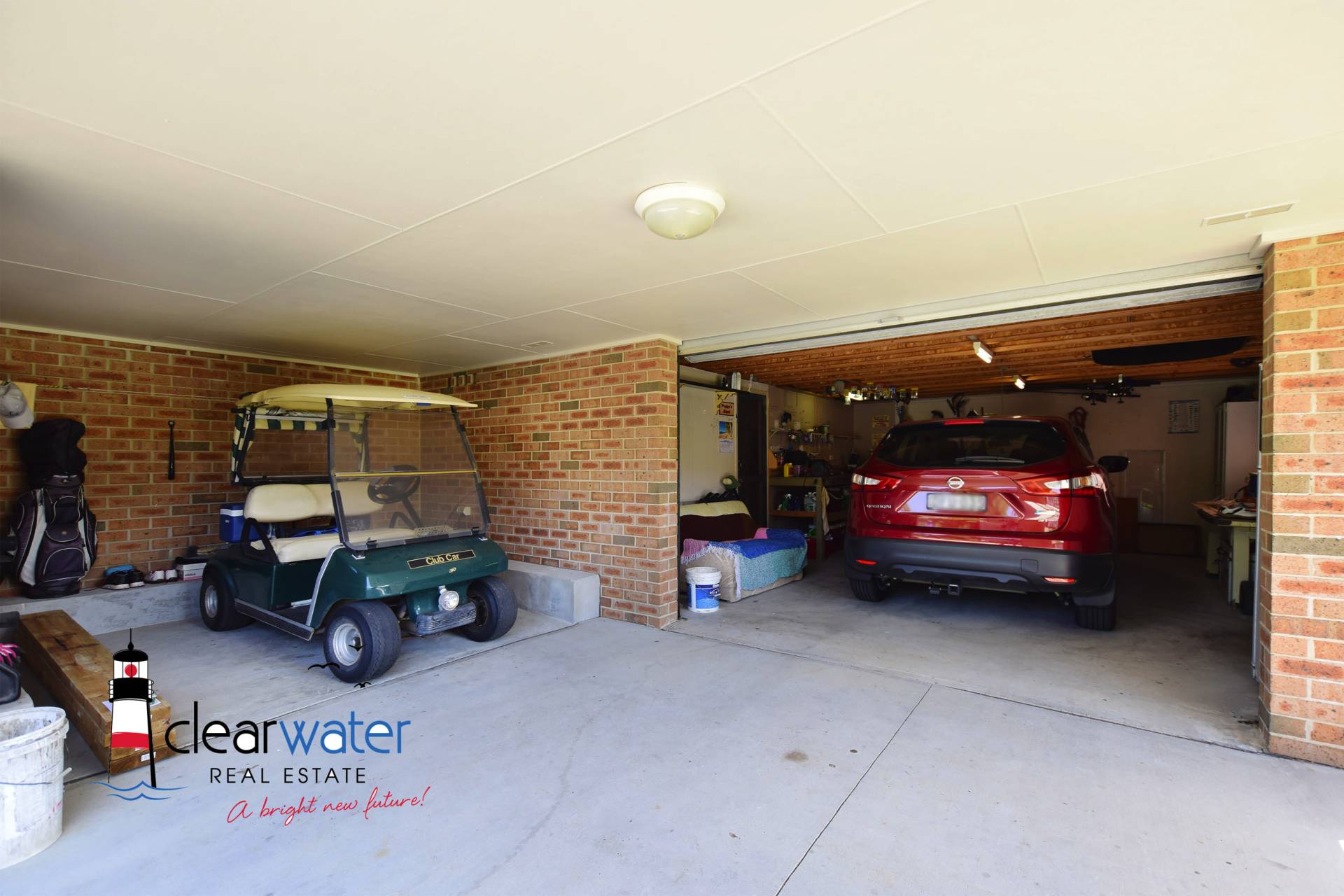 Parking: A large single lock up garage with remote door is located under the house with extra parking for a golf cart. The driveway it fully concreted with space for boat parking and extra car parking as well.