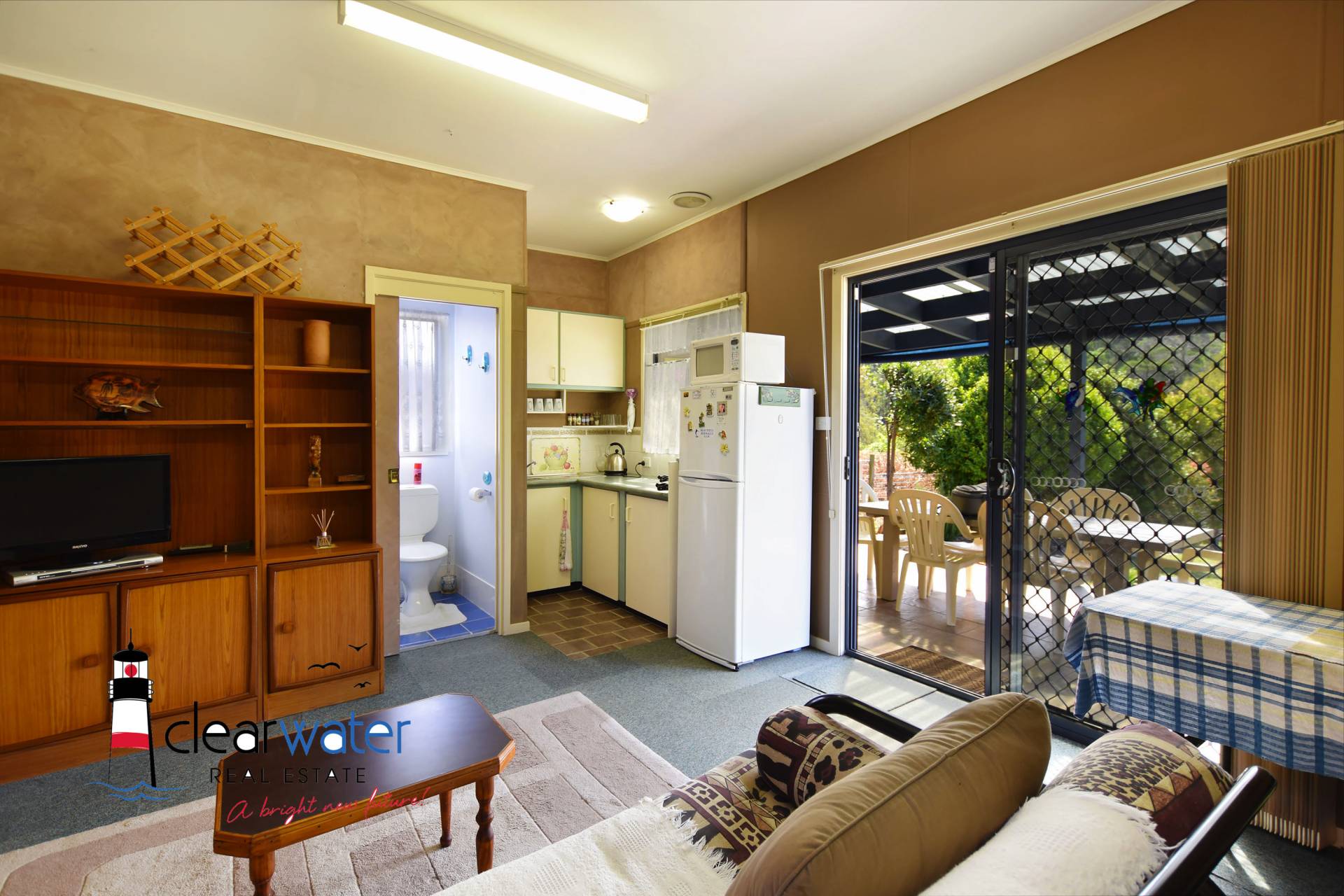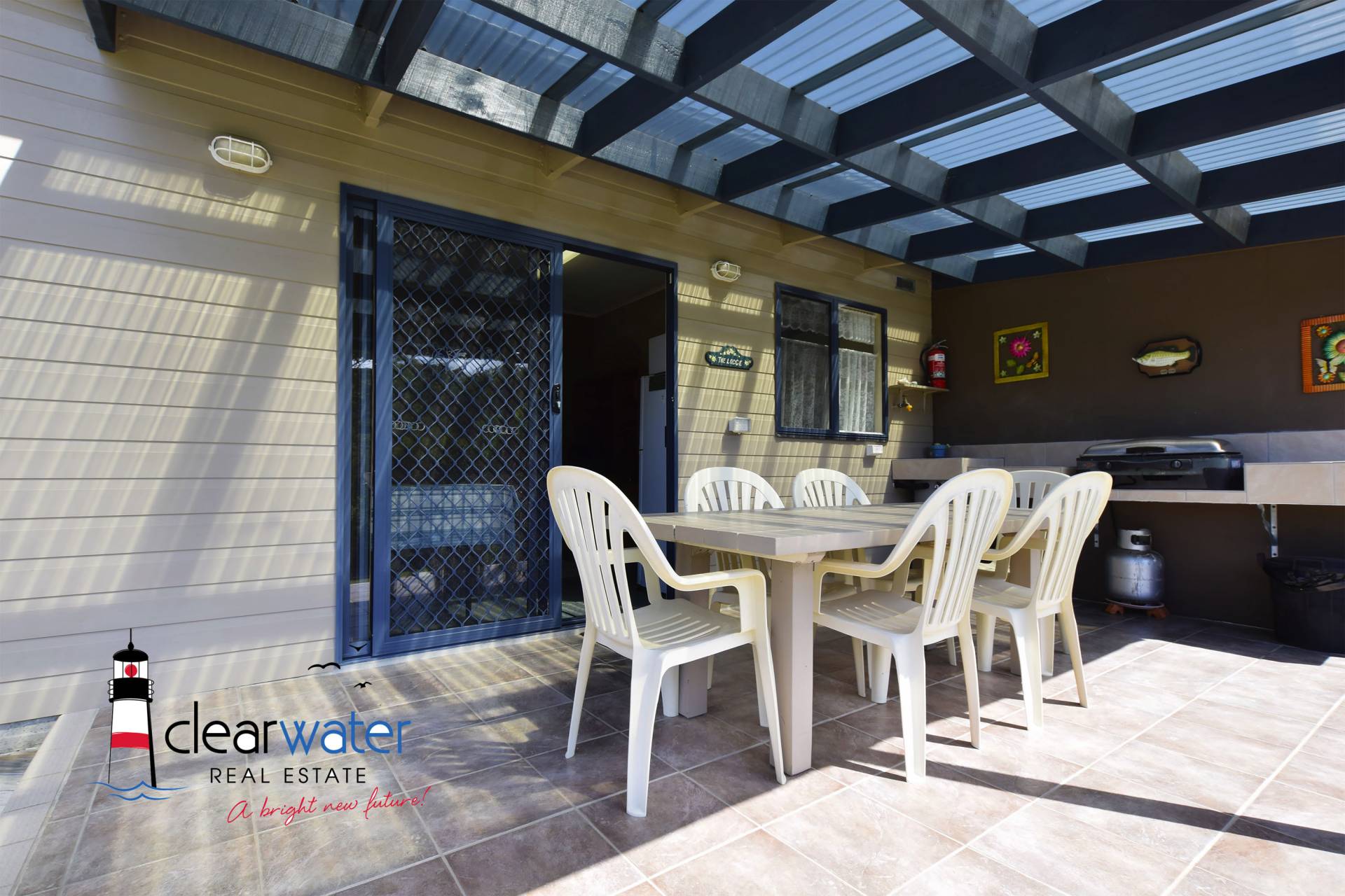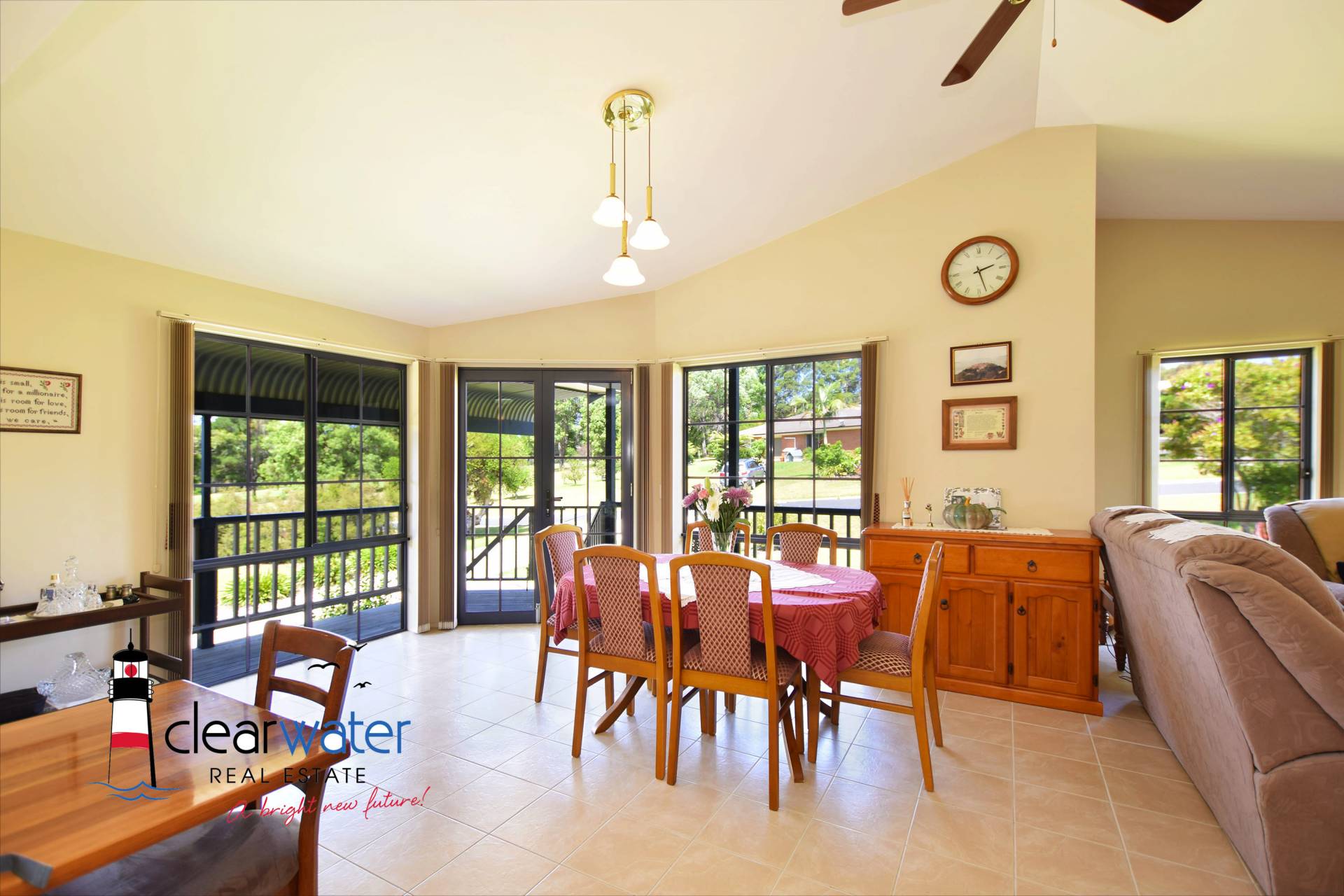 The Lodge: Artist studio or guest accommodation with its own shower/toilet and lounge area. A well planned covered outdoor entertainment area has a large table, built in bbq and superb views overlooking the reserve and the pond at the rear of the property. The bird life on the pond are amazing and of an evening you can often see the fish touching the surface of the water.