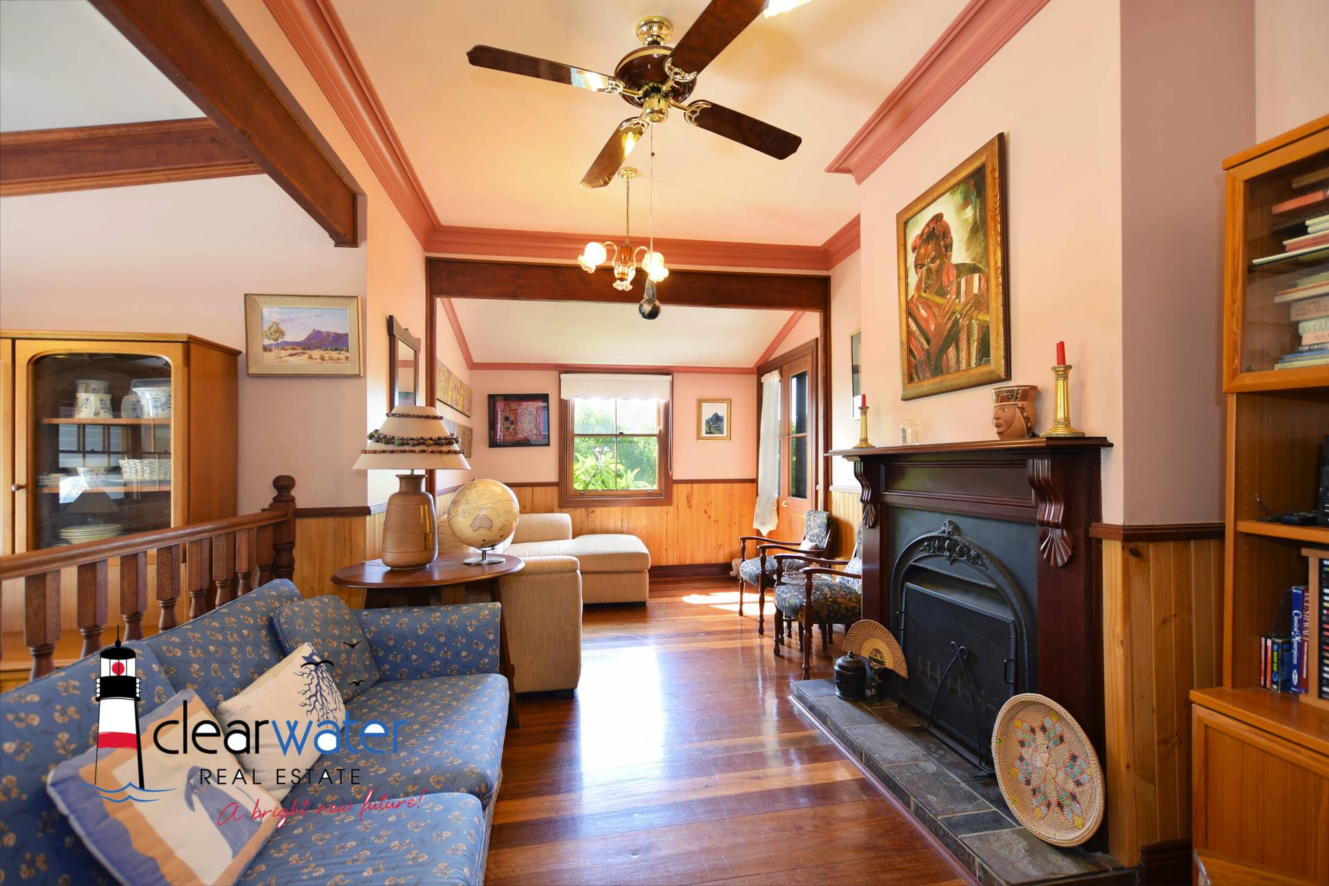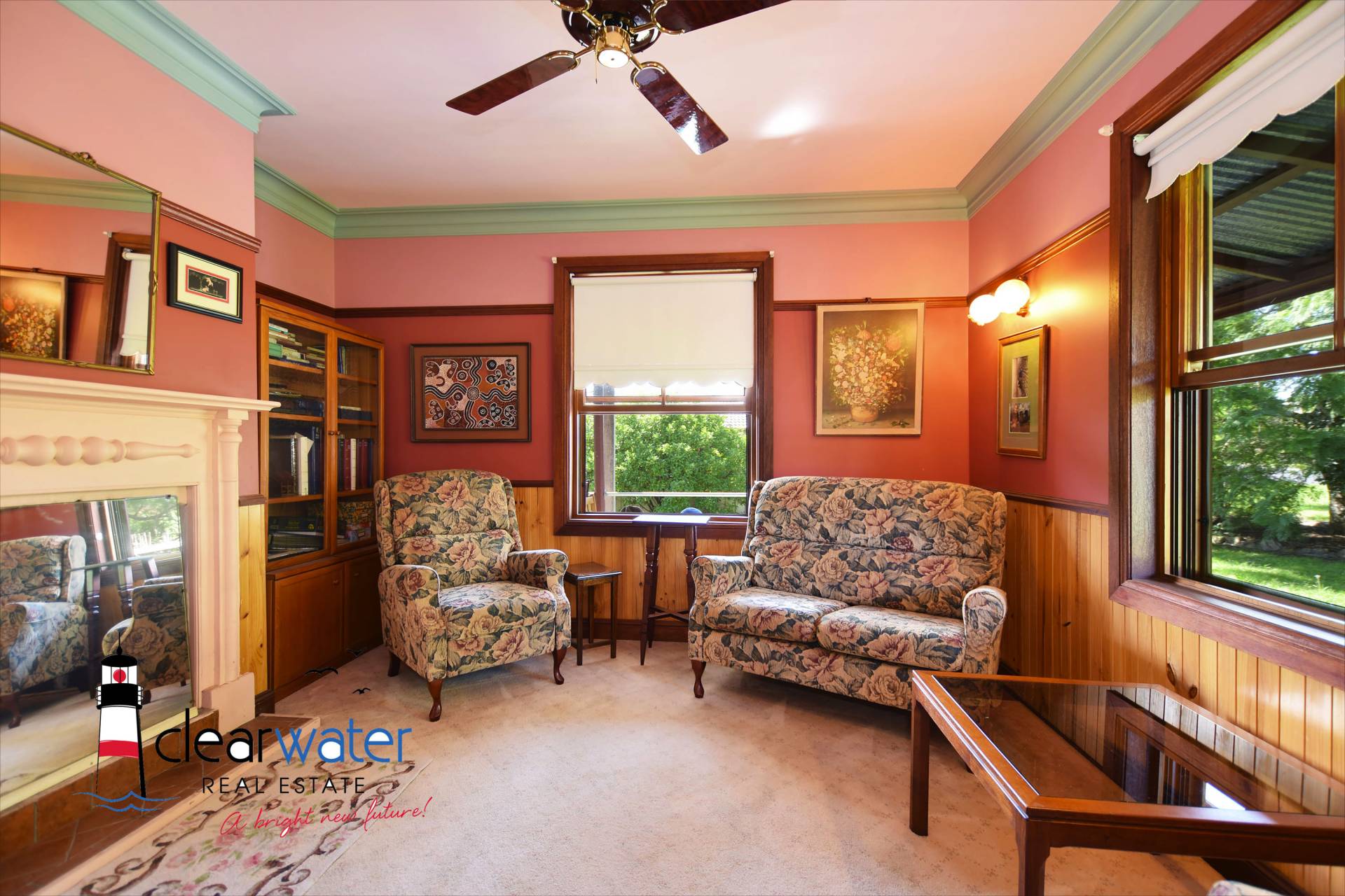 Features: Two very good sized bedrooms, third bedroom/office, central bathroom, lounge with fireplace, and open plan kitchen dining area.