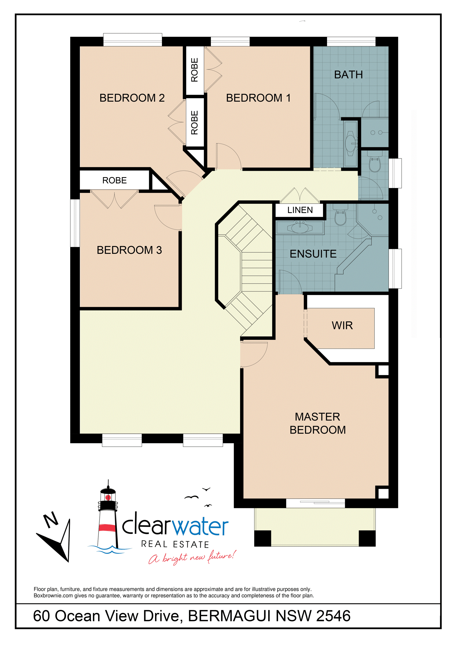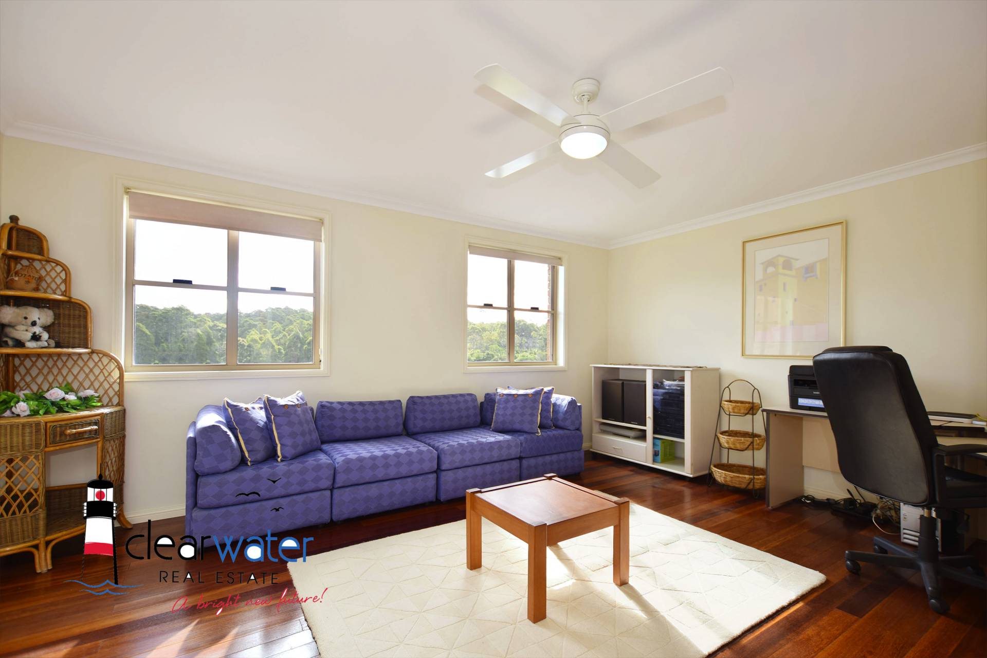 Upper Level: 138.40 square metres. All rooms on this level have polished hardwood floors. A spacious north facing lounge is at the top of the stairs and there are four very spacious bedrooms on this floor. The master has a walk in robe, large ensuite and access onto the balcony with views over the natural bushland and to the distant ocean. The other thee bedrooms share a central bathroom and separate toilet.
