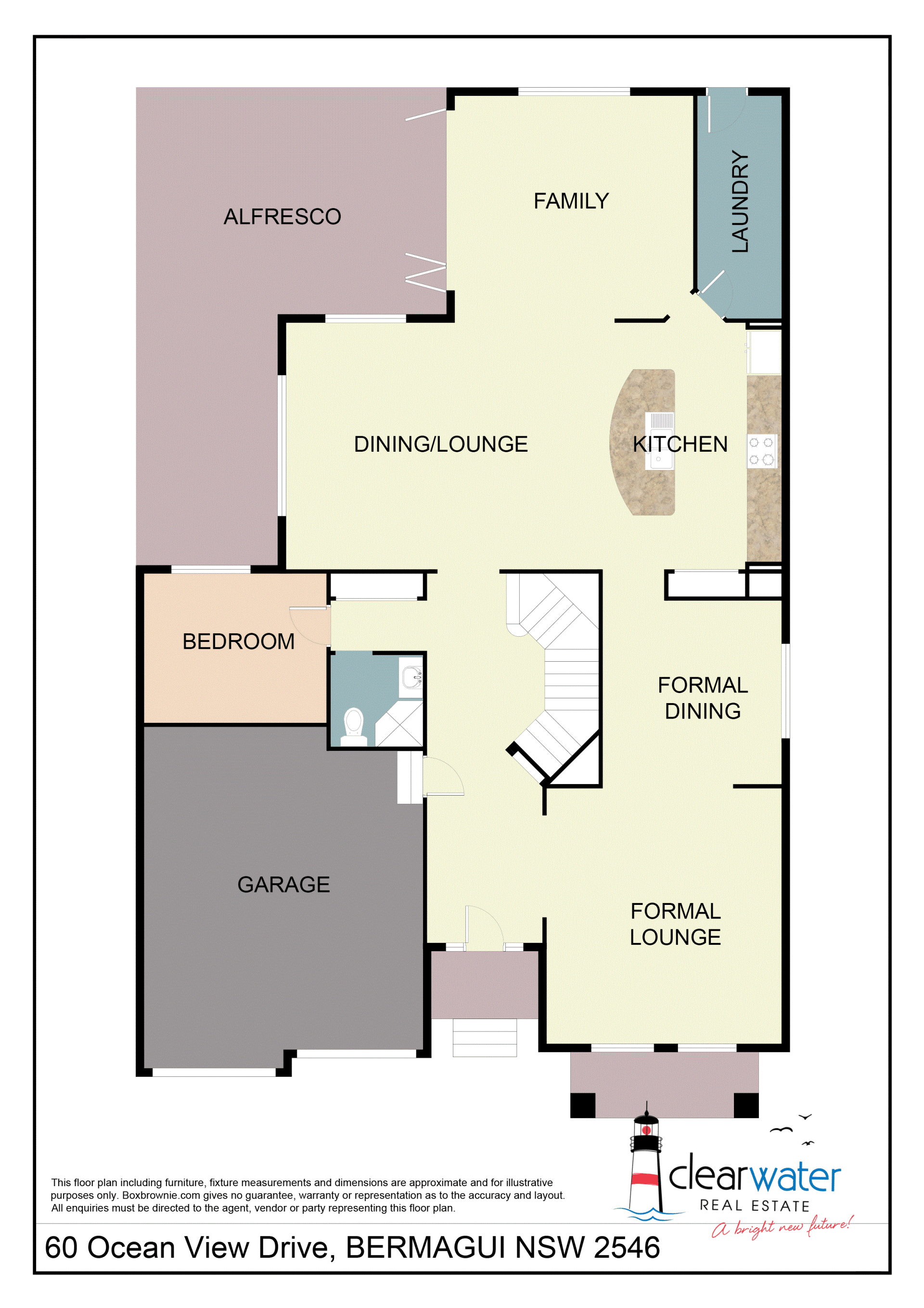 Ground Level: 165.70 square metres. Wide entrance hall, formal lounge & dining room, modern kitchen with 900mm five burner gas/electric range, open plan informal lounge/dining/family area which has bi fold doors which open onto the alfresco entertaining area. On this floor is a queen sized room, central bathroom, spacious laundry, under stair storage and access to the double garage. All areas on this floor are tiled.