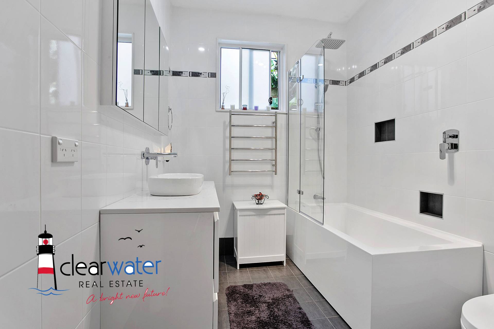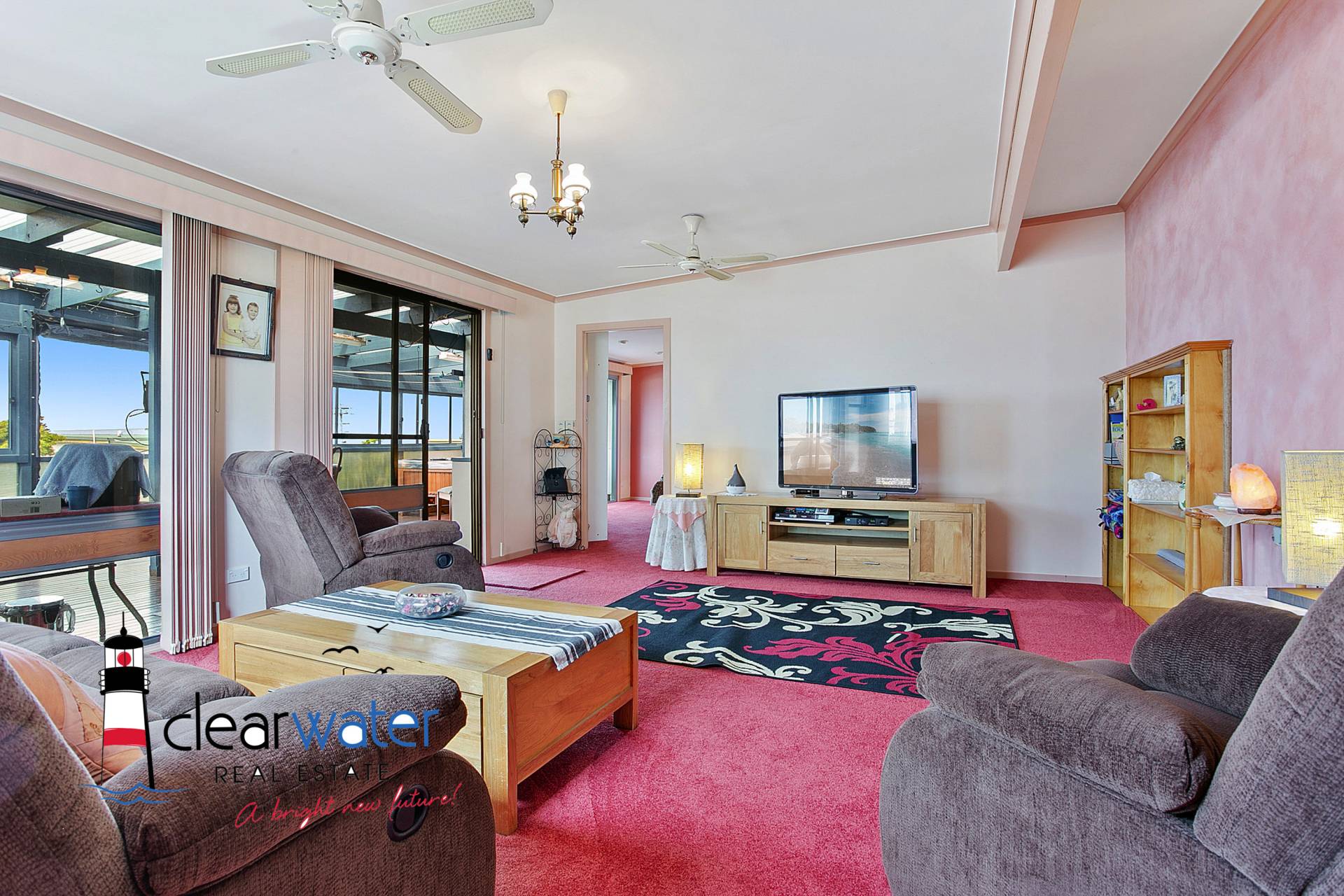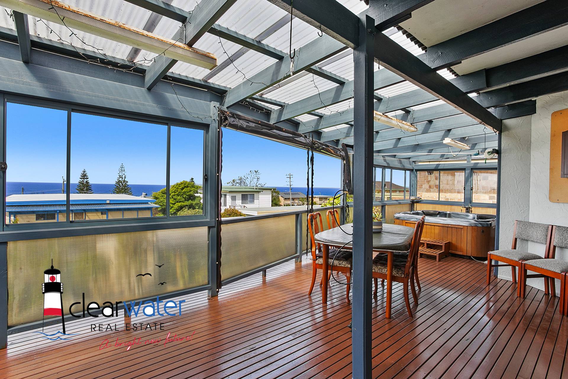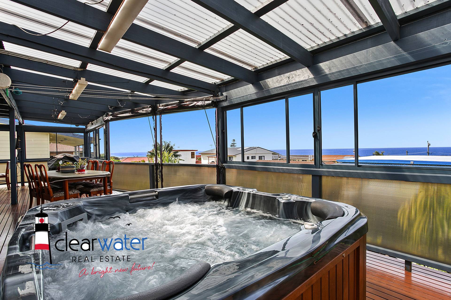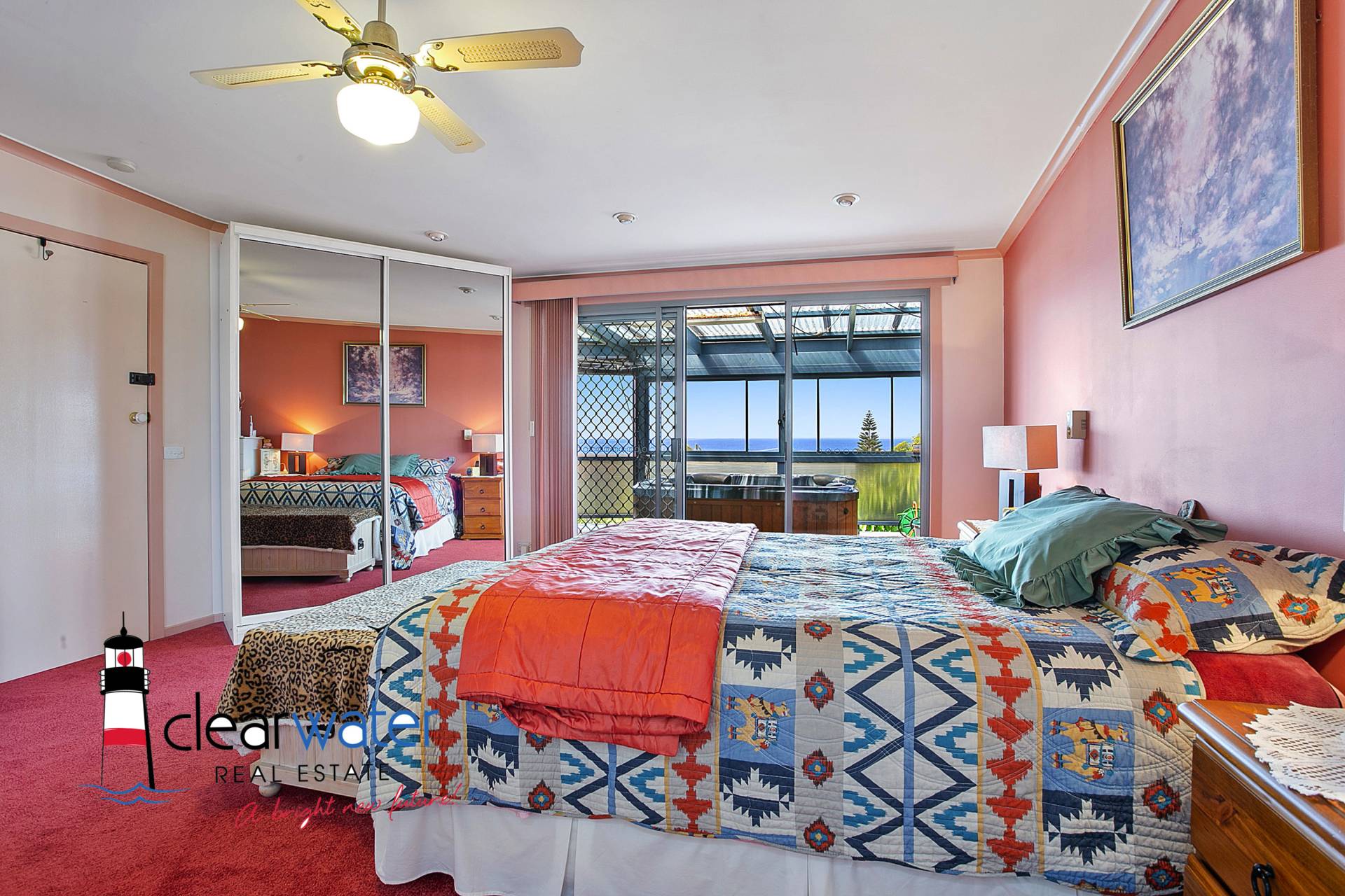 Upper Level: A spacious lounge, sliding doors leading onto the covered deck with extensive ocean views, four person spa and plenty of space for entertaining. The master bedroom has built in robes, modernised ensuite and sliding doors leading onto the deck.