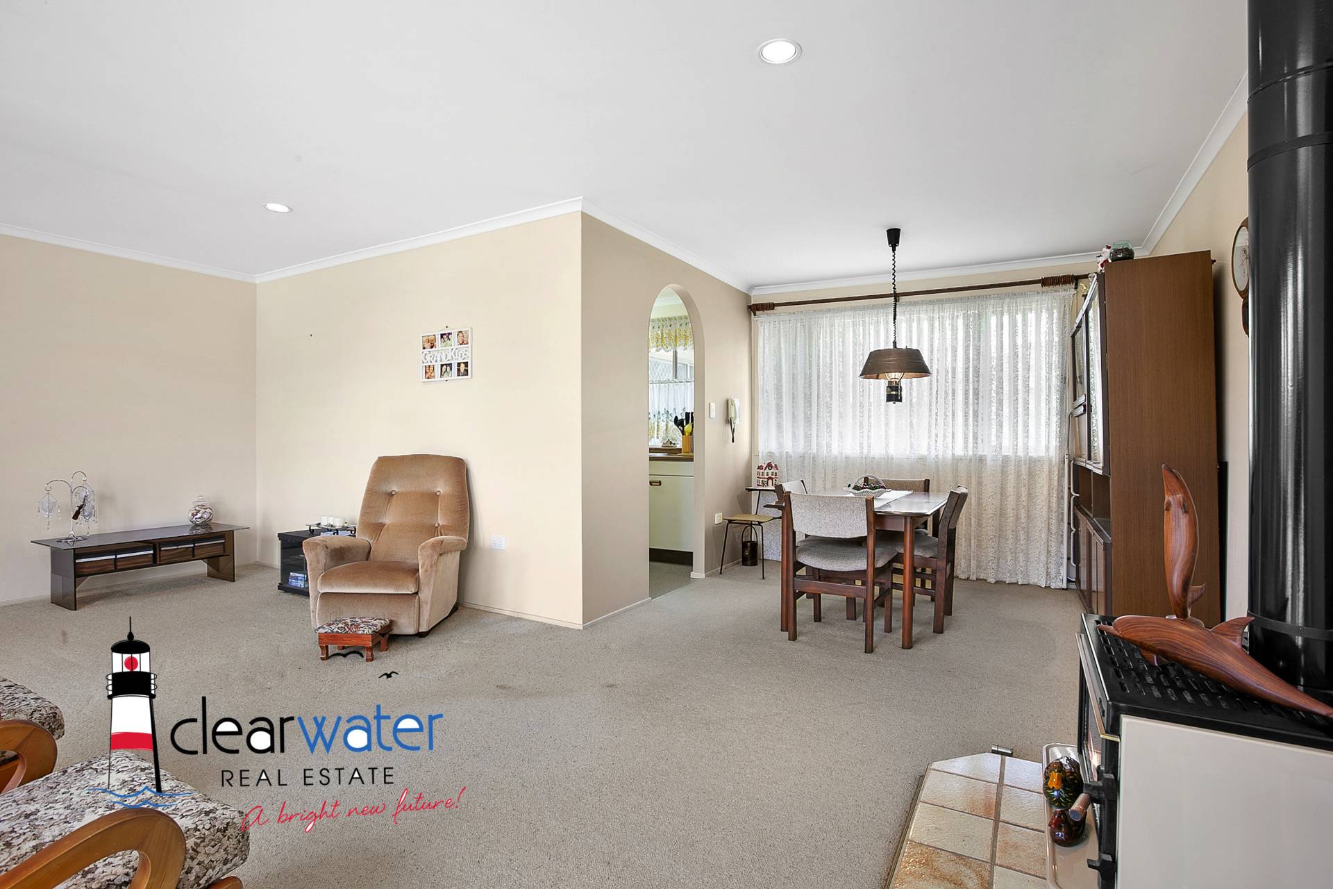 The home features a generous sized lounge/dining room with slow combustion wood heater, galley style kitchen with the added bonus of a breakfast/casual meals area. A Glass sliding door leads onto the patio for alfresco entertaining. There are three good sized bedrooms with built in robes, central three way bathroom and a laundry with an extra toilet.