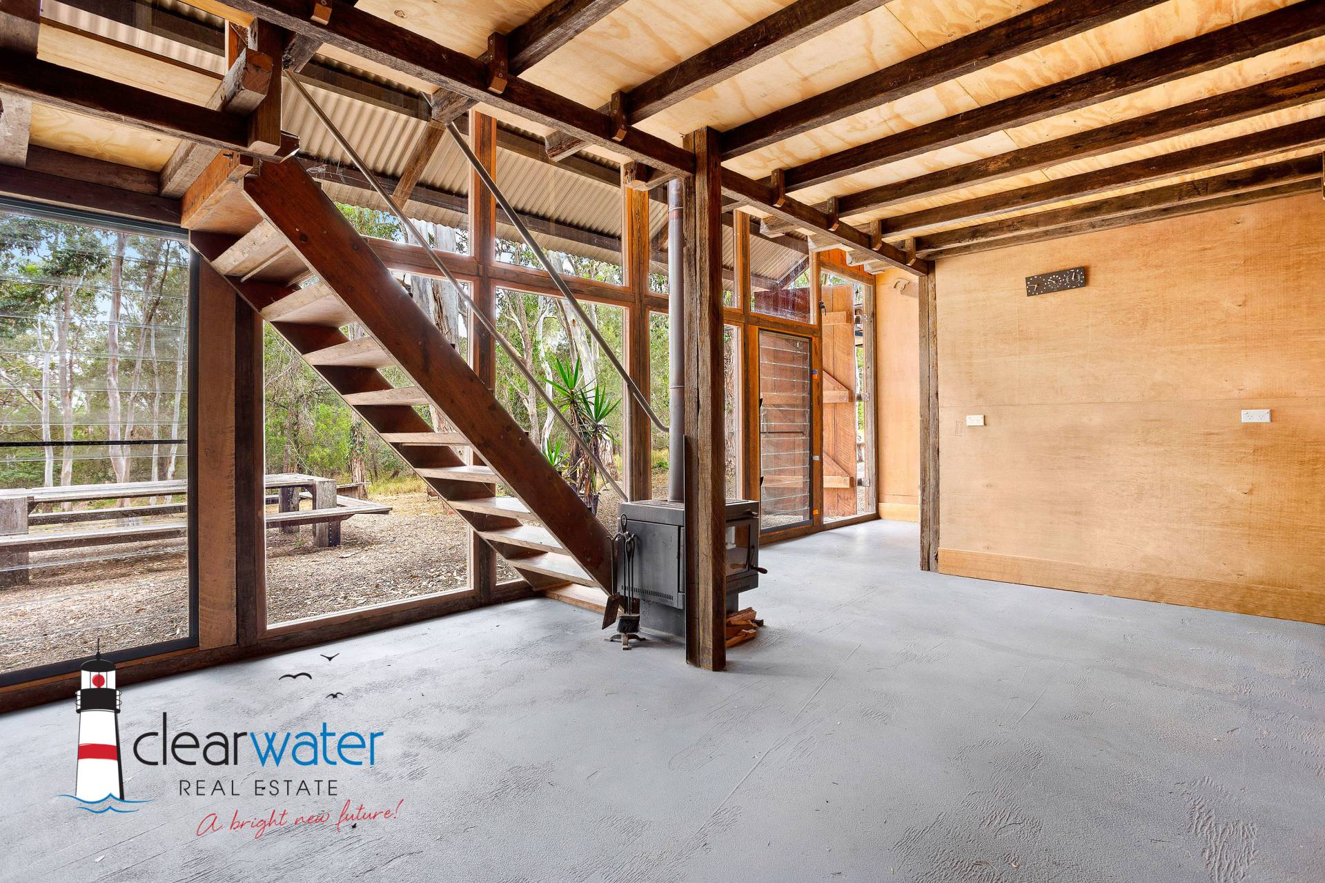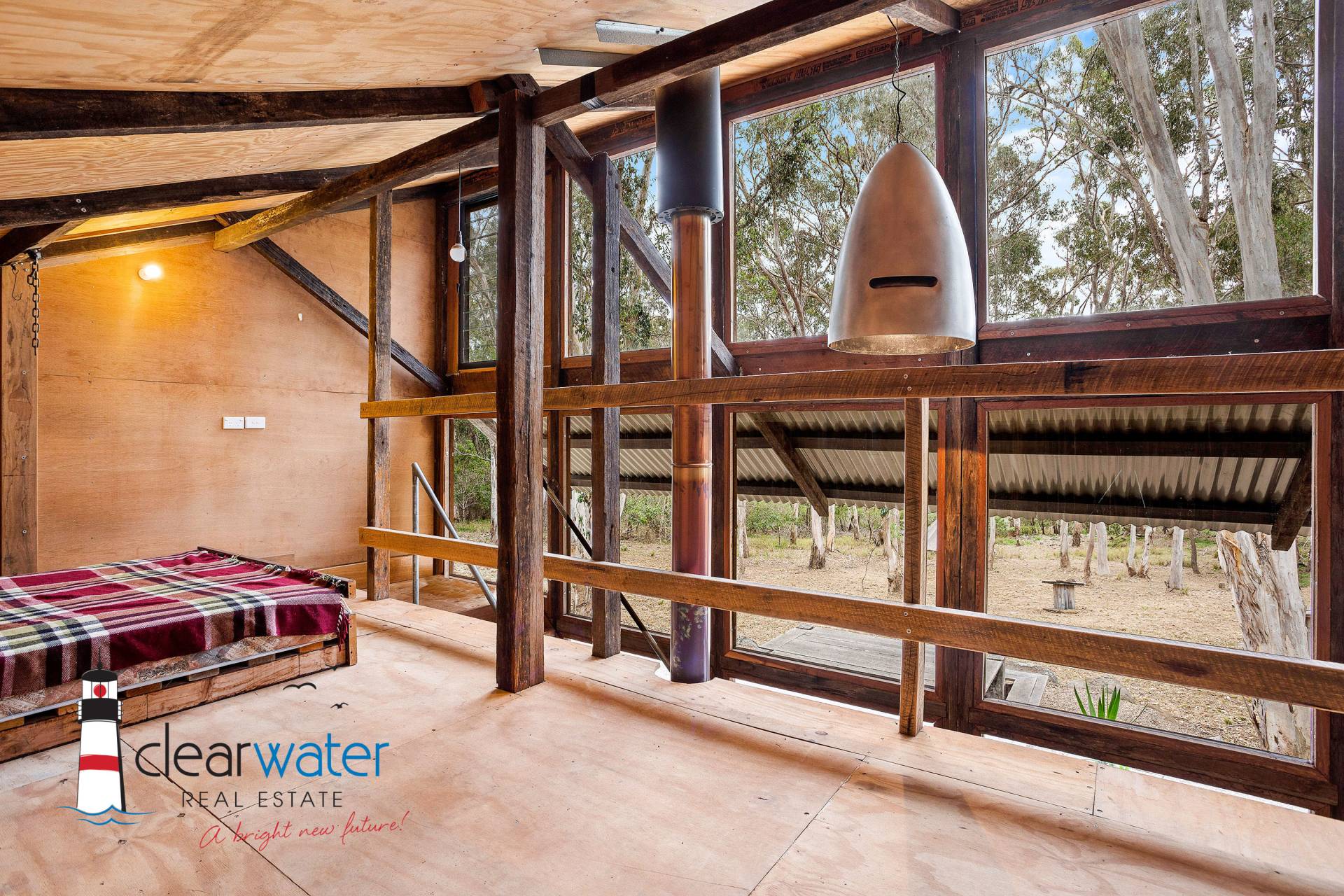 The Shed: Currently it has been set up as a temporary place to stay occasionally while the current owners are waiting to build their dream home. Once a new home is built, this shed could be easily converted back to a car/storage shed. The windows allow lots of natural light to stream in and gives you a commanding view over the property. Other notable features include: electricity is connected, bathroom, laundry, tank water and slow combustion wood heater.