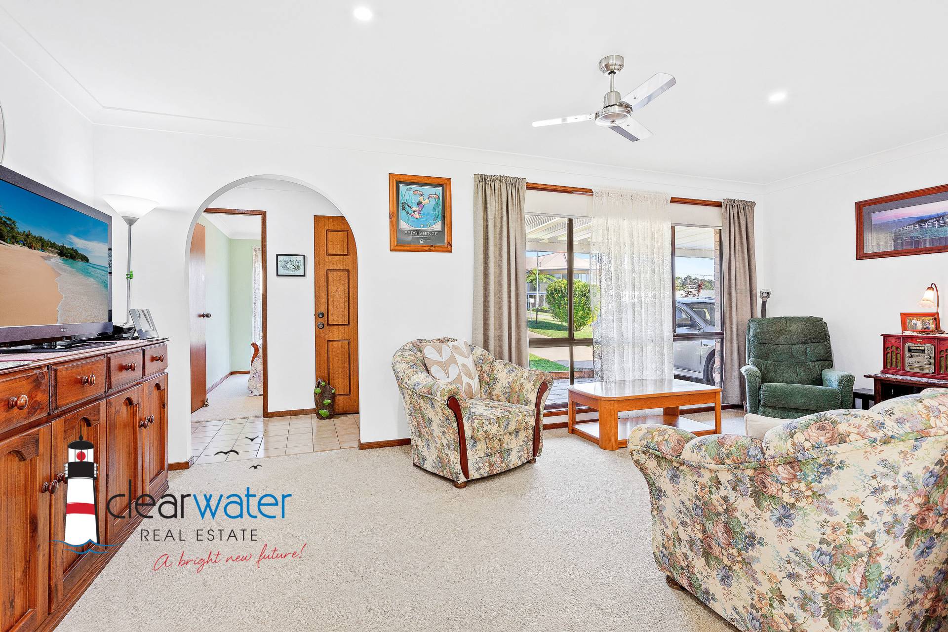 The Home: Open plan lounge dining and kitchen with three good sized bedrooms. The fully enclosed sunroom is the ideal spot to enjoy your early morning cuppa, and is spacious enough for entertaining friends and family. The home is light bright and airy.