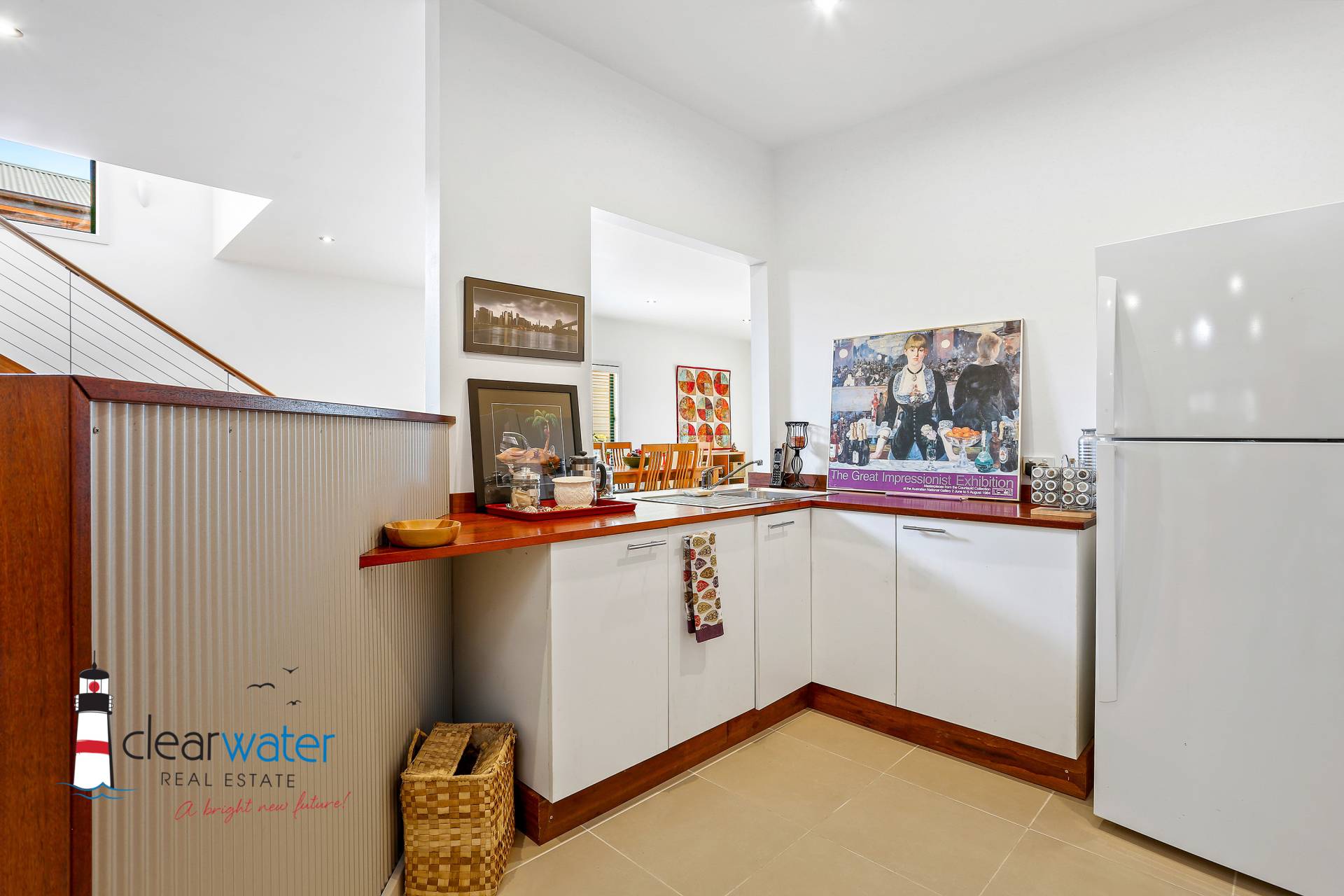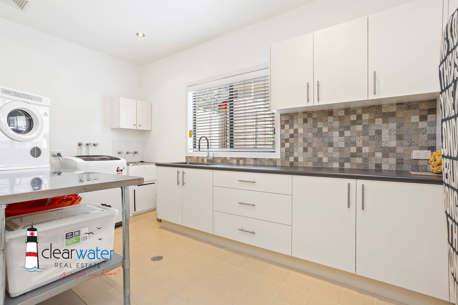 Ground Level: Entry is into open plan flexible living spaces with a large double bedroom, kitchenette/bar area and could provide an independent living area for extended family or guests. There is plenty of storage and a recently renovated large laundry. A covered patio is located at the rear of the living area.