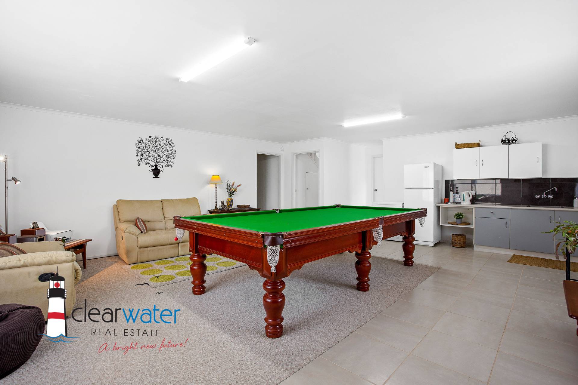 Downstairs: A spacious area for guests with a kitchenette, tiled floors, room for a snooker table and easy access to the bottom deck. There is a laundry off the rumpus room with a shower.