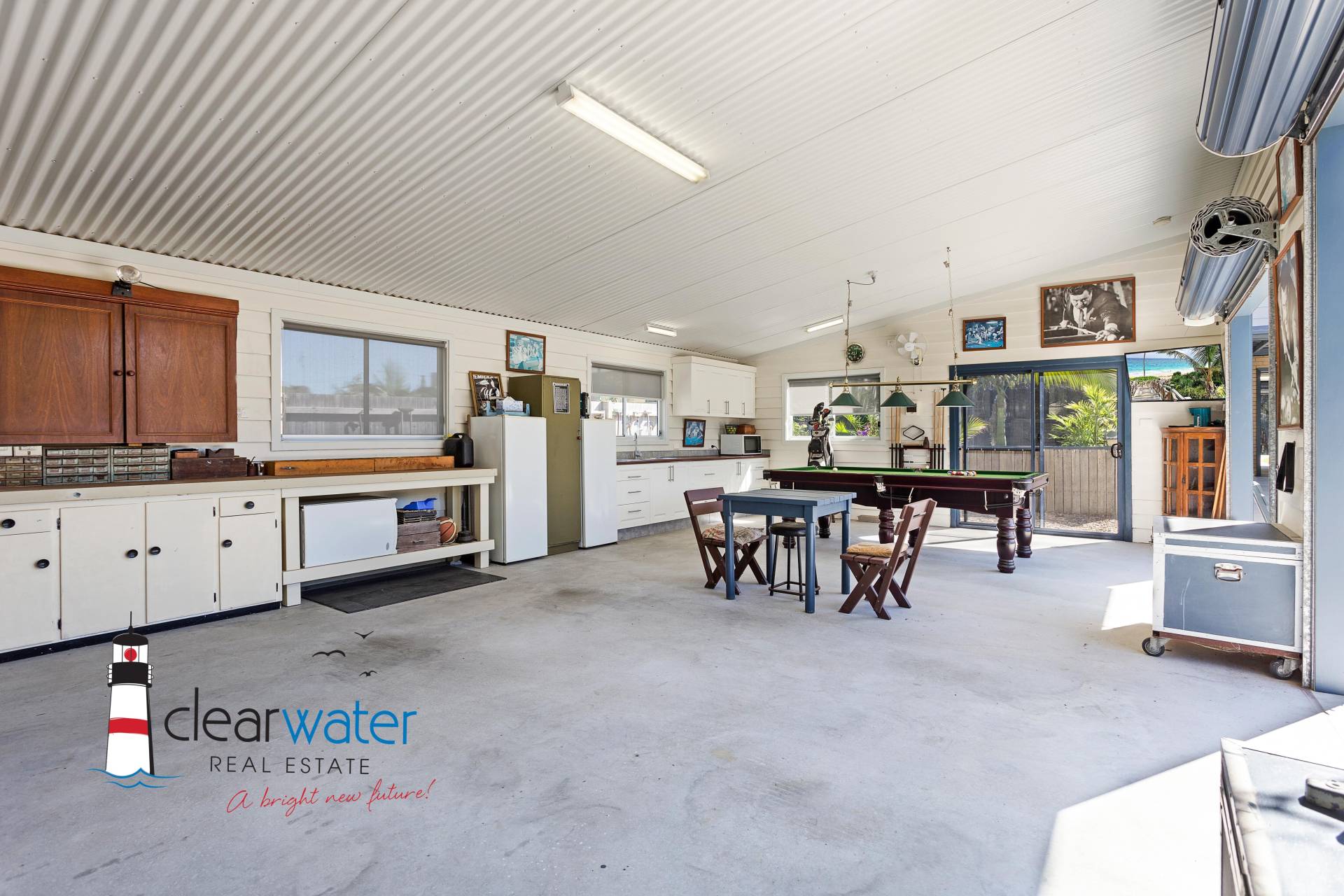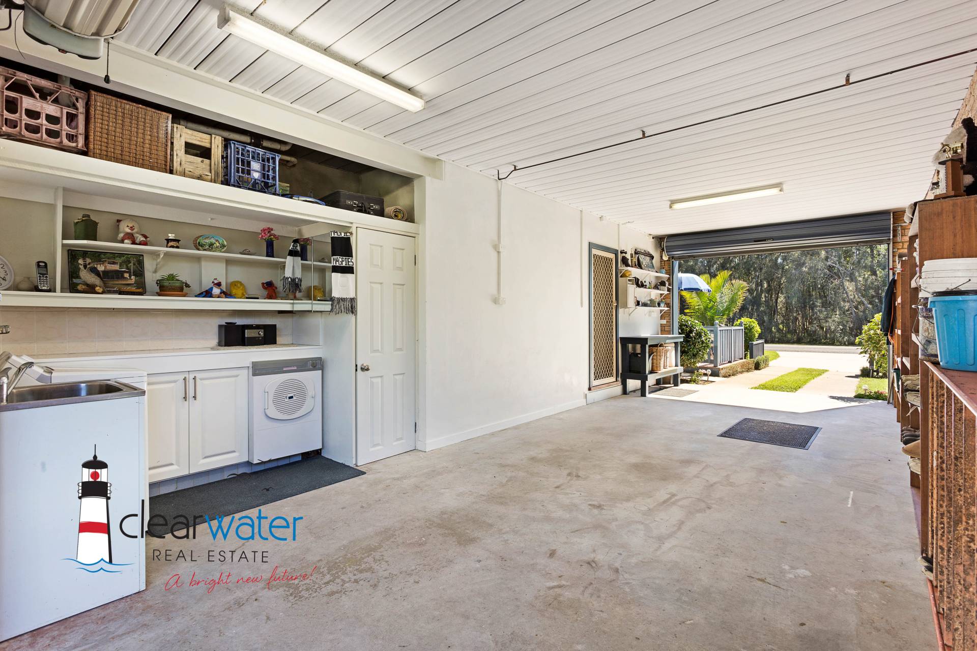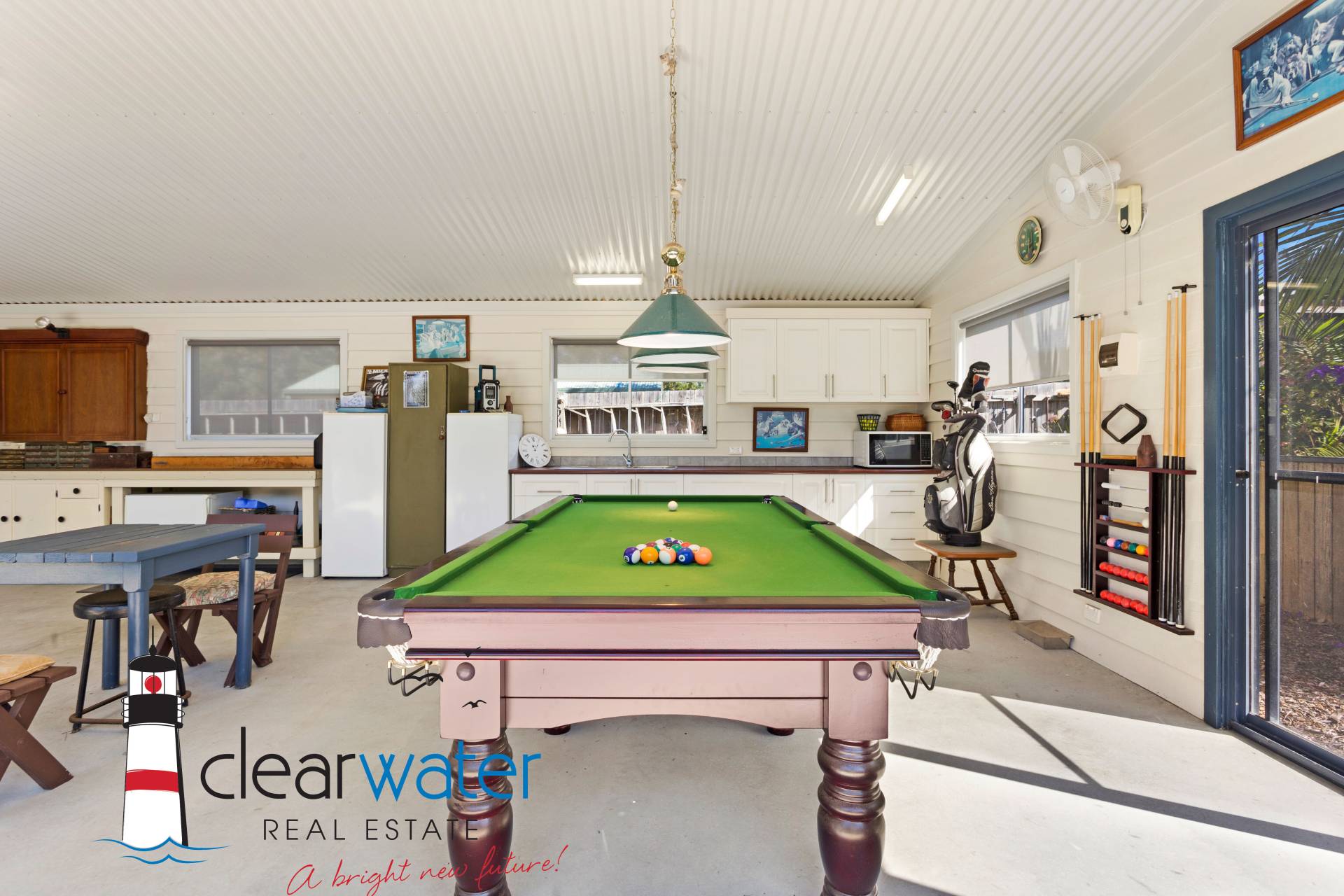 • or use the massive 3 car garage, with large kitchenette and its own back entrance from the reserve for your own home business or storage space for boats and/or machinery and get $600pw income from the rest.