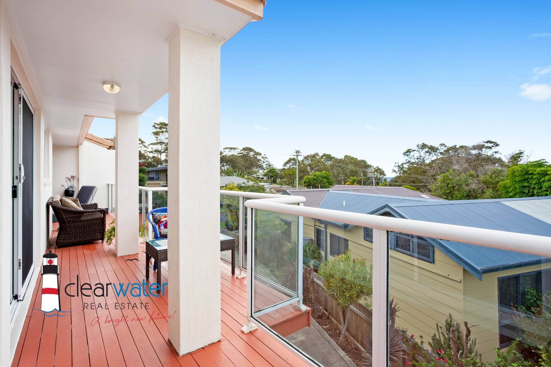 Upstairs - This is where you'll find the master with two built in robes, two way bathroom and sliding doors opening onto the large balcony which is perfect for enjoying the coastal breezes and morning sun. The kitchen is sunny and compact, yet has plenty of storage and bench space. The large open plan lounge/dining area also opens into the balcony for alfresco entertaining.