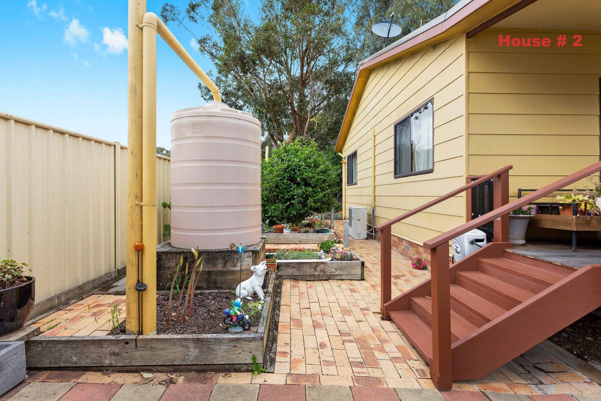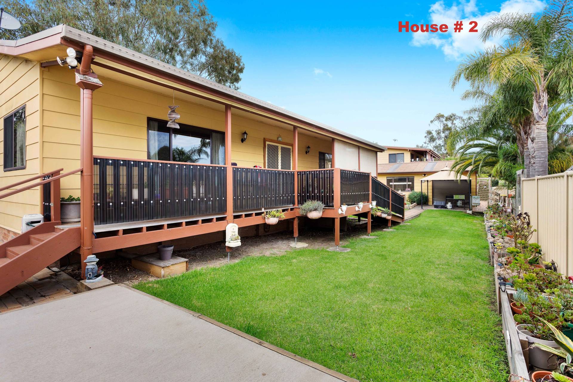 For Rent: Home #2 - Approximately 14 years old open plan designed single level home with two bedrooms and two bathrooms. The kitchen has plenty of cupboard space, pantry and gas stove. There is a ramp at the side and front of the home for easy access. This property is a mini oasis, manicured gardens, vegetable patch, water tanks, shed with power, and a patio with a gazebo. From the street, you cannot see the rear home and it has its own fenced yard.