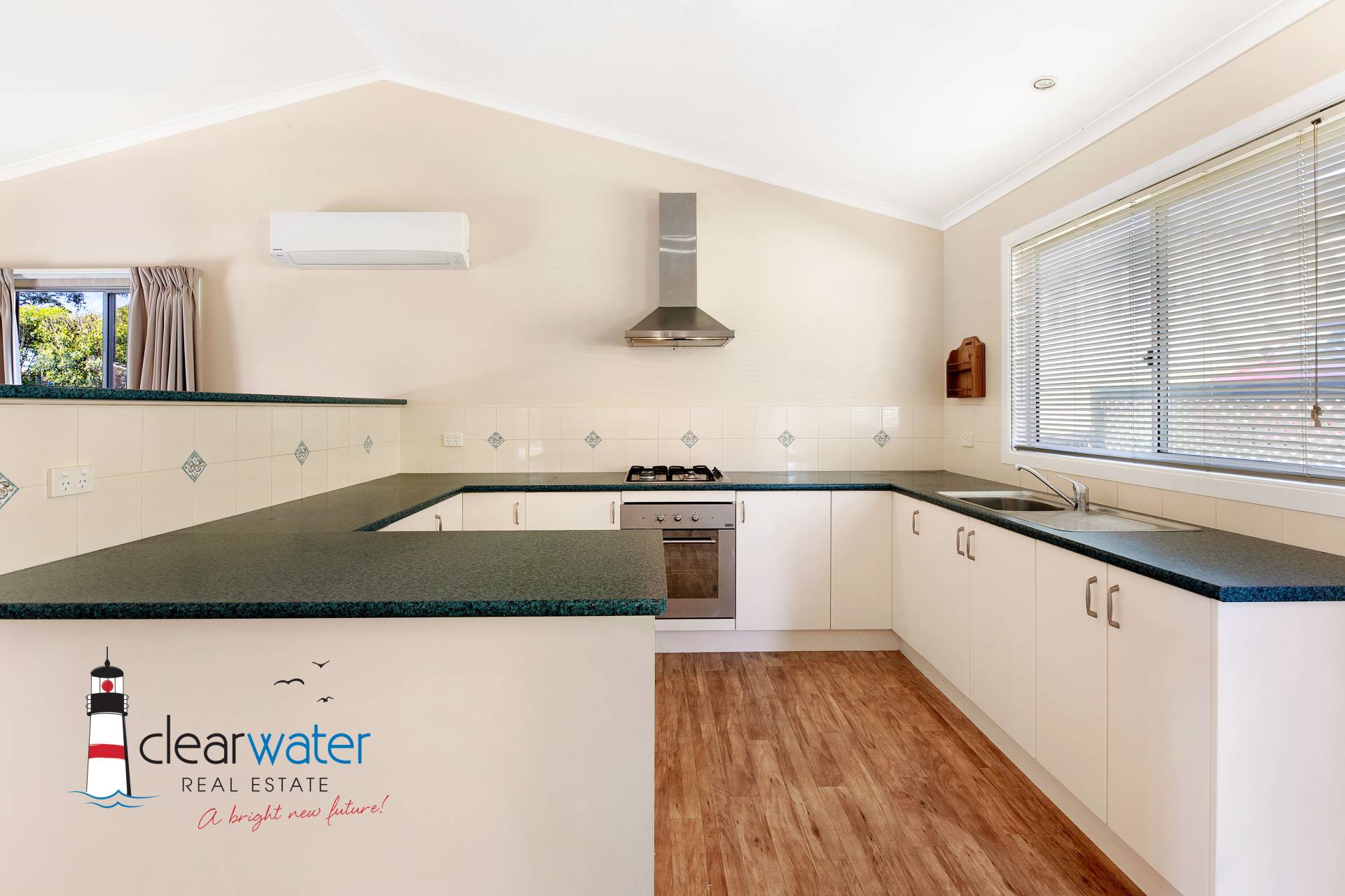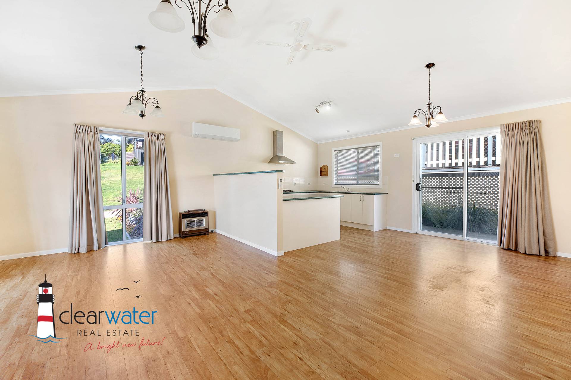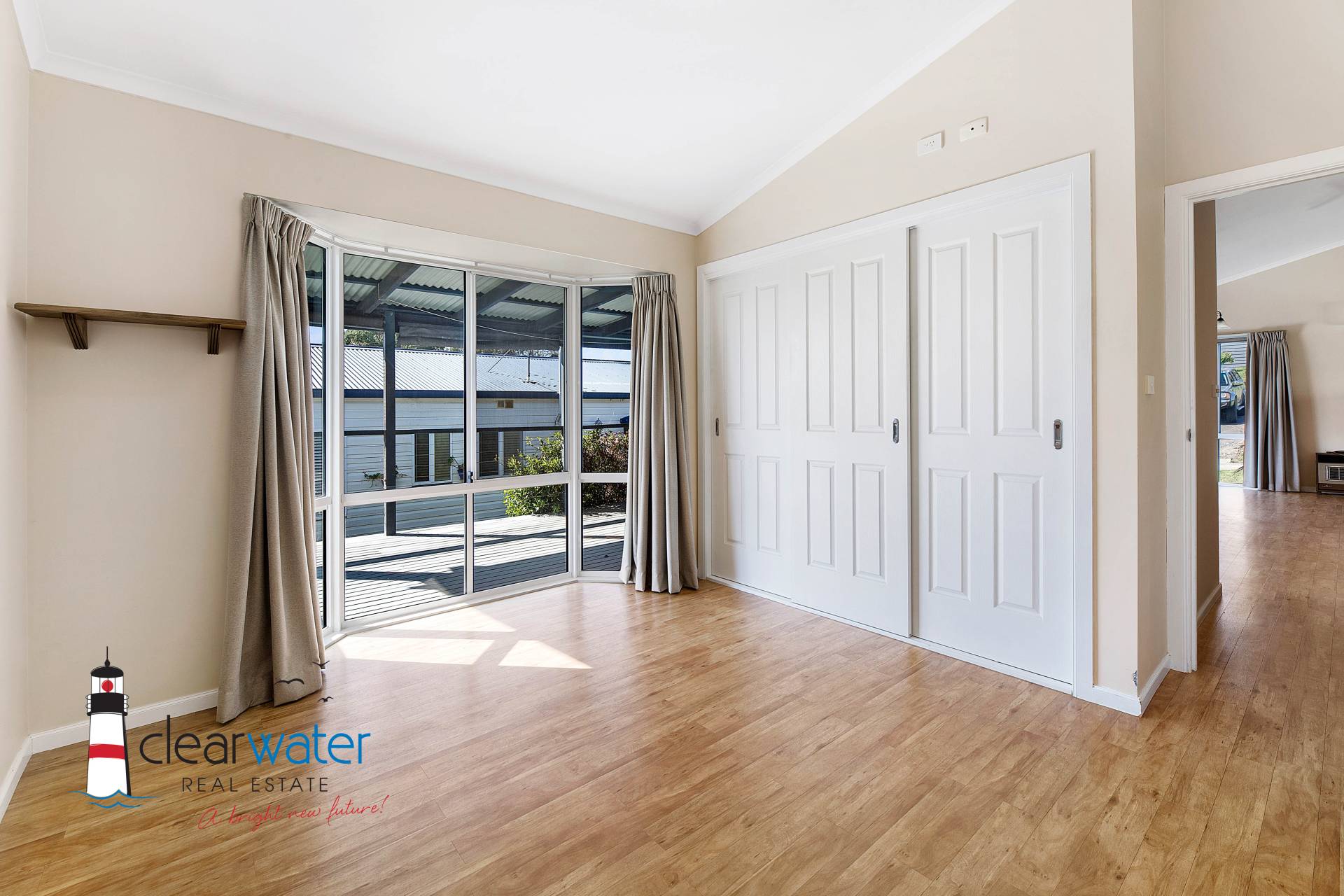 Featuring: Open plan living & dining area with a full sized kitchen. Two good sized bedrooms, both with built in robes. The master bedroom has a bay window for extra light and space. A reverse cycle air conditioning unit will ensure you are kept warm/cool throughout the year, and there is also a gas point for a heater. The large covered veranda is ideal for alfresco entertaining and watching the sunsets over the lake. This quality home was manufactured on site by a local builder.