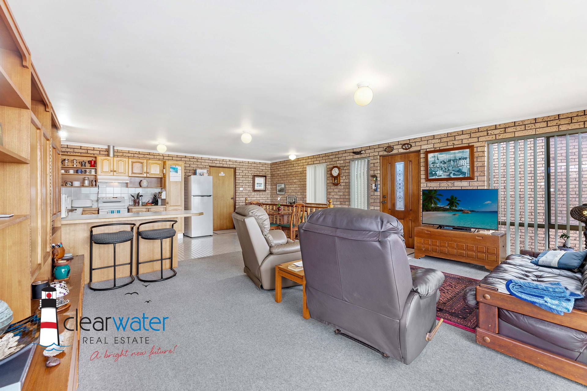 Entry Level: Single lock up garage with internal access, extensive ocean and wetland views from the open plan kitchen/dining/lounge area. The covered patio is perfect for family gatherings or a quiet place to sit and enjoy the whales as they pass (in season).