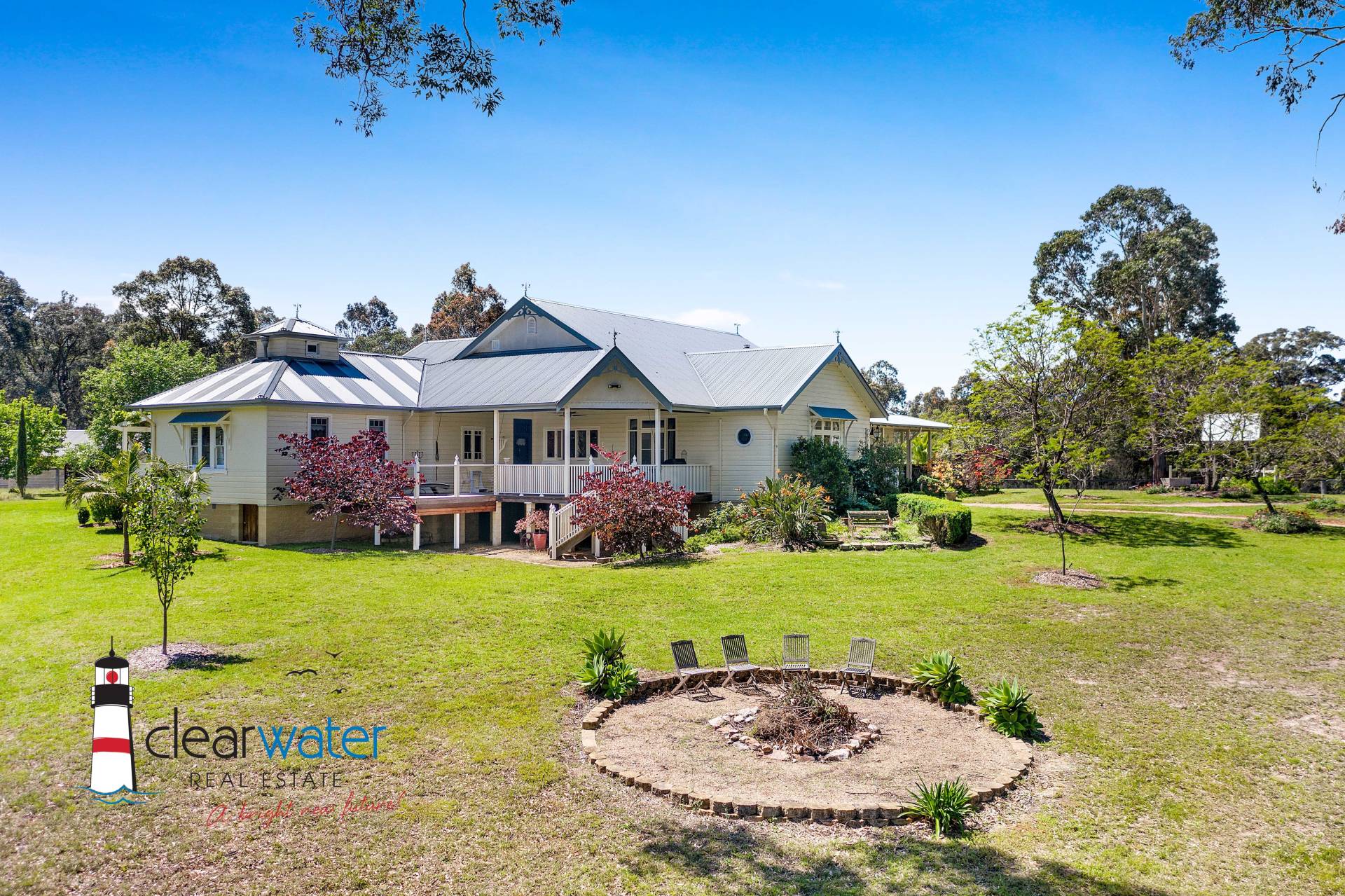 The home is complete with formal private entry portico, four bedrooms, two bathrooms, separate living areas with two-way wood burning fireplace, large kitchen and easy access to covered return verandas overlooking the surrounding country style gardens.  There is also a four-car carport and parking for many more vehicles, vans, boats or trailers. This home is as practical as it is impressive.