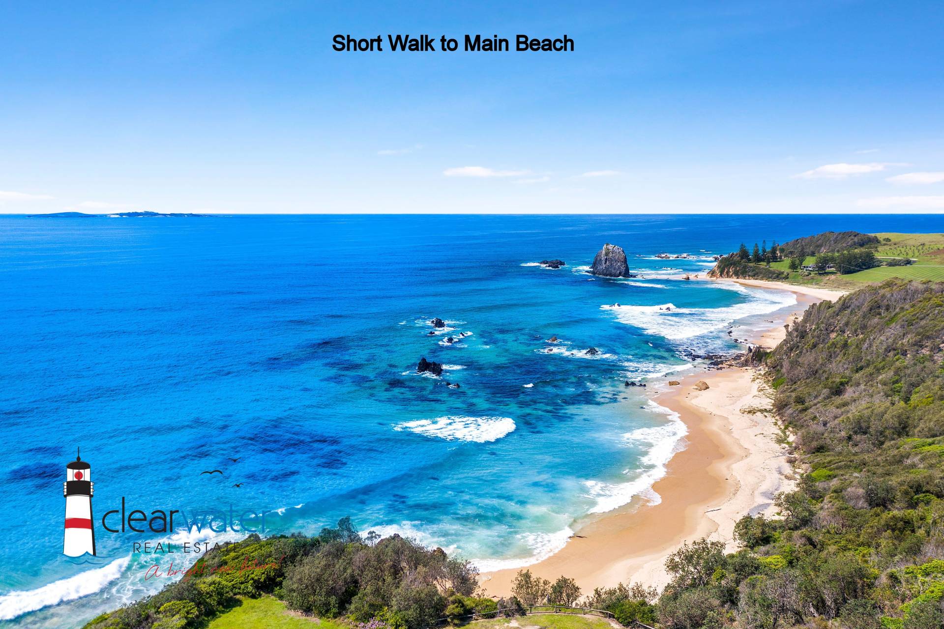 Gentle slopping block in a quiet street displaying Glimpses of Montague Island and ocean views.