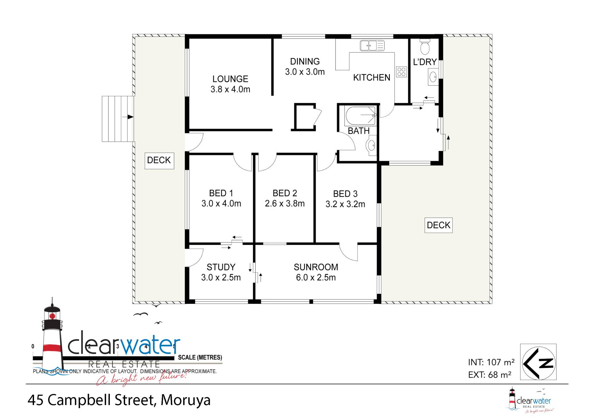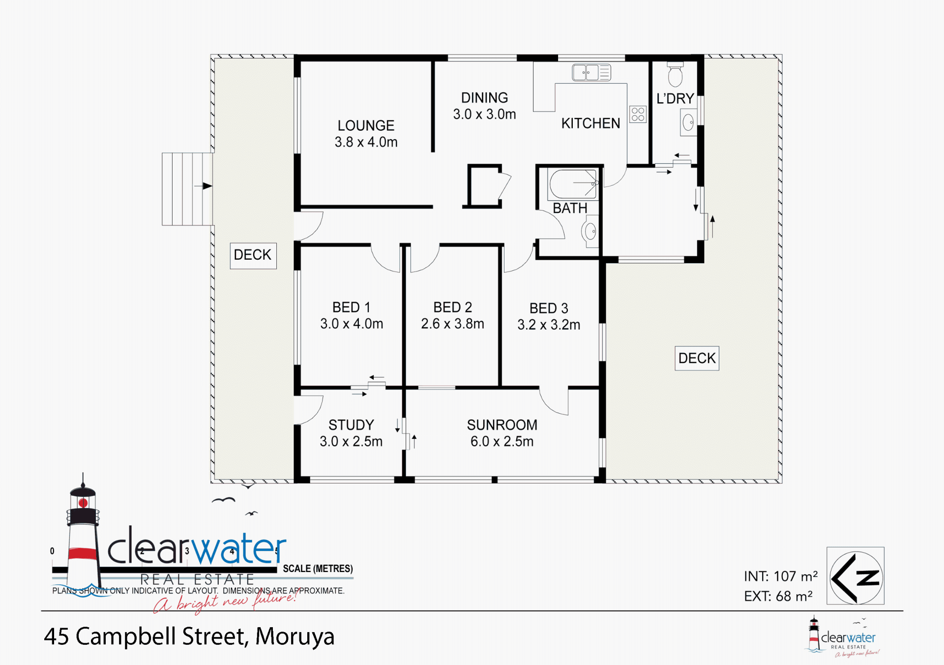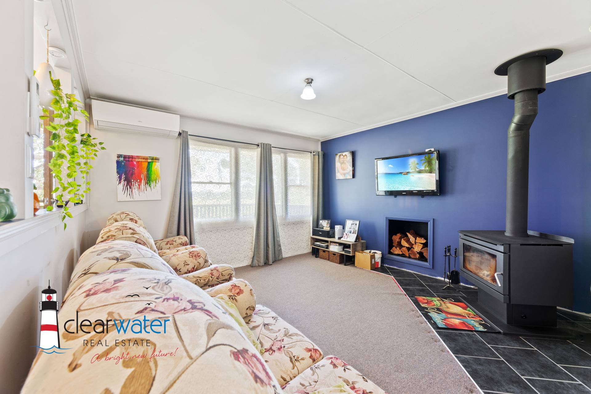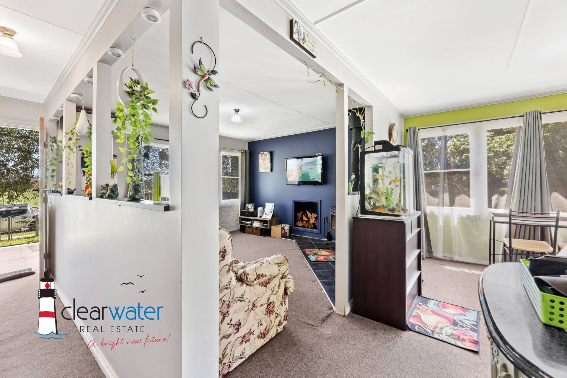 The Home: Three good sized bedrooms, light and airy sun room, lounge with wood heater, central bathroom, large laundry with a toilet and vanity. The open plan living and dining areas with easy access to the spacious undercover rear deck. The study is off bedroom one and has its own external entry/exit, making it ideal for a home based business. Other features include Air Conditioning & the home is carpeted throughout (hardwood floorboards under the carpet).