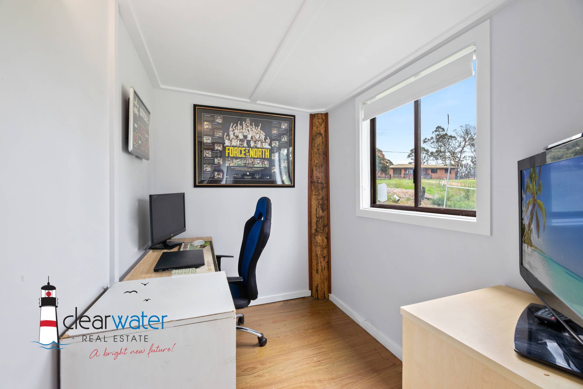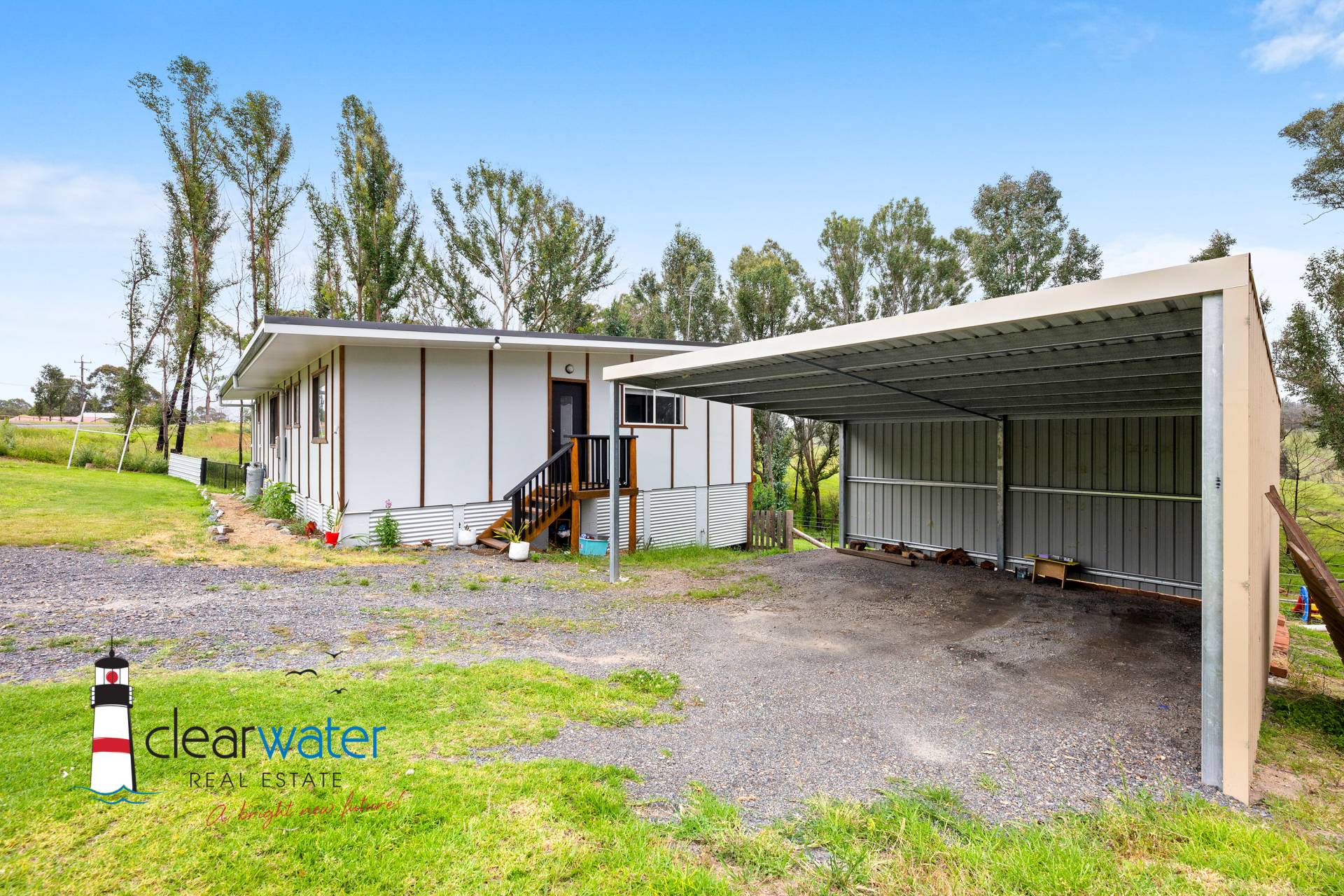 Featuring a central hallway with easy access to the generous sized bedrooms, large combined laundry & bathroom, open plan lounge, eat in kitchen and walk in panty. The master bedroom has an ensuite, and one of the bedrooms has an extra "play" space for the children. Off the lounge room is a covered north facing deck with a desirable northerly aspect overlooking farmland. The spacious living area has a reverse cycle air conditioner, slow combustion wood heater and a separate children's play room. Other features of the home include, timber floors throughout, separate office with external access (ideal for those working from home), hardwood timber deck & stairs and a double carport.