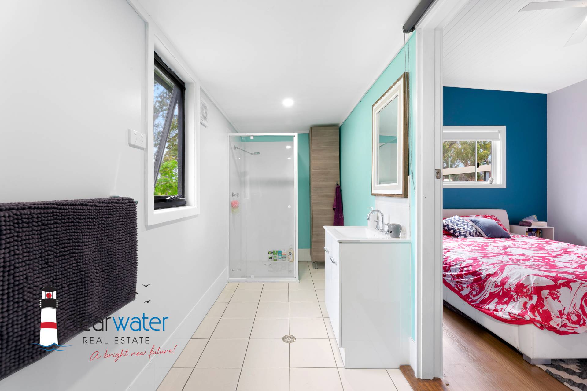 This gentle sloping block is mostly a blank canvas with some easy care gardens. If it is storage you are looking for, there is a huge amount of under house storage which is ideal for the trades person, or a place to put your mower, trailer and tools.