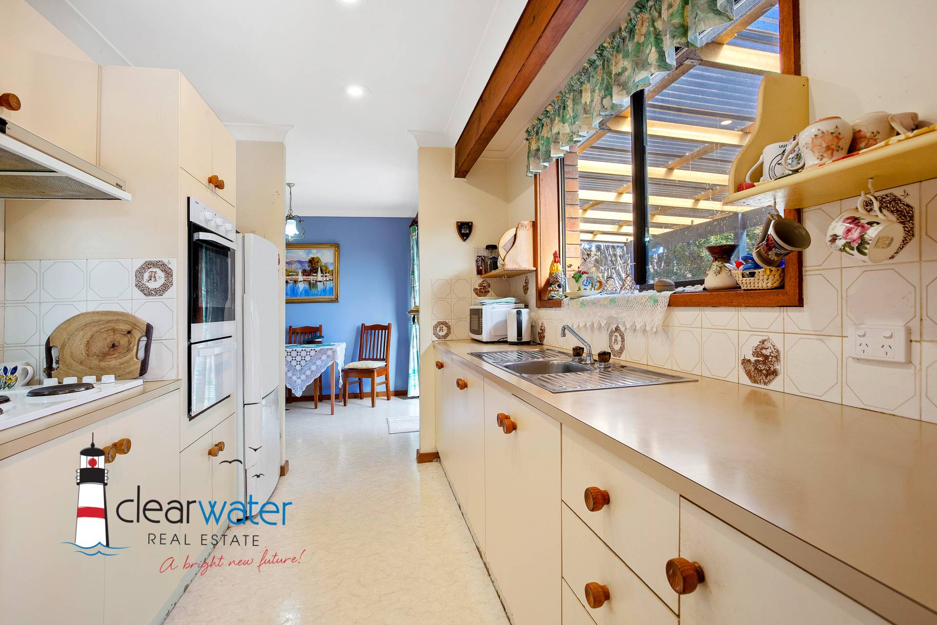 "Meishan" - Situated in a quiet street in Kianga is this very comfortable solidly built two bedroom home on a manageable 556 m2 block of land. Its an easy walk to the beach and you can see and hear the ocean, what more do you need. The perfect property, for the downsizes, first home buyers, investors or a great little low maintenance holiday property.