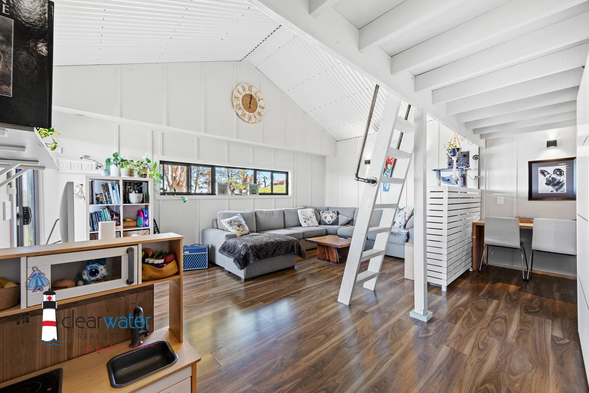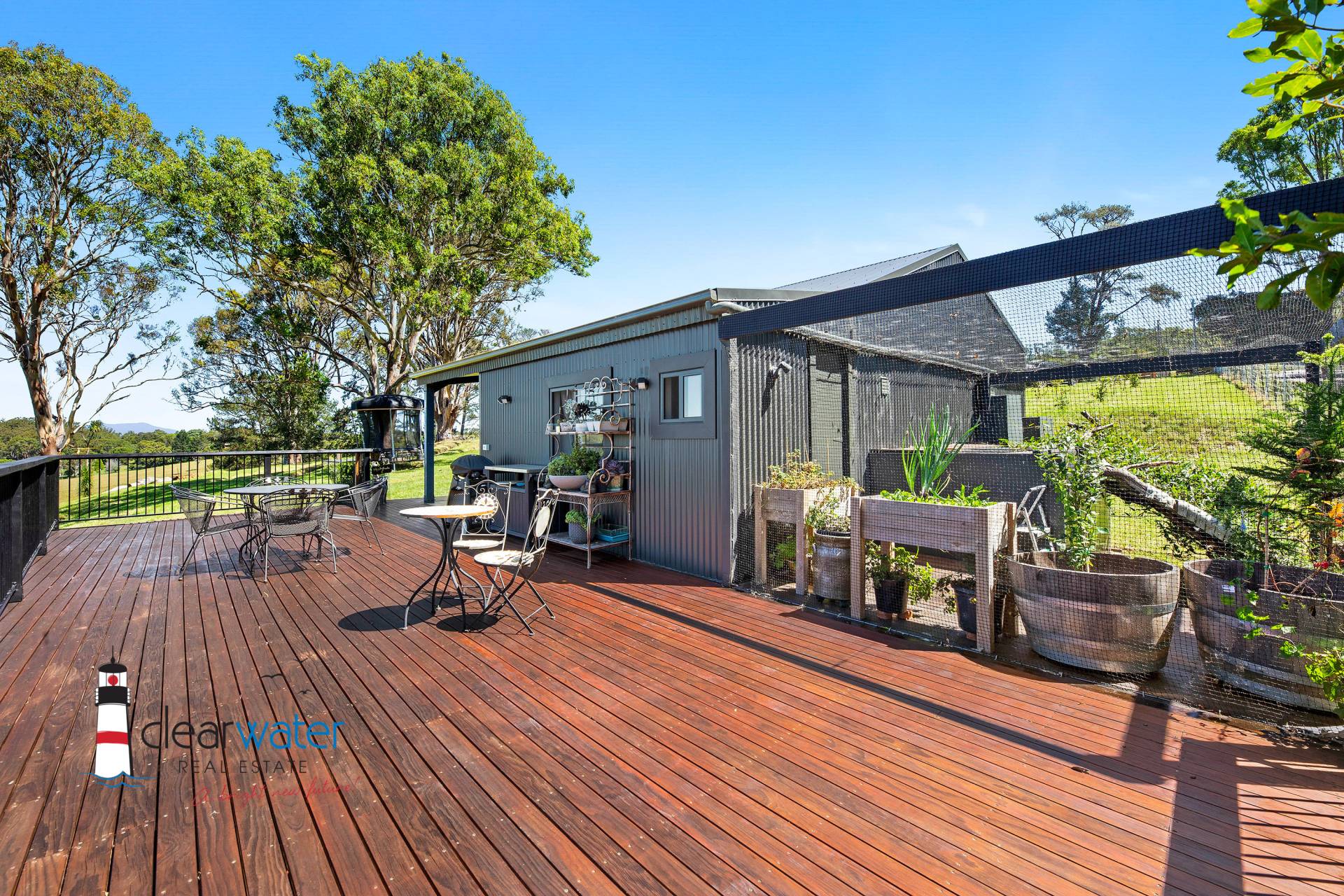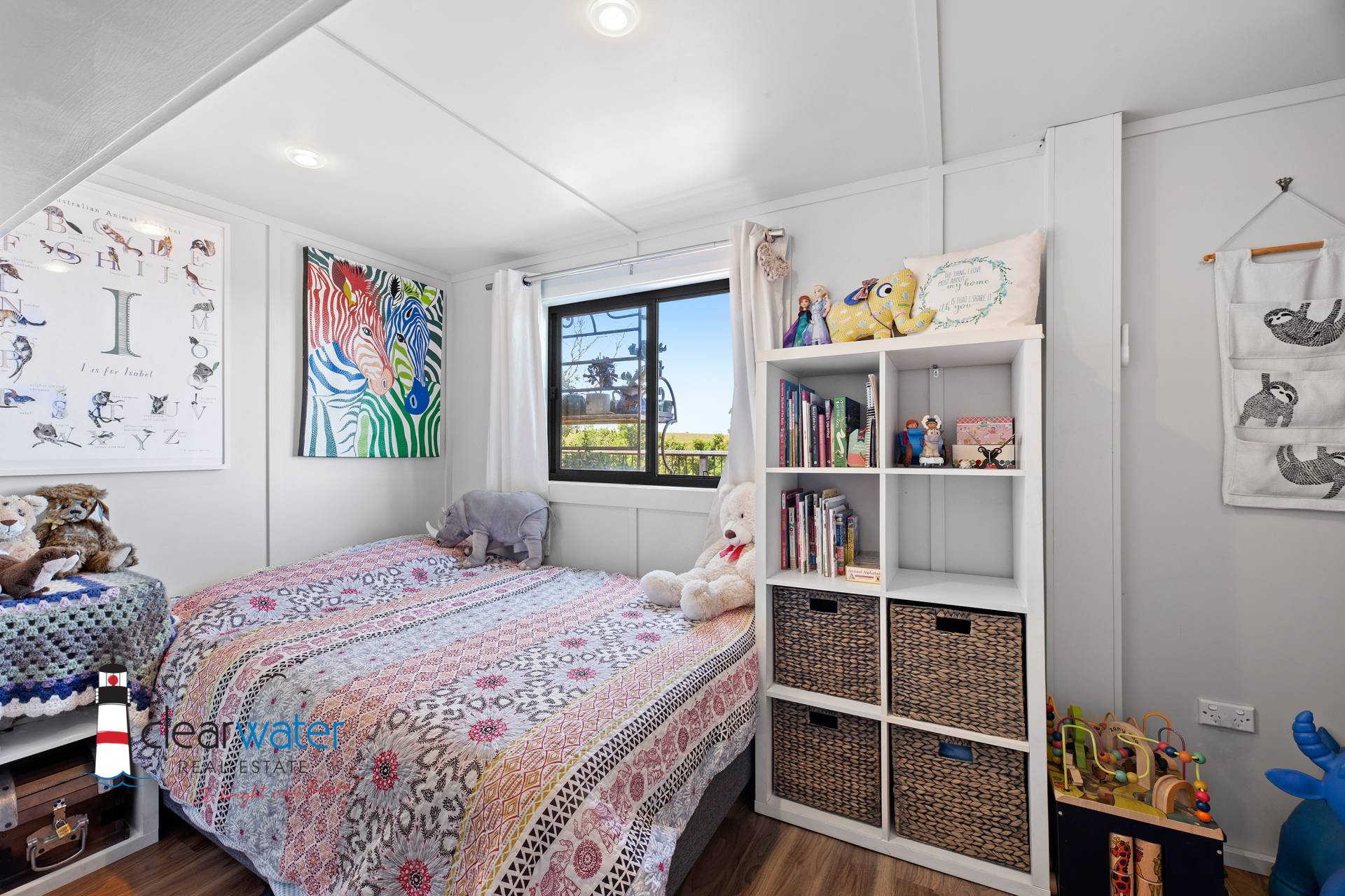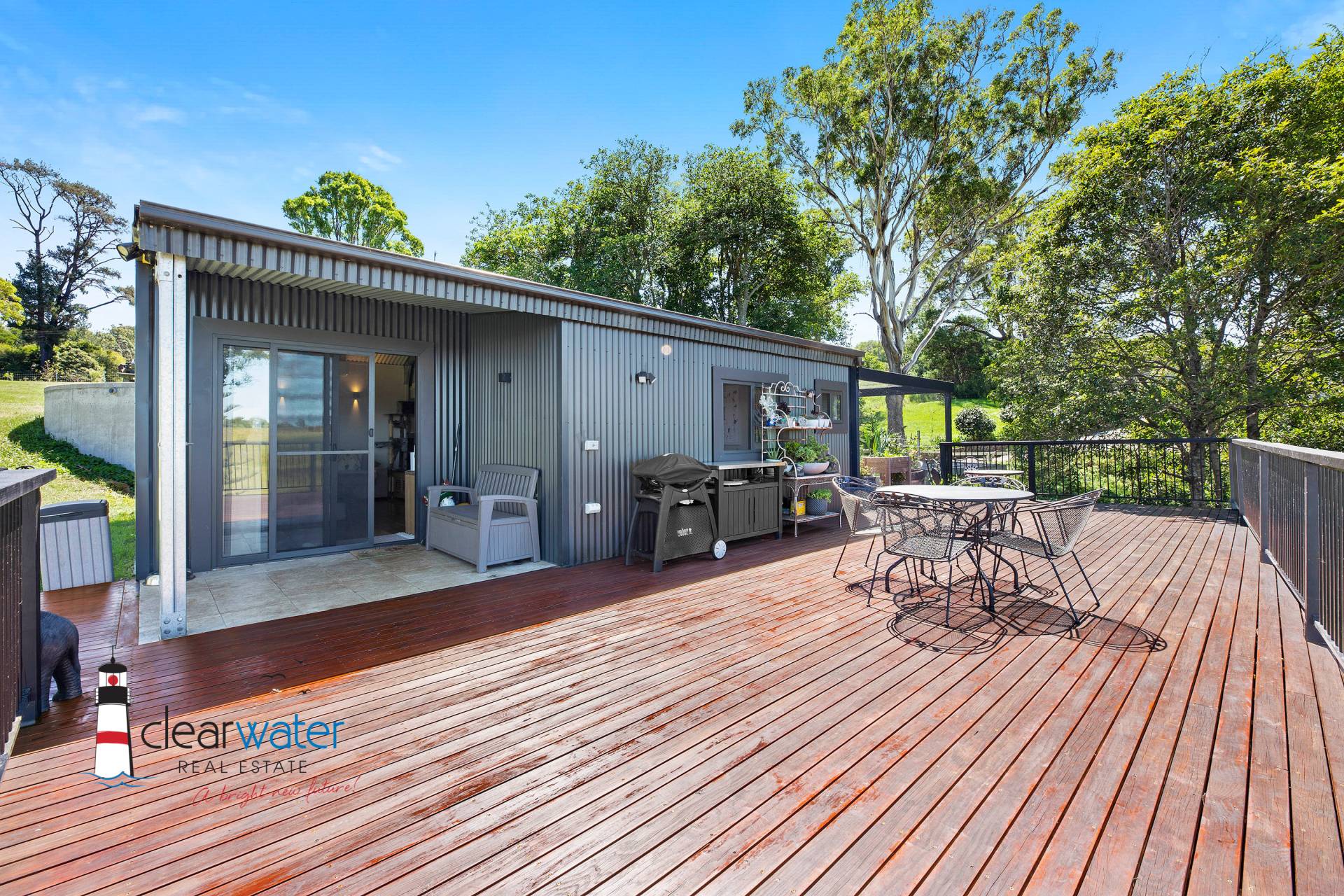 Features: 105,000 concrete water tank, 40 ft shipping container for storage (set under the decking), orchard with many varieties, fully fenced, large east facing deck with amazing water views, NBN fixed wireless internet and separate outside laundry. Power, phone and water.