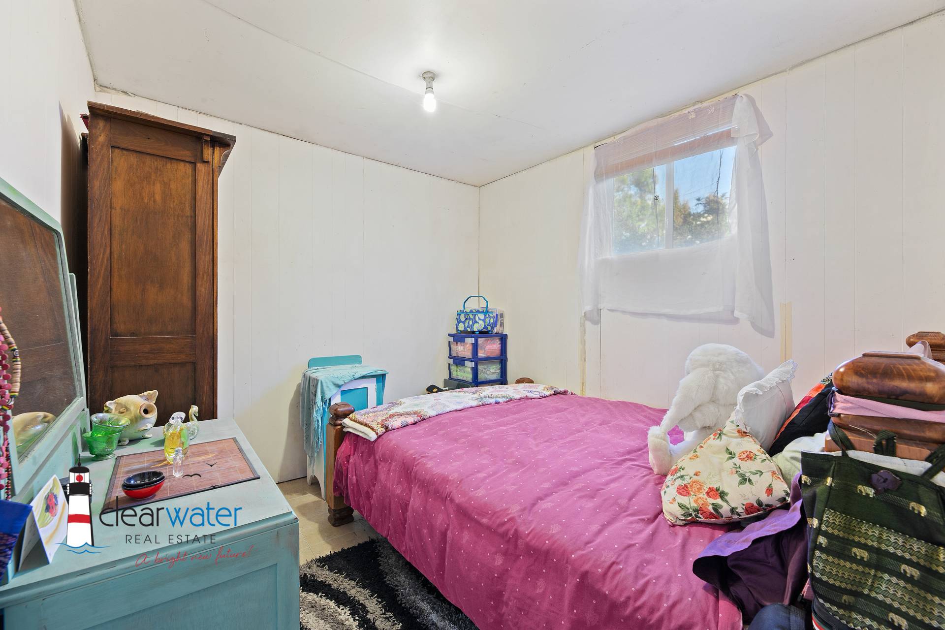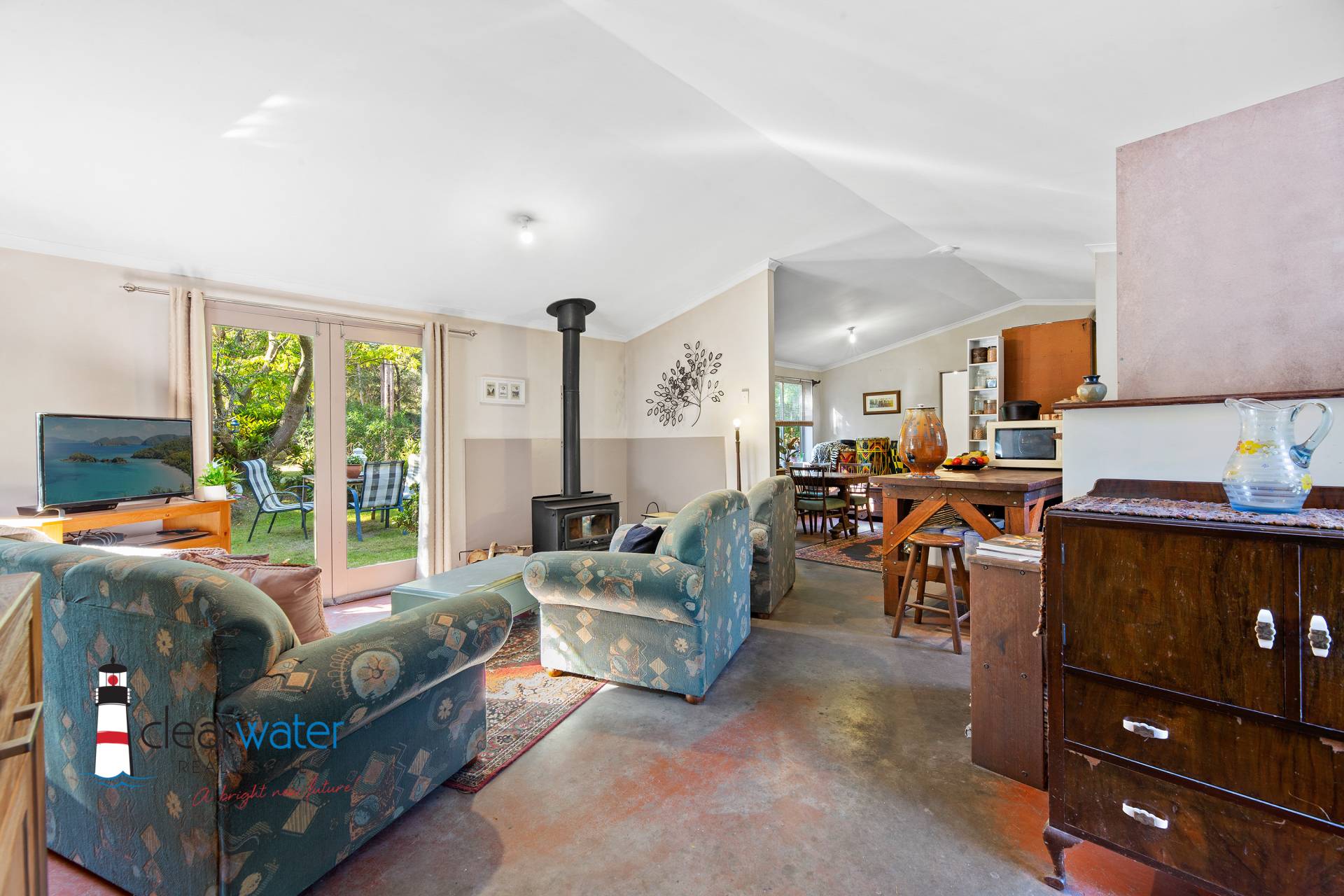 Currently, the shed has been converted to temporary living (not approved as residential - shed approval only), but it is a nice place to visit while your dream home is being built. The shed has two bedrooms, French doors, bathroom and spacious open plan living area with kitchenette.