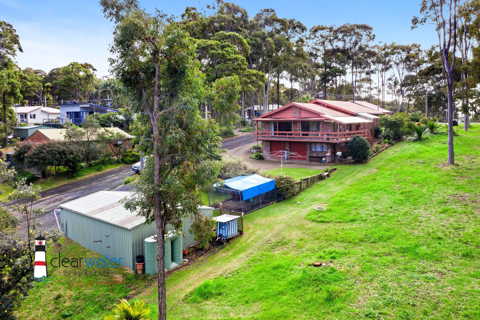 • 2 car garaging plus workshop or rumpus area under the house with electric roller doors and a huge separate Colourbond garage down the back