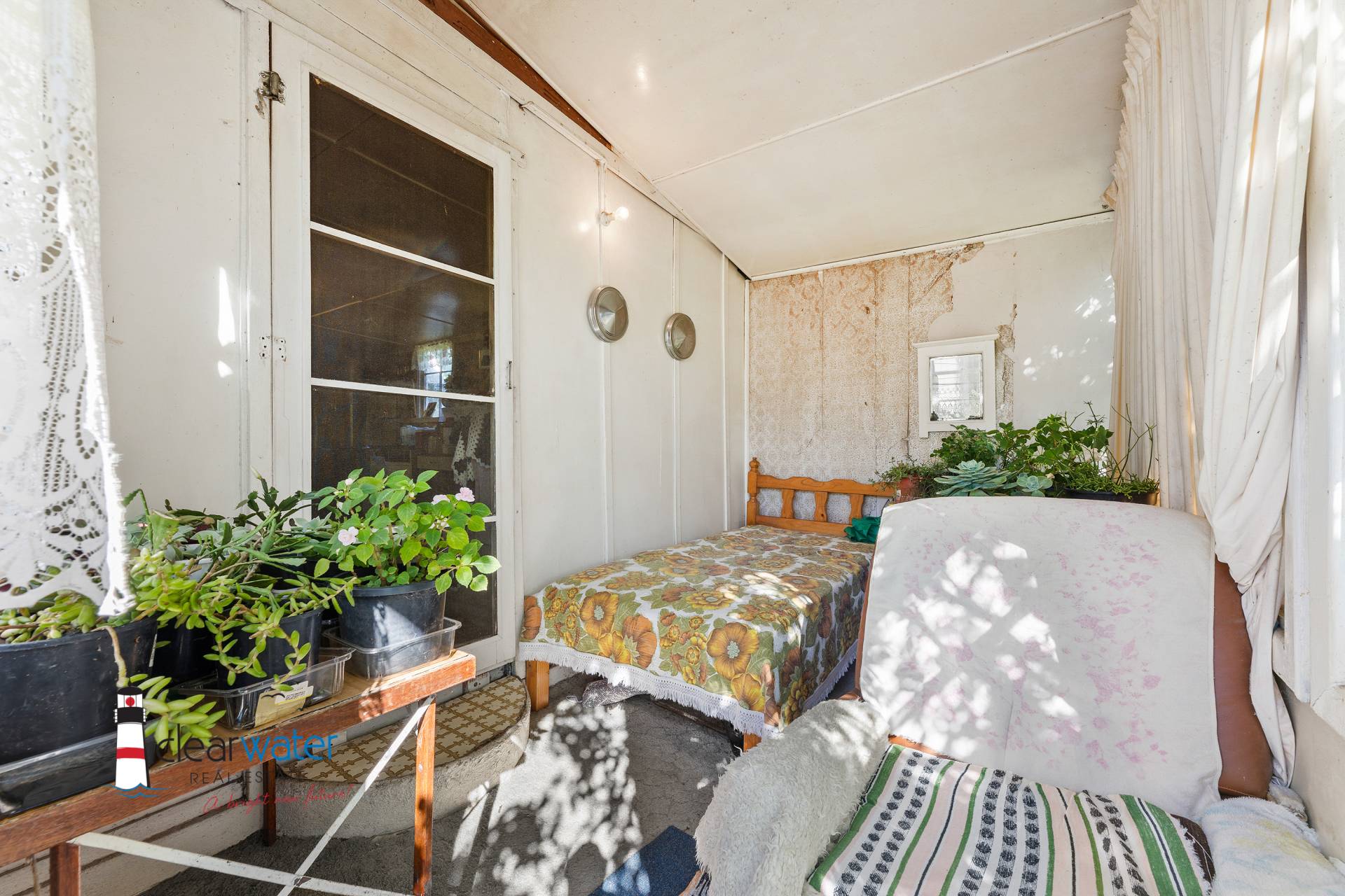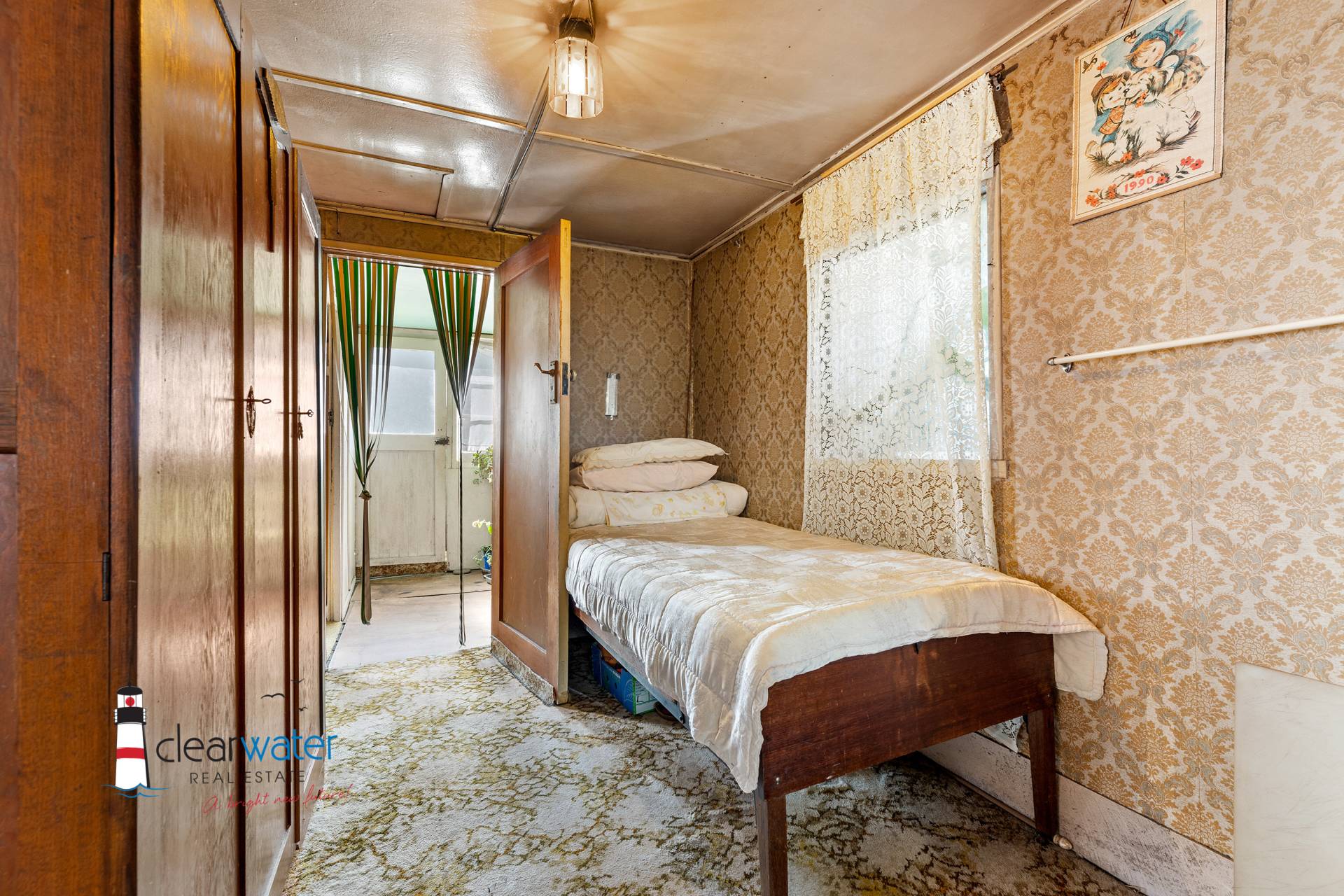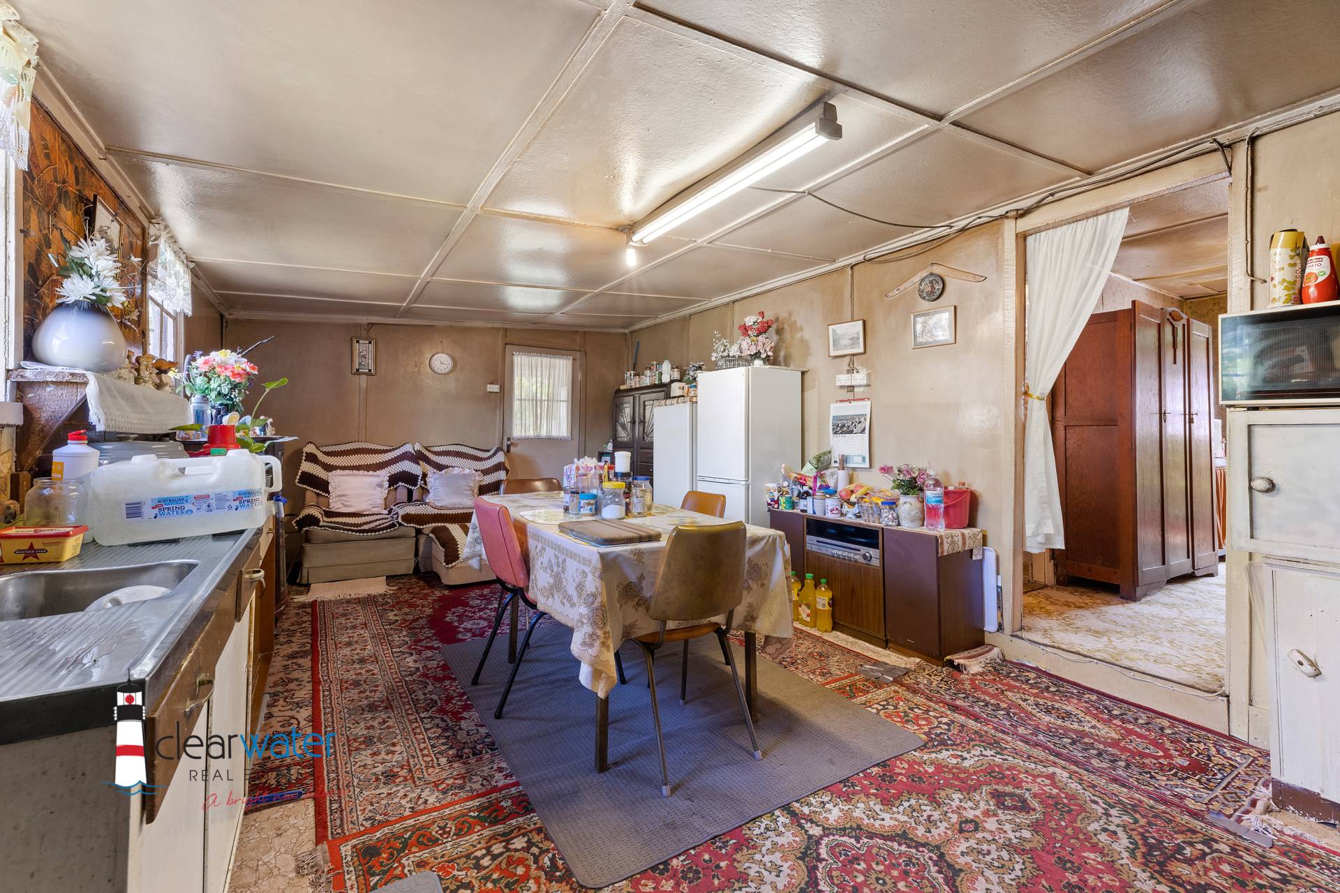 Features: Glassed in sun room at the entry, open plan lounge dining and kitchen all in one, two bedrooms, study area, large storage/craft room (aka "the pantry"), external laundry with shower and toilet. There is a new slow combustion wood heater which warms the home in winter as well as heating your hot water and allows you to cook on it also an open fire place that the current owners have closed off but easy to get it up and firing again.