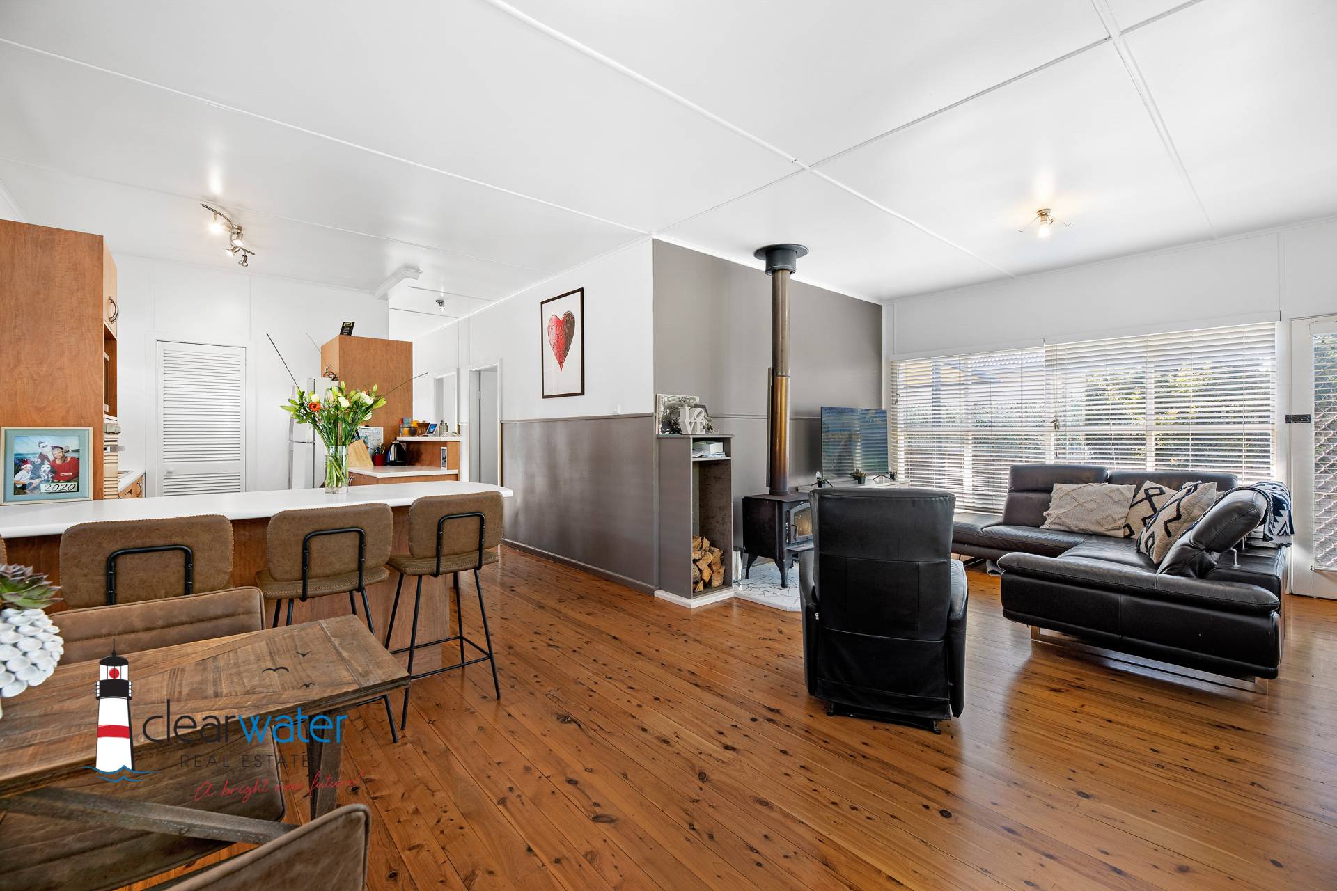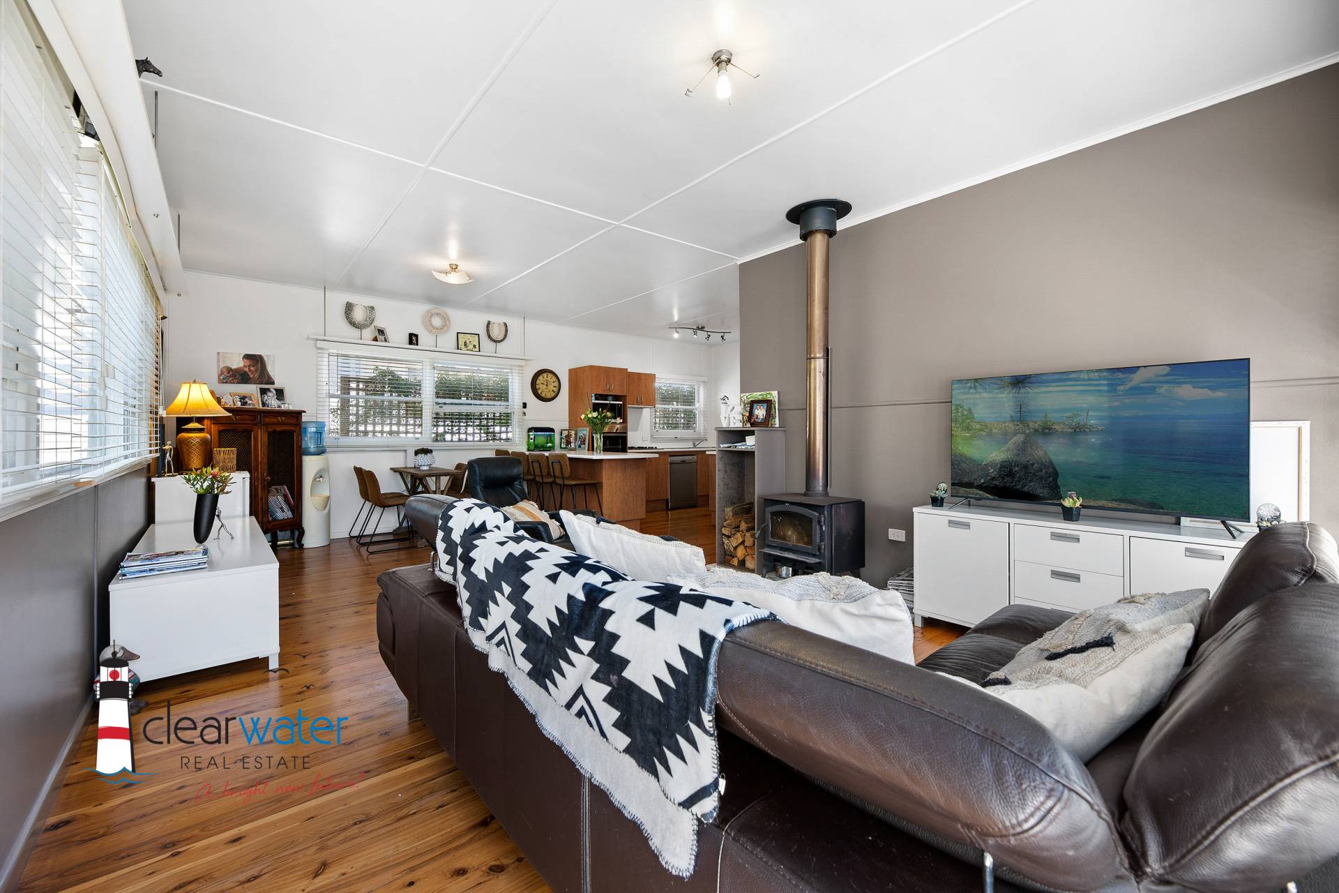 Perfectly located on ‘The Flat’, this home is on a level block and offers two carpeted bedrooms, modern tiled bathroom with a disabled accessible shower, polished timber floors, modern kitchen with ample bench space and a large walk-in-pantry. Large windows flood the open plan living room making it warm and inviting. A combustion wood heater will keep you snug and cosy on those cool winter days/nights. The large garage will safely store your bikes, surfboards, fishing gear, golf clubs and all your other leisure toys.