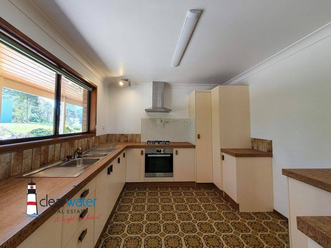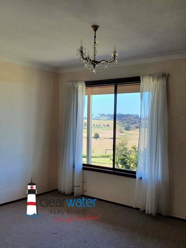 Situated in a quite area of Central Tilba is this large home on a good sized parcel of land. The home features: good sized kitchen, 3 bedrooms, two bathrooms, lounge, dining/kitchen, rumpus, large office with access outside, rear paved area and front under cover patio with views over farmland to the ocean and lake.