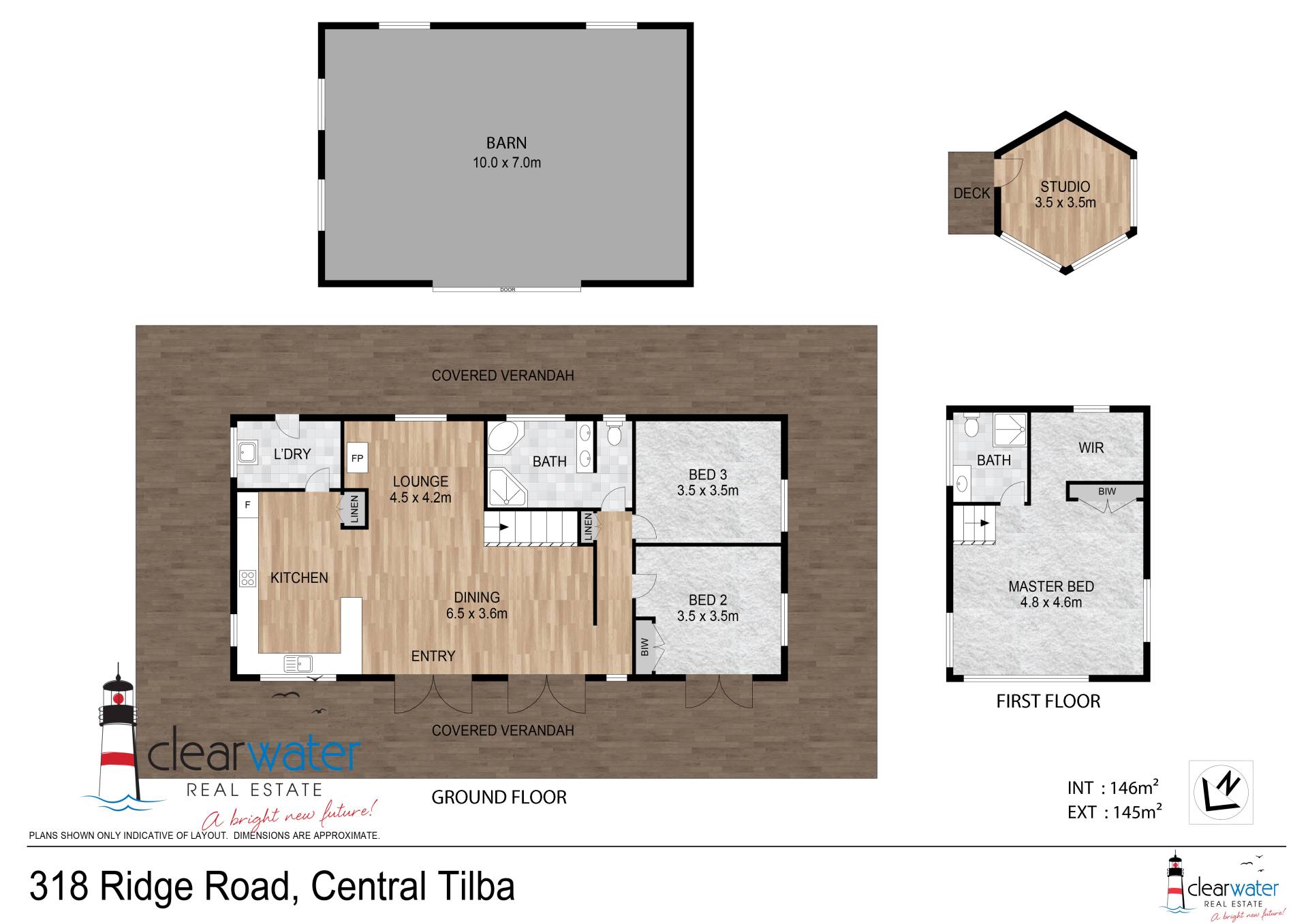 Ground Floor: High ceilings, open plan layout with timber kitchen, dining area, lounge with slow combustion wood heater and French doors opening onto the wrap around veranda. Two good sized bedrooms, modern bathroom (with bath tub), large laundry with stable door and plenty of room for storage.