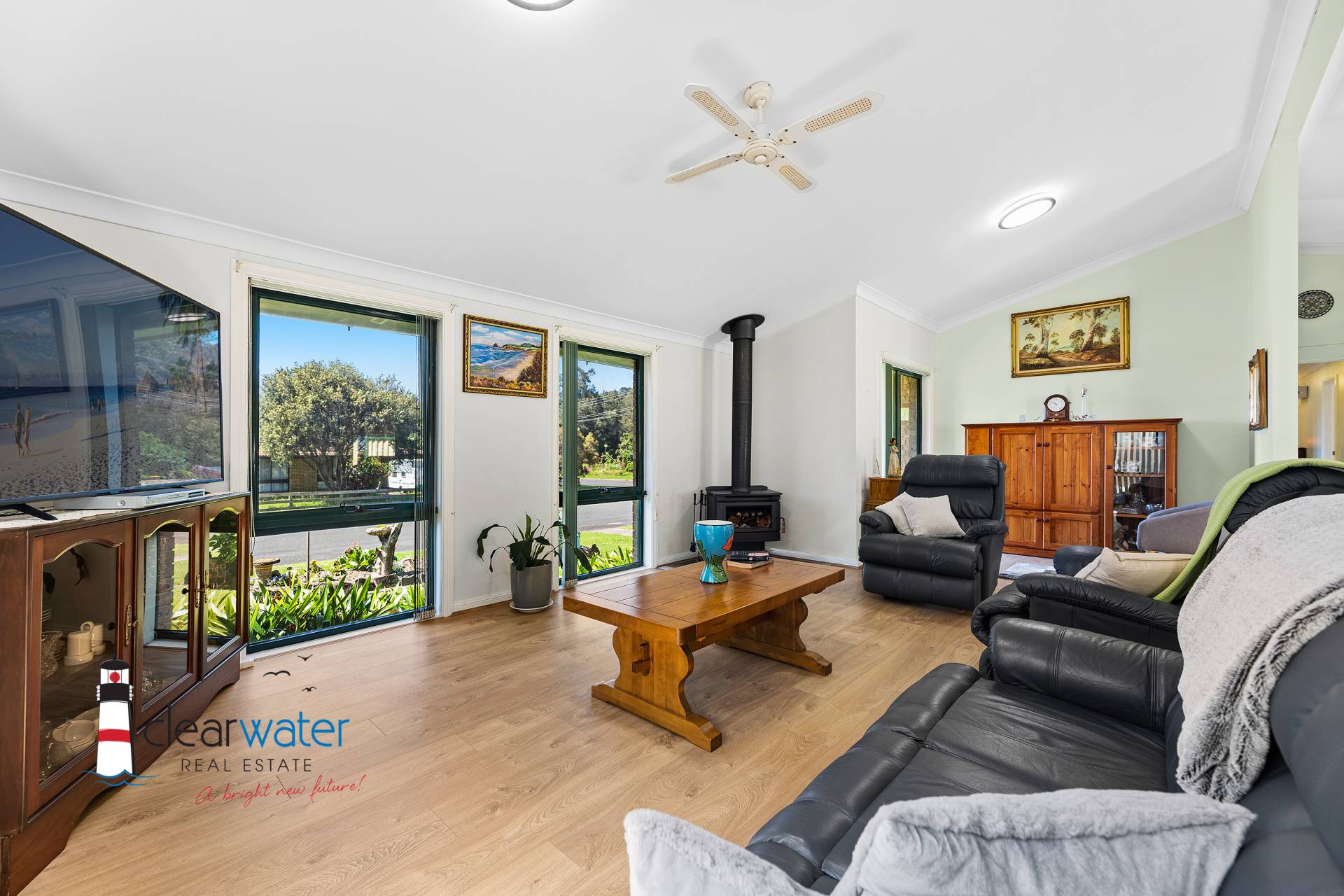 Only a few meters to the water edge on the Wagonga Inlet, walking distance to Bar Beach, boardwalk, boat ramp and over the bridge into the flat of Narooma shopping district. Approximately a 35 minute drive to Moruya Airport.