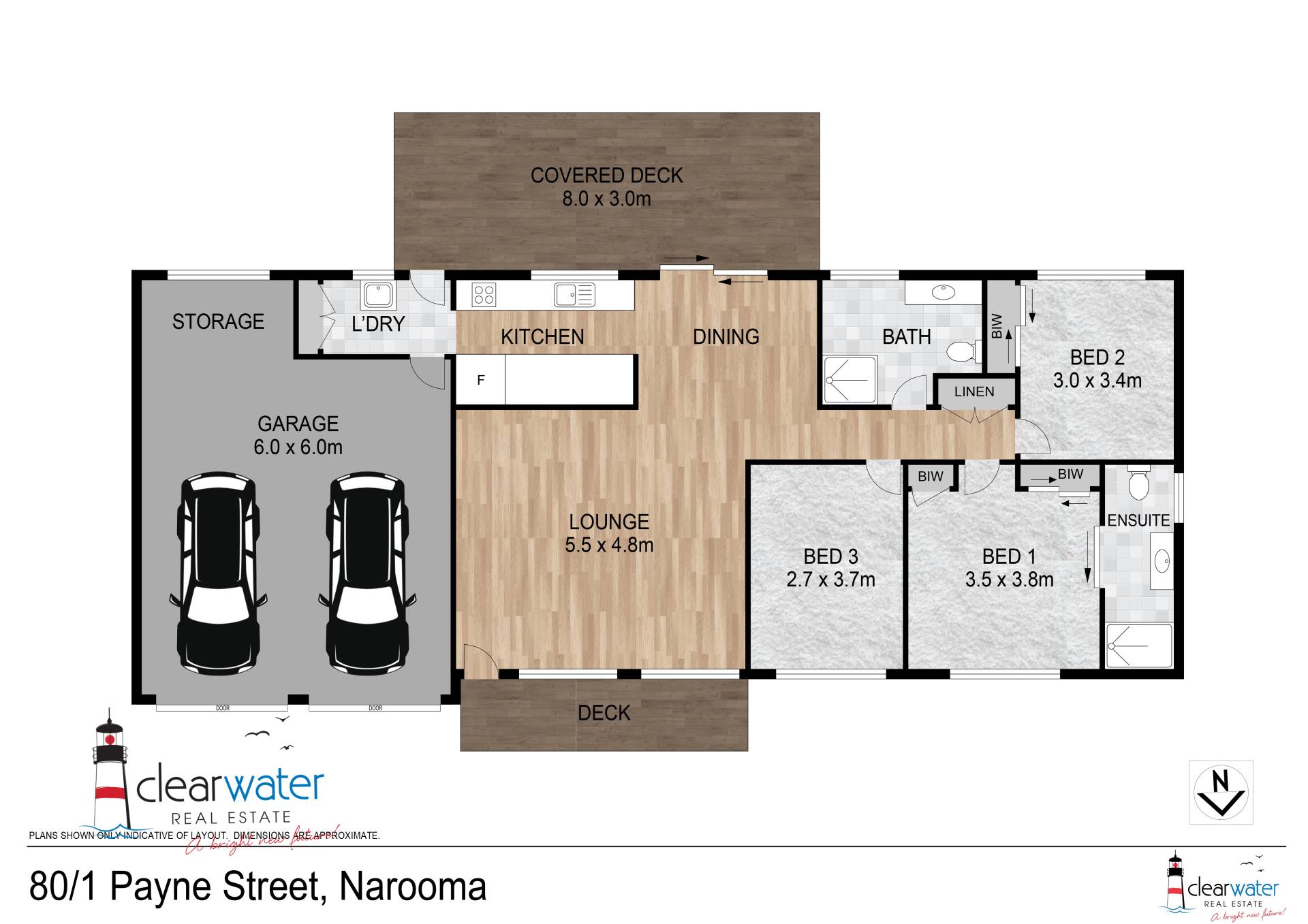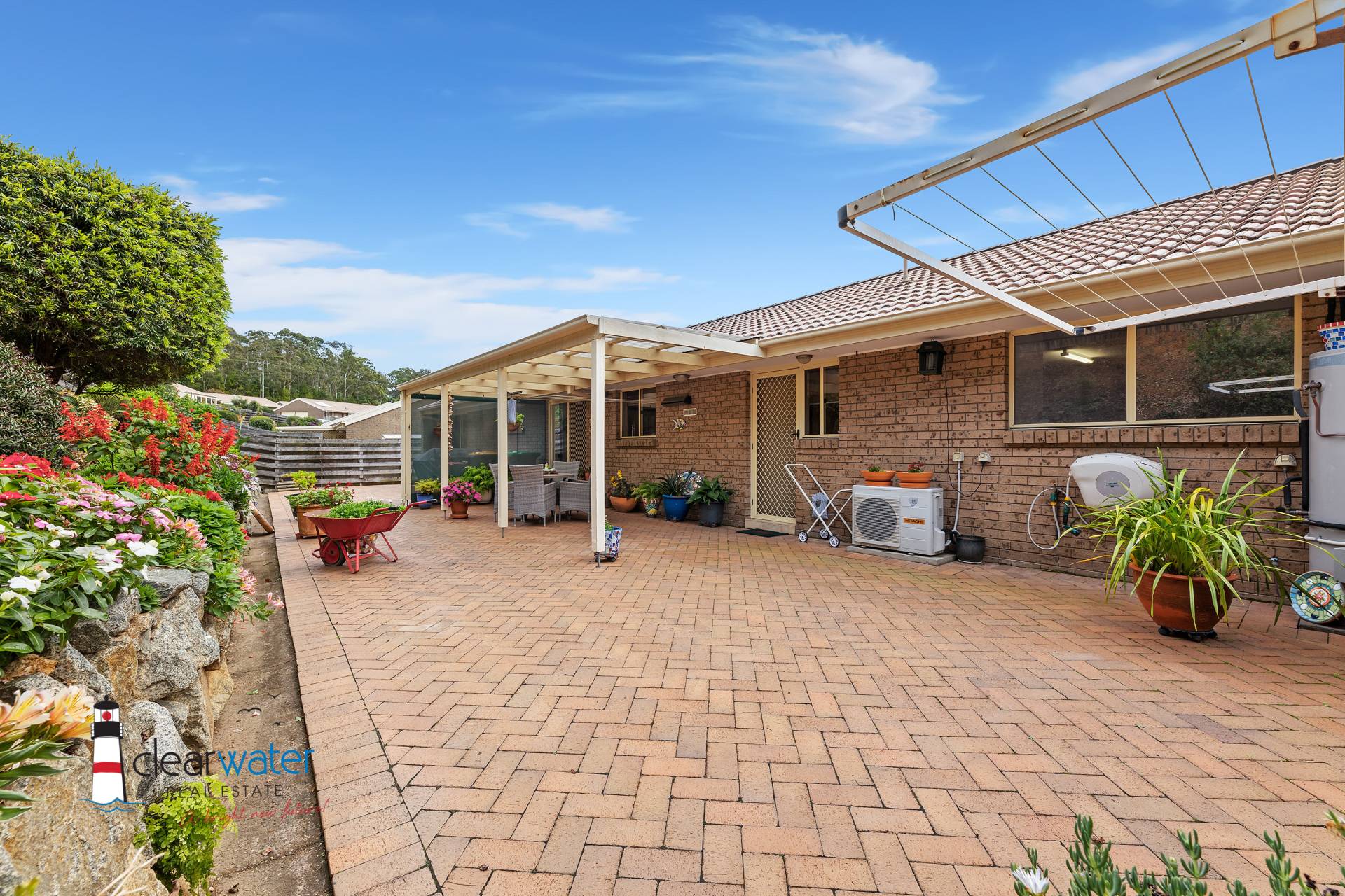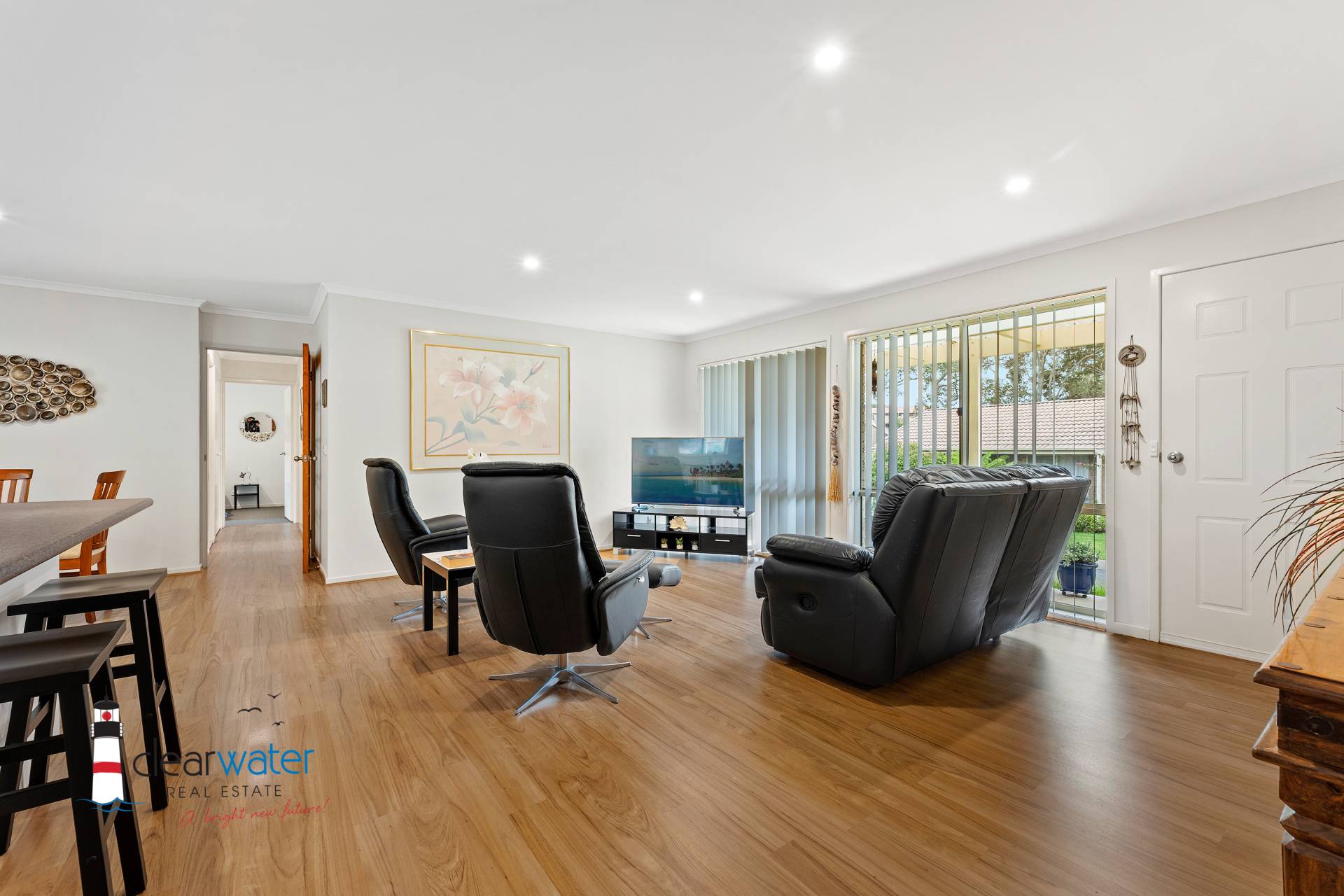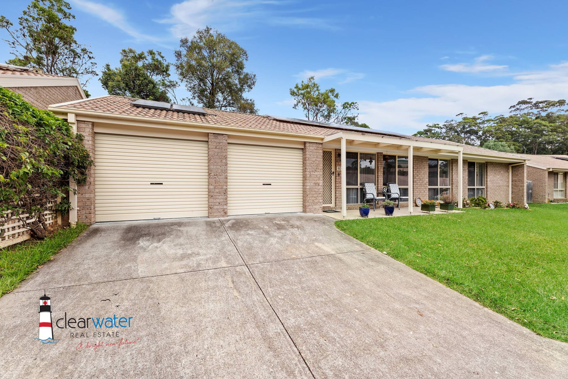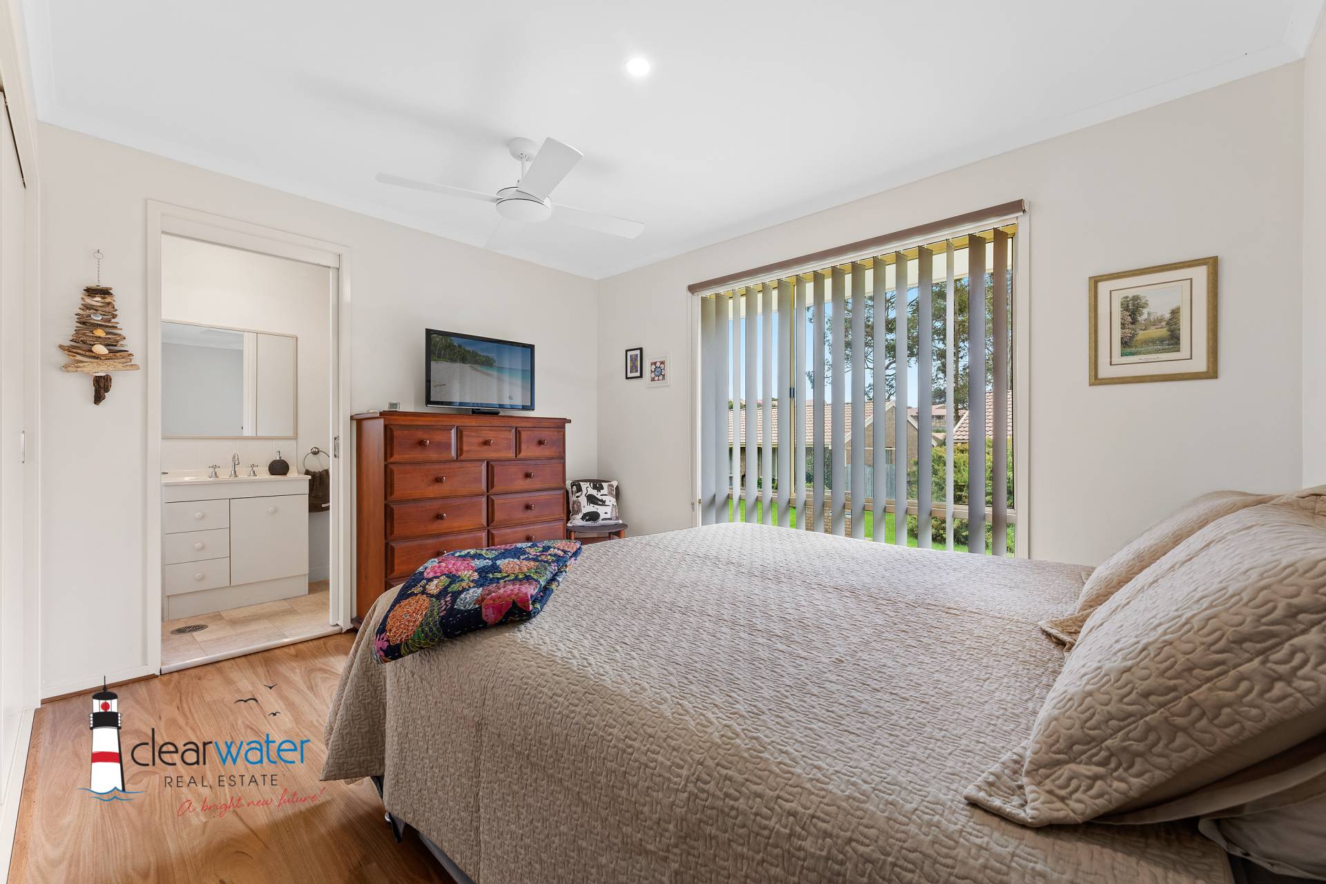 “Parklands 80“ – Situated in the Coastal town of Narooma on the South coast of NSW is this move in ready free standing villa. These quality homes are very popular for people who wish to downsize, retirees and those who enjoy low maintenance living in a safe, quiet, central location. This lovely free standing villa has so much to offer including a sunny northerly aspect, 3 bedrooms all with built-in-robes, two bathrooms, open plan living with lovely floating timber floors and a reverse cycle air conditioner. The kitchen has ample bench space with a large breakfast bar, electric oven, hot plates and dishwasher.  The double garage has internal access and double auto roller doors. At the other side of the property there is a dedicated parking area for your boat or caravan behind the fence. The paved back yard has a terraced garden, and a covered outdoor entertaining area with no grass, and the small grassed area out the front is mowed by strata. Low Maintenance – there is nothing to do but relax and enjoy the easy laid back lifestyle that is on offer in our stunning region.
