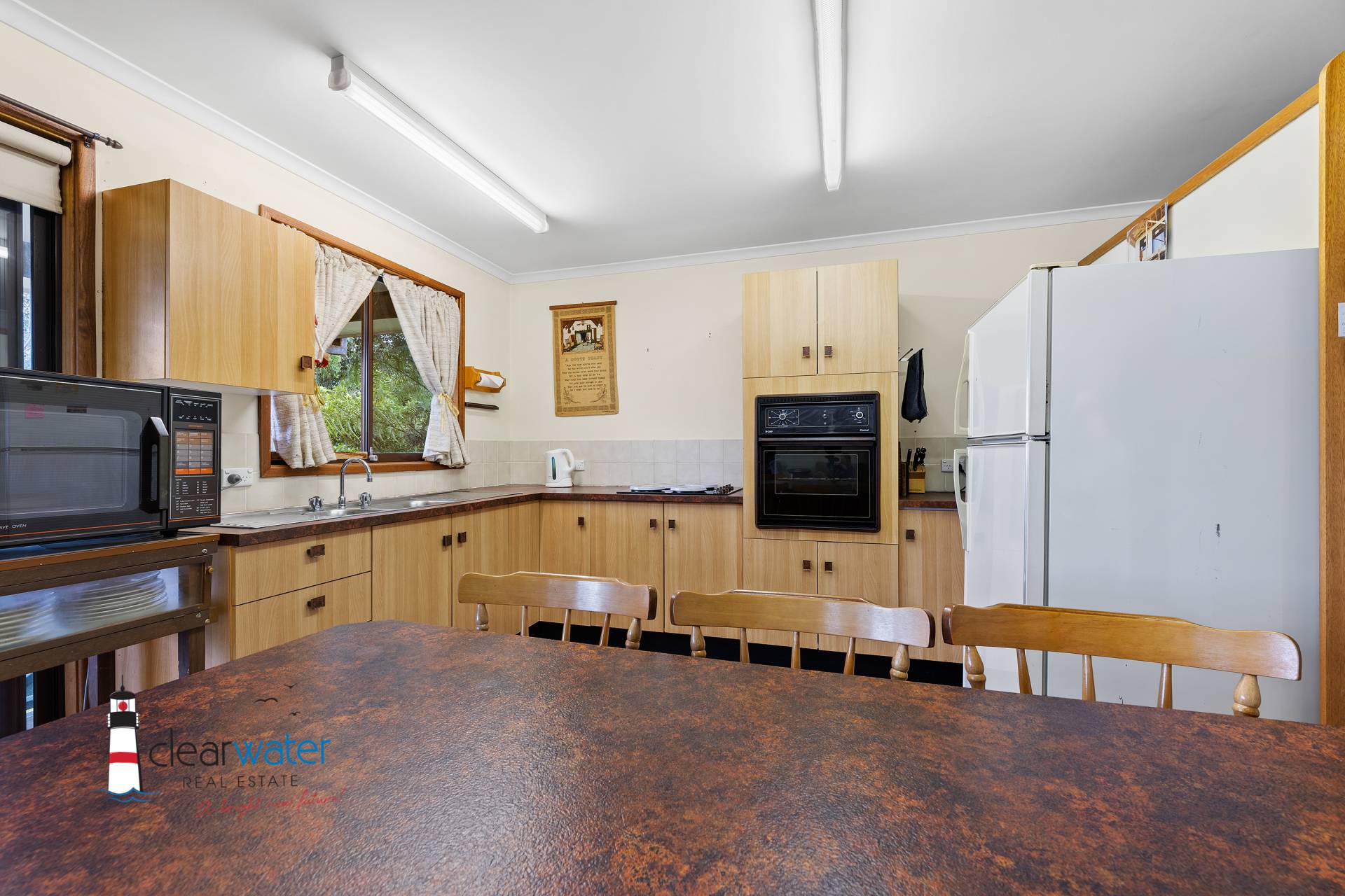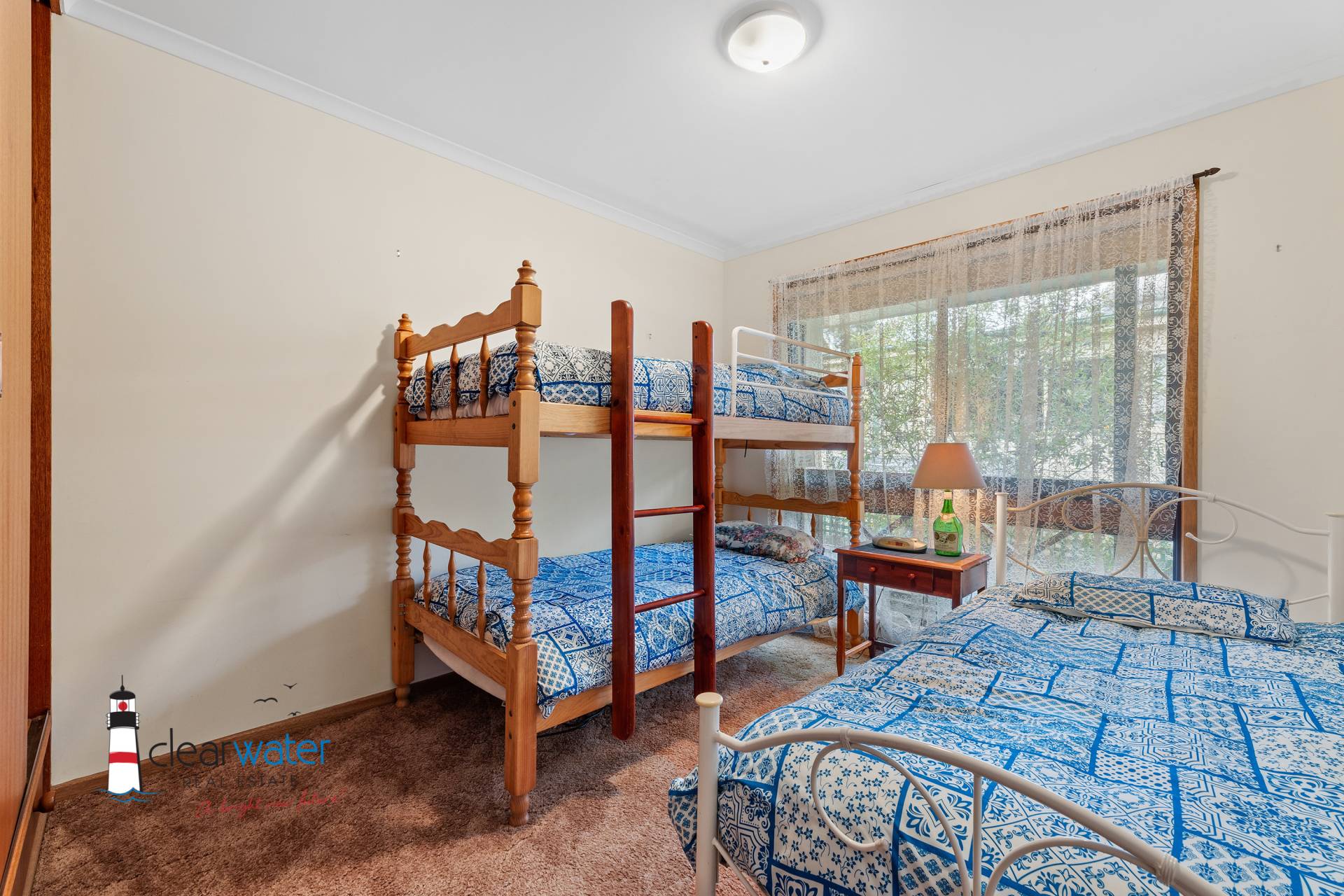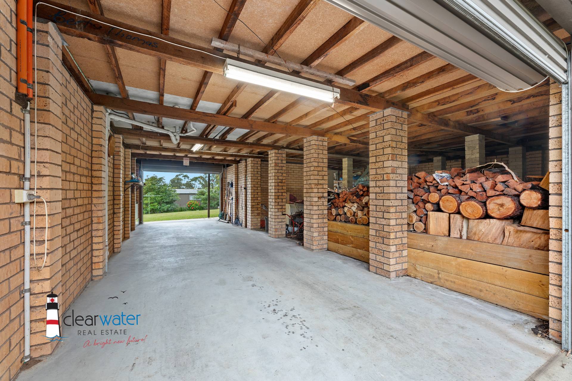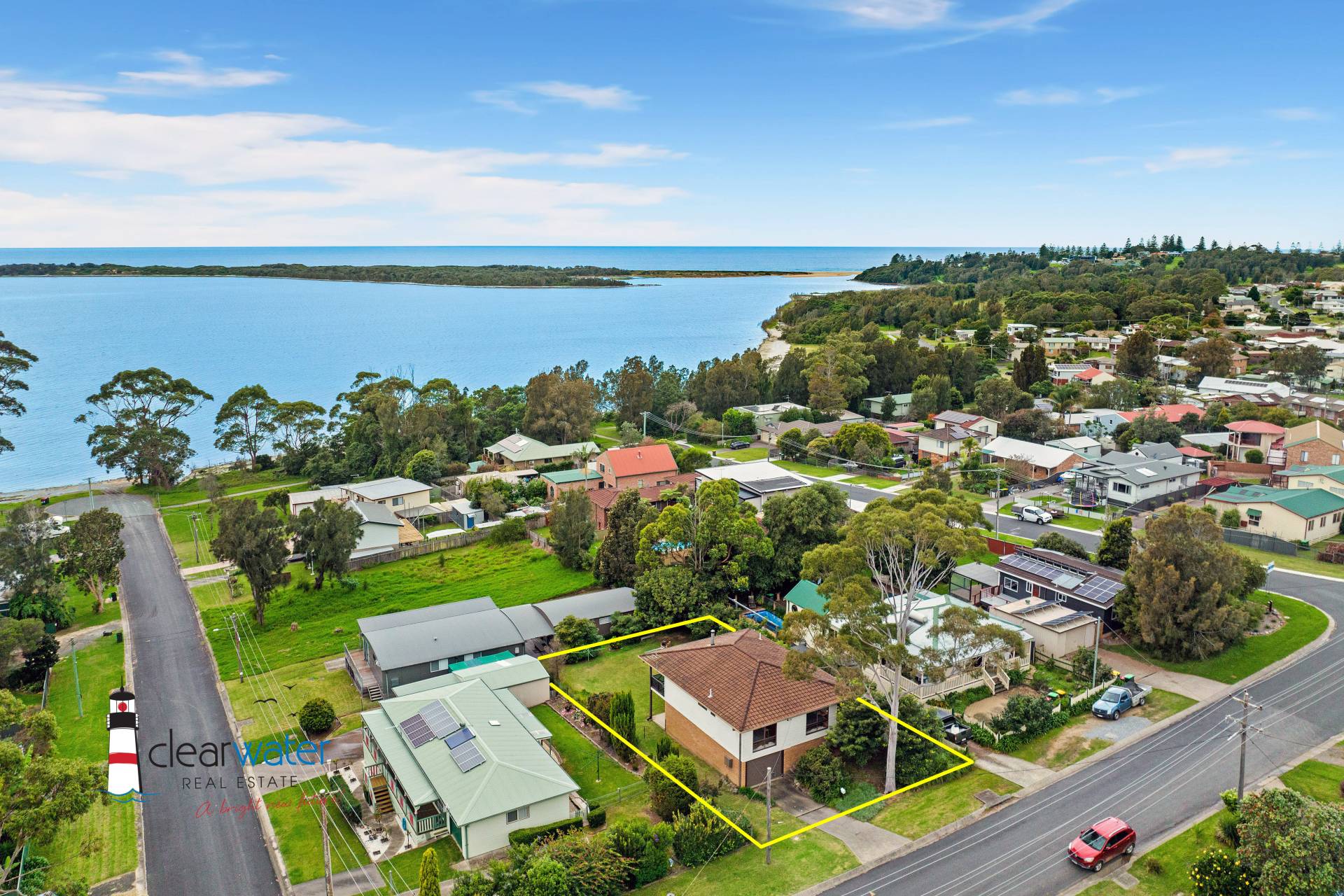 Upstairs: Three bedrooms, central bathroom, separate toilet, slow combustion wood heater in the combined lounge dining area which allows for a secondary entry from the rear deck that overlooks Coila Lake.