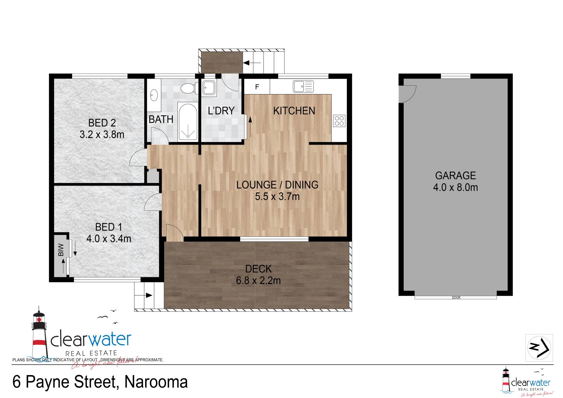 Features: Recently renovated kitchen and bathroom, two good sized bedrooms, open plan living/dining and lounge area. The bathroom has a small bathtub, there is also a separate laundry, timber floors and a detached garage.