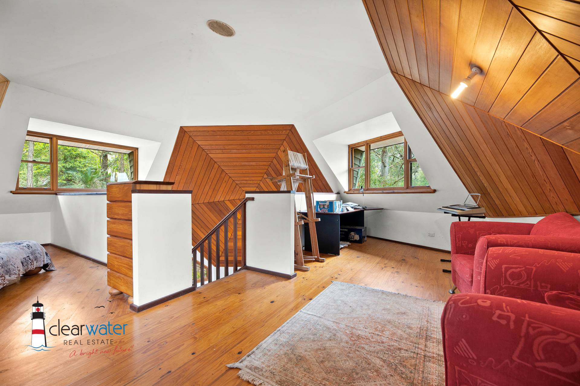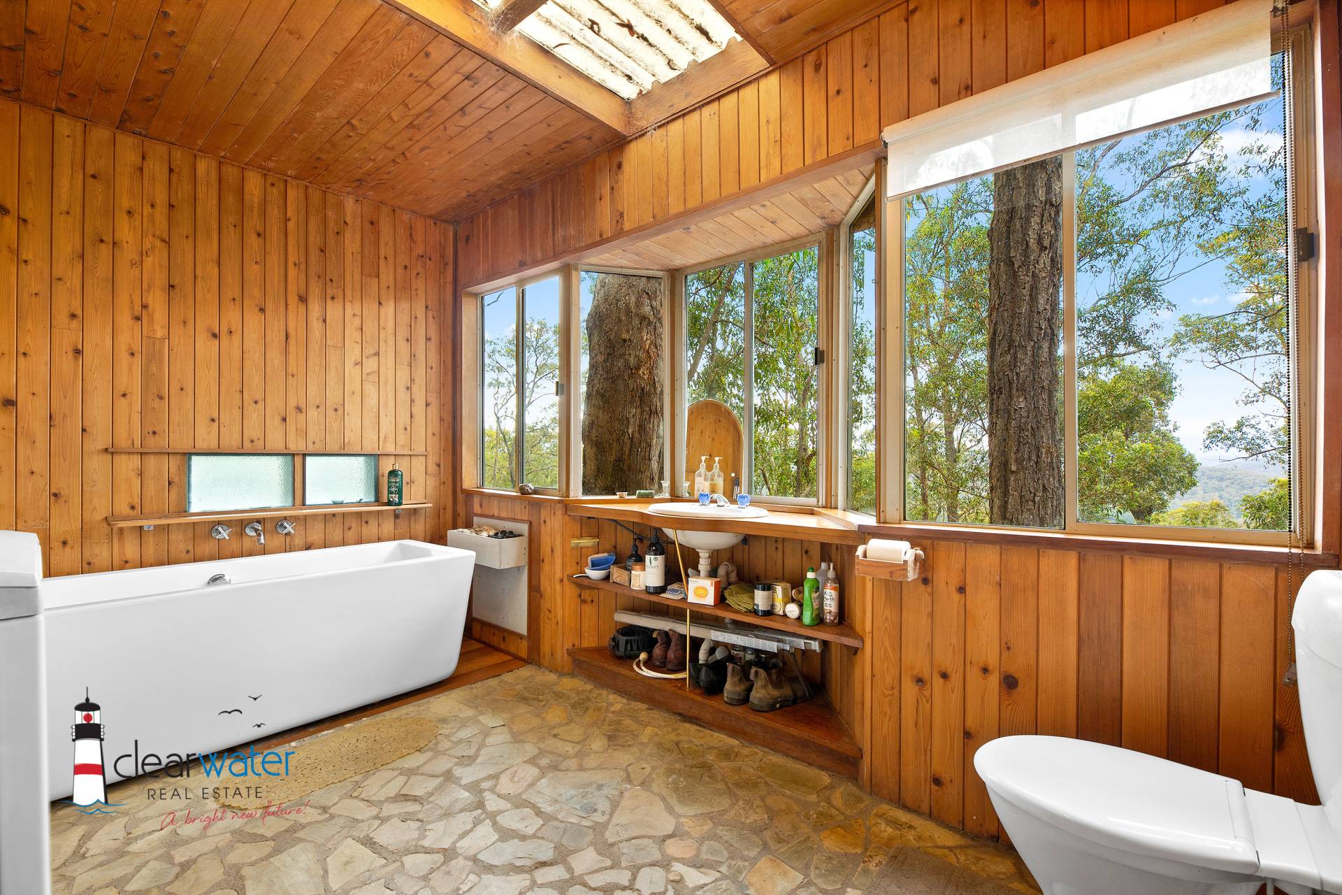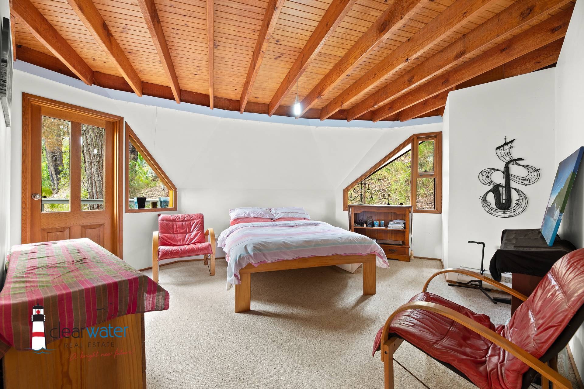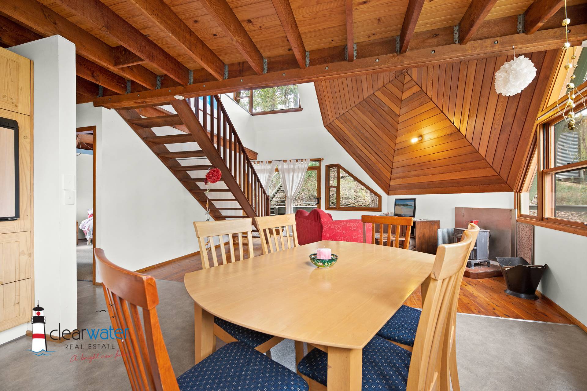 Main House – The Dome House aka The Tree House – two good sized bedrooms, combined bathroom & Laundry, kitchen and open plan lounge/dining area and wrap around deck. Cooking and fridge are both gas.