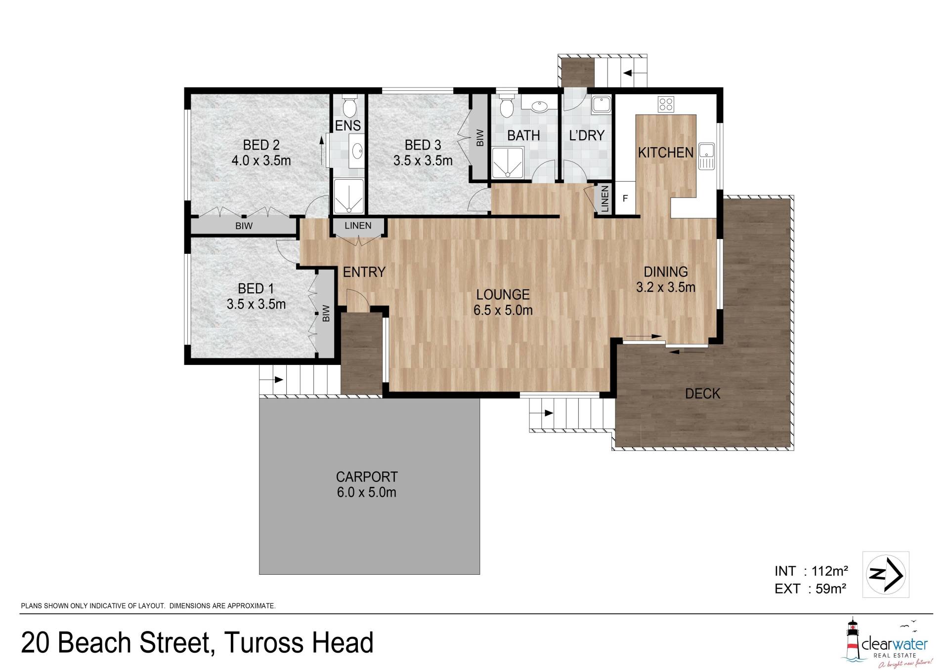 Features: Open plan living dining and kitchen with easy access to the large deck. Three good sized bedrooms all with built in robes, central bathroom, ensuite, separate laundry and high carport which allows access to the back yard.