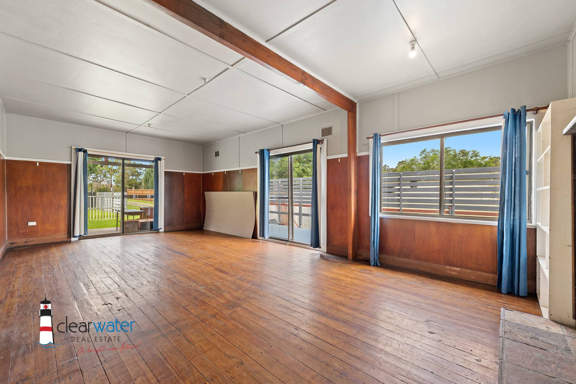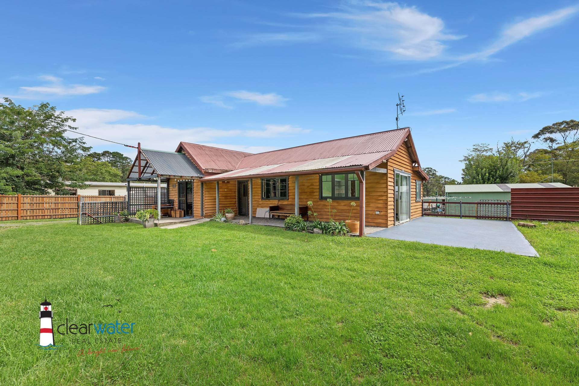 FOR RENT - Two Bedrooms, two bathrooms, open plan living area with a wood burning fireplace and a gas point for a heater. Covered veranda and a back deck with views of Bodalla's green pastures with a sunny North facing aspect. Fully fenced yard, outdoor laundry, and concreted pad for car parking.