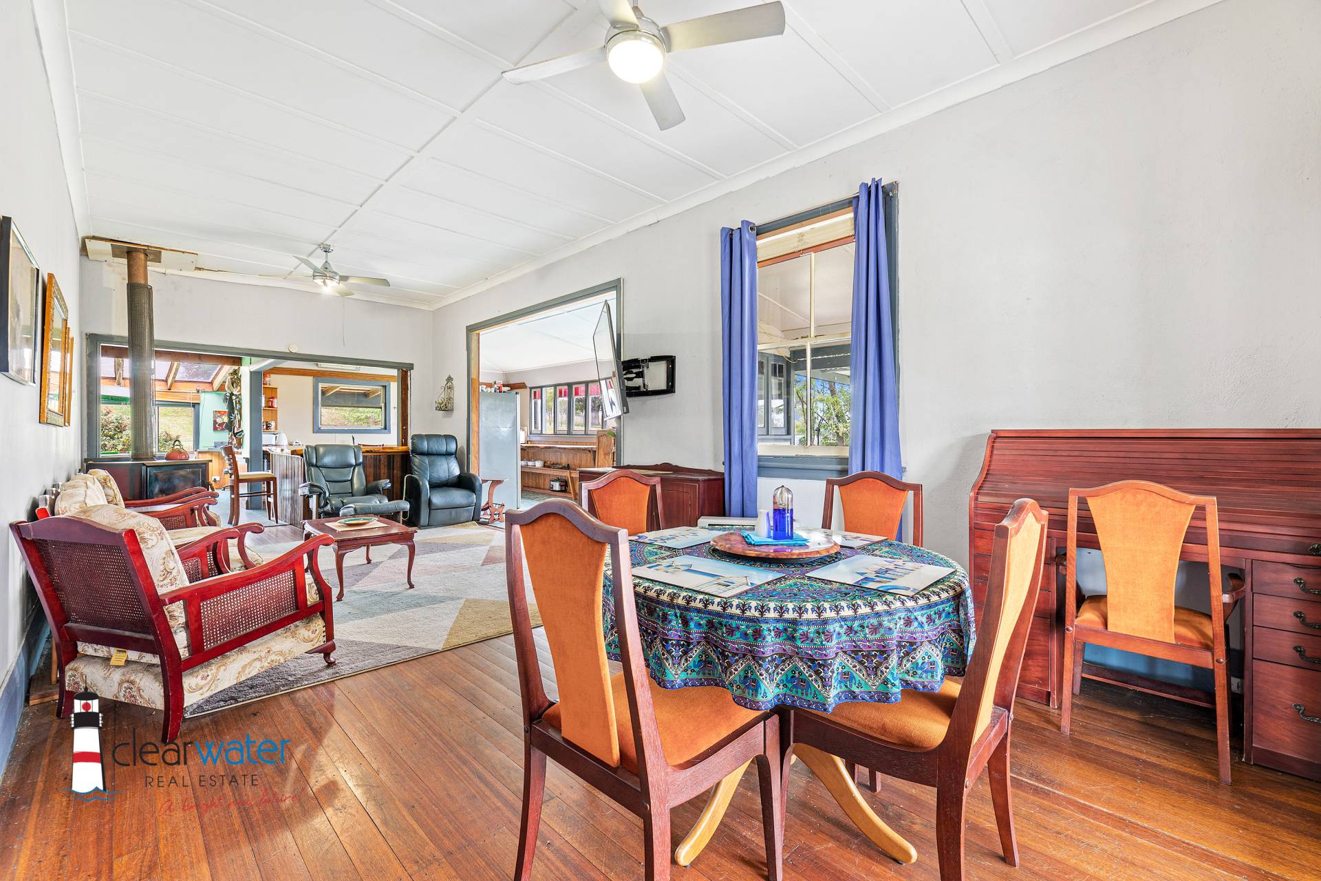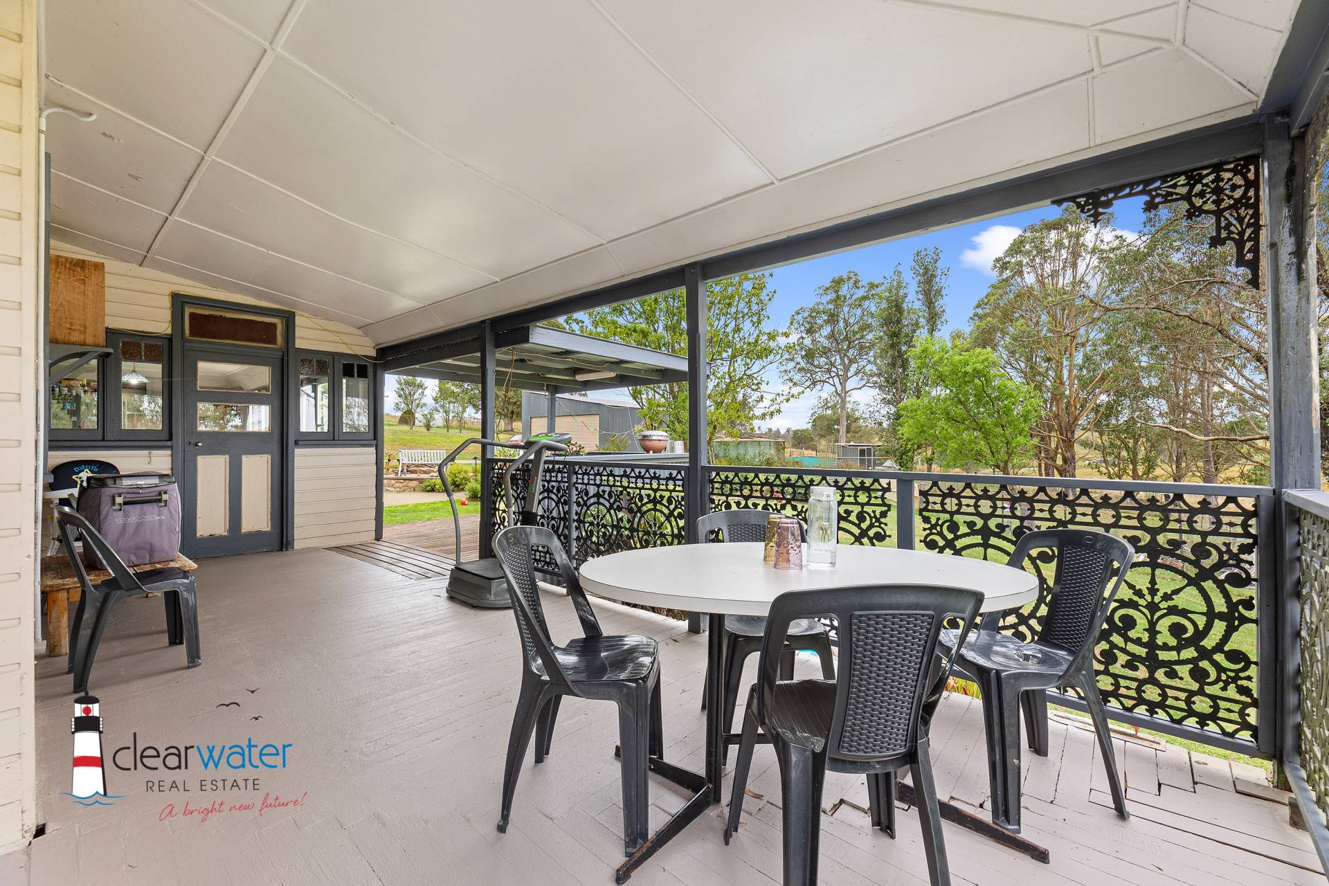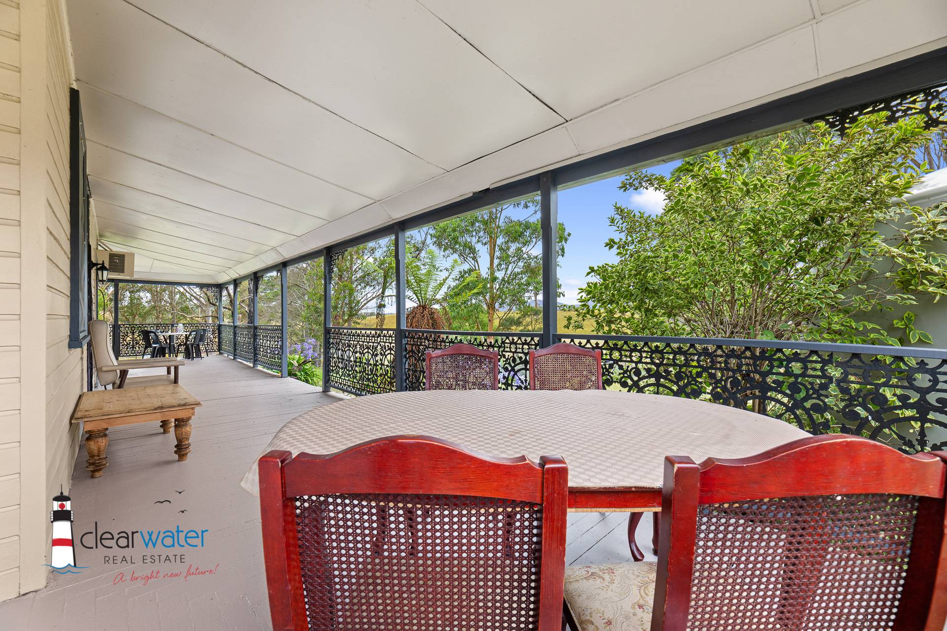 The large historic home was originally called Casuarina when it was in Bega. It was moved to its current location approximately 28 years ago. Lots of coloured glass, hardwood floors, high ceilings and space for alfresco entertaining are just some of the features of this home. The veranda is on three sides of the home and has some amazing wrought iron panels. A great spot to sit back and enjoy your favourite beverage with views over your property.