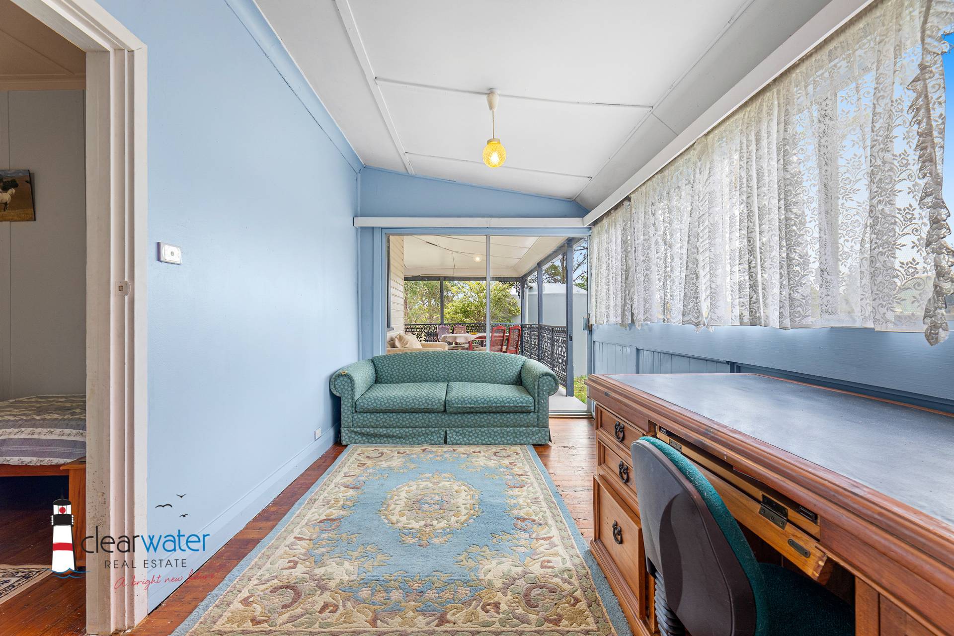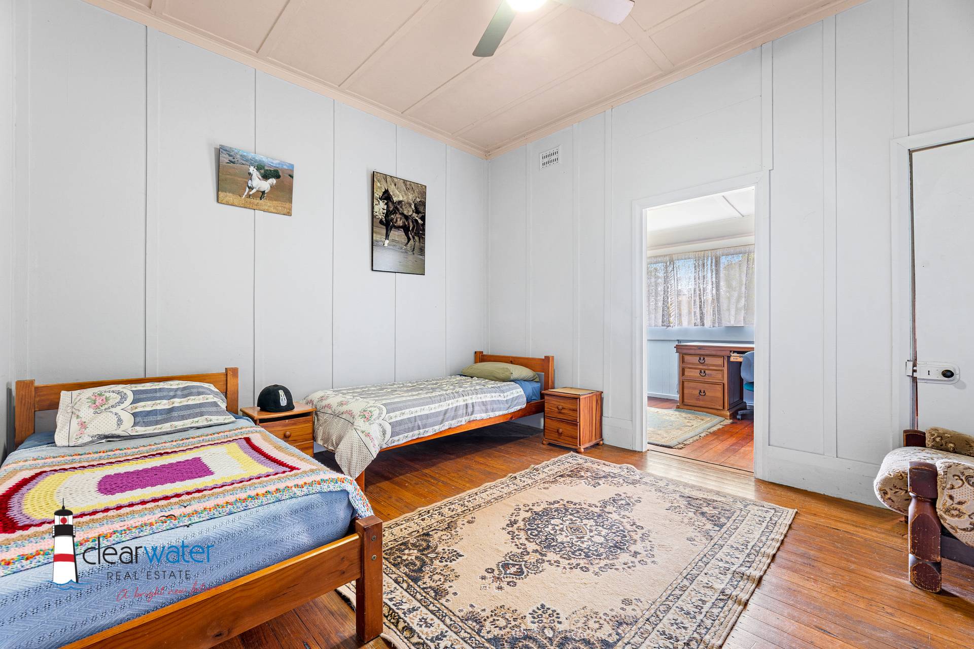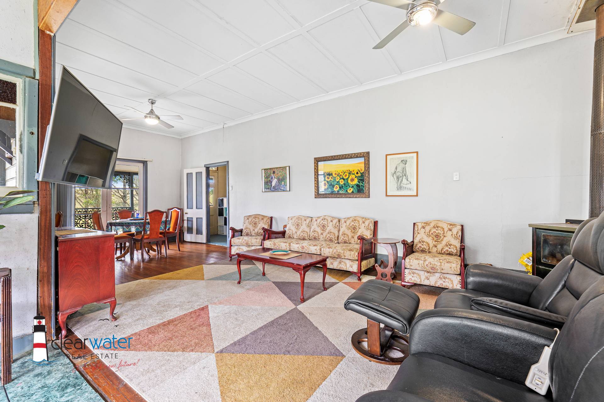 The large historic home was originally called Casuarina when it was in Bega. It was moved to its current location approximately 28 years ago. Lots of coloured glass, hardwood floors, high ceilings and space for alfresco entertaining are just some of the features of this home. The veranda is on three sides of the home and has some amazing wrought iron panels. A great spot to sit back and enjoy your favourite beverage with views over your property.