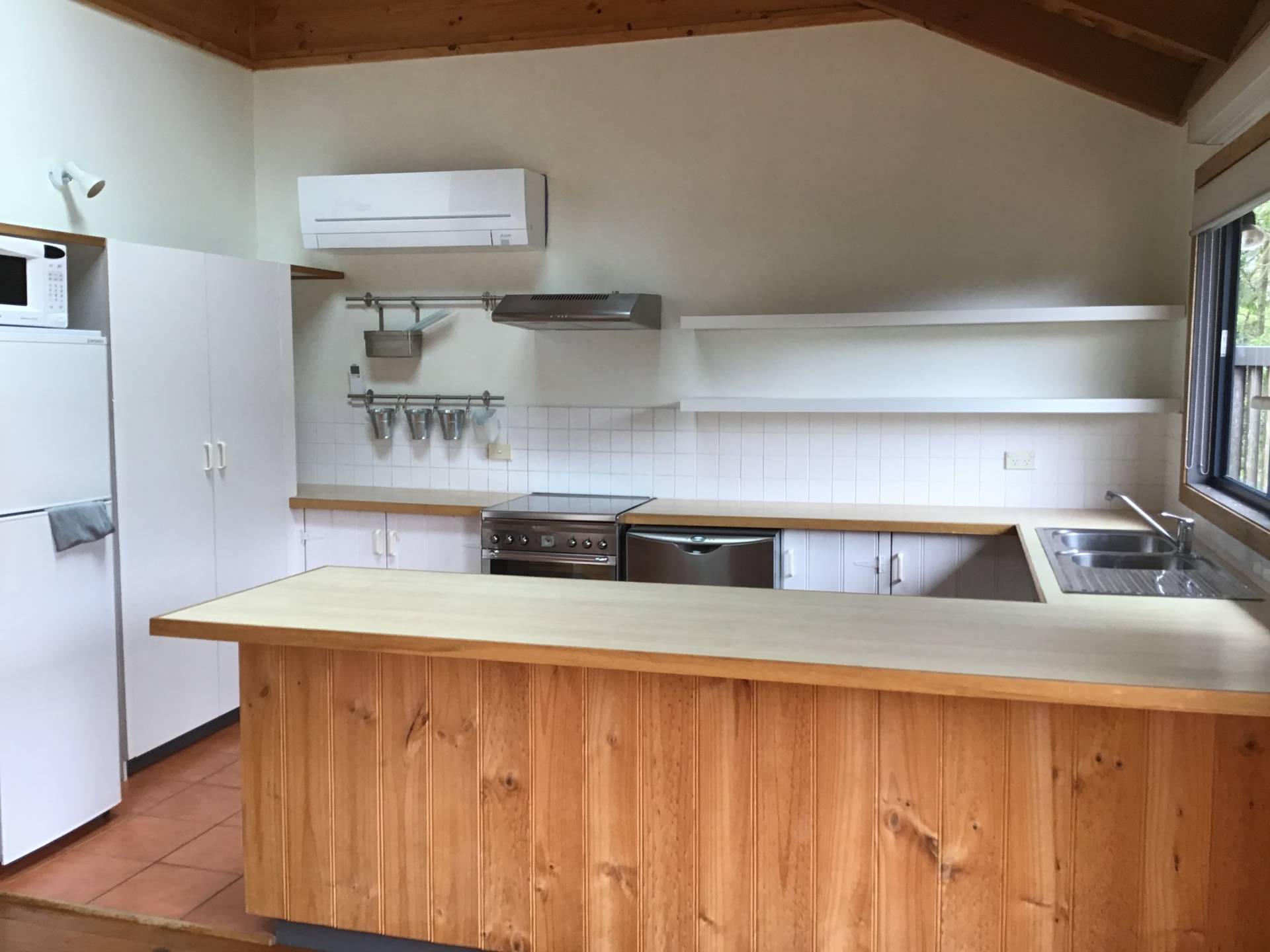 This 3 bedroom home is a hidden gem. Tucked away from street view by a green wall of foliage, this warm cedar cottage lends itself to an instant feeling of “home”.  The surprise vista when you wander through the wooden floored abode is its secret “wow” factor.  Wake up to the sound of birds, the tranquil scene of greenery from all bedrooms and the cosy atmosphere of this split level home.  Raked ceilings with light filled skylights accentuate the bright, open living space, which opens fully onto large decks that sit you in the trees. With a modern, sizeable bathroom, garage and easy access to beach, river and town, this is a renters dream.  All rooms have built in wardrobes, providing good storage options. The rooms are beautifully detailed and have fresh carpets and ceiling fans to keep you cool in summer.  There is reverse air-conditioning, but also the ambience of a wood fire for the chill of winter. Close to Moruya river, Preddy’s wharf and only a short drive into Moruya CBD.