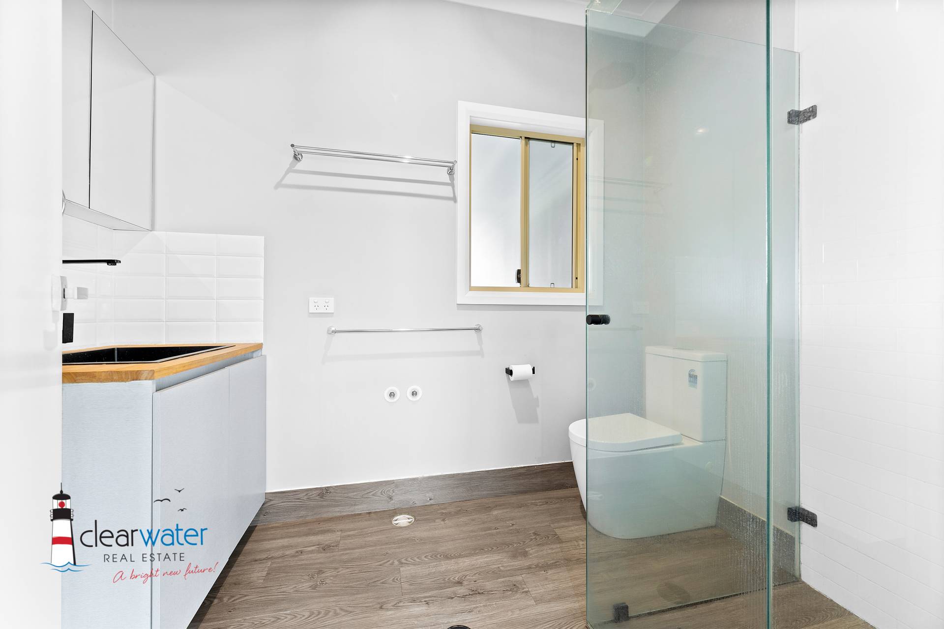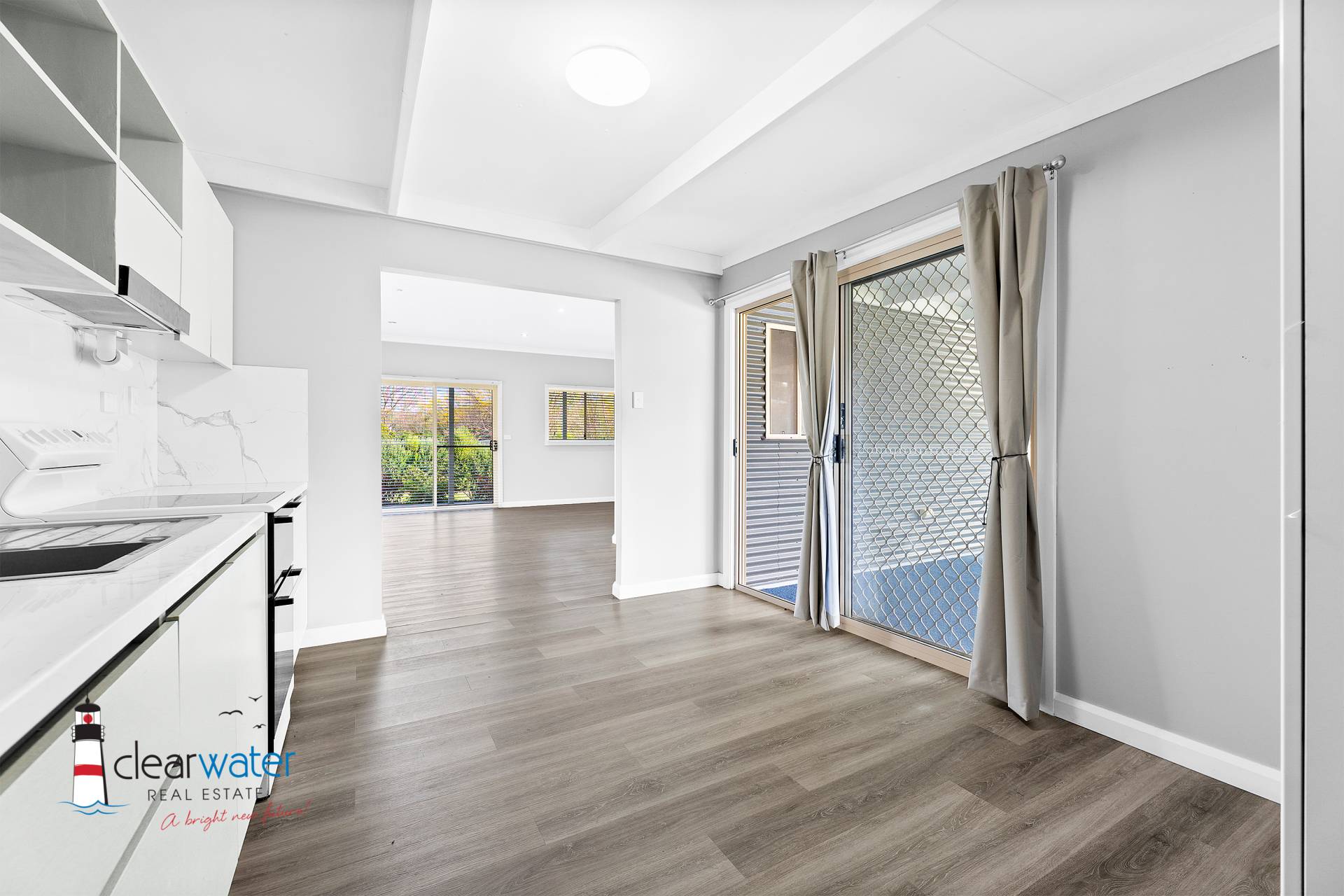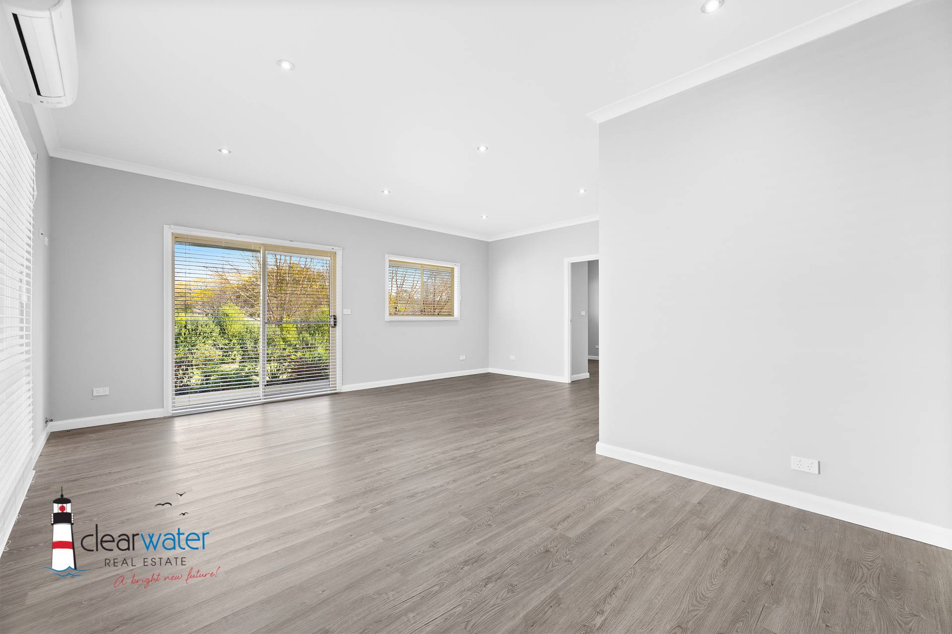 This lovely white and grey toned kitchen with multiple good-sized pantries opens onto the large covered patio making it the perfect place for entertaining all year round.  Open plan dining and lounge with a lovely aspect that opens onto both the large front and side verandah.  The 2 bedrooms are a generous size, both with built in robes. The bathroom is centrally located and there is a separate laundry with exterior access. Waterproof vinyl look-alike timber flooring throughout the house (including the wet areas).  The entire house is fresh and light with nothing so just relax and enjoy. There is a reverse cycle air conditioner to keep you cool and warm all year-round and you don’t need to worry about a big electricity bill as there is a 10kw solar system and the house is fully insulated ceiling and walls.